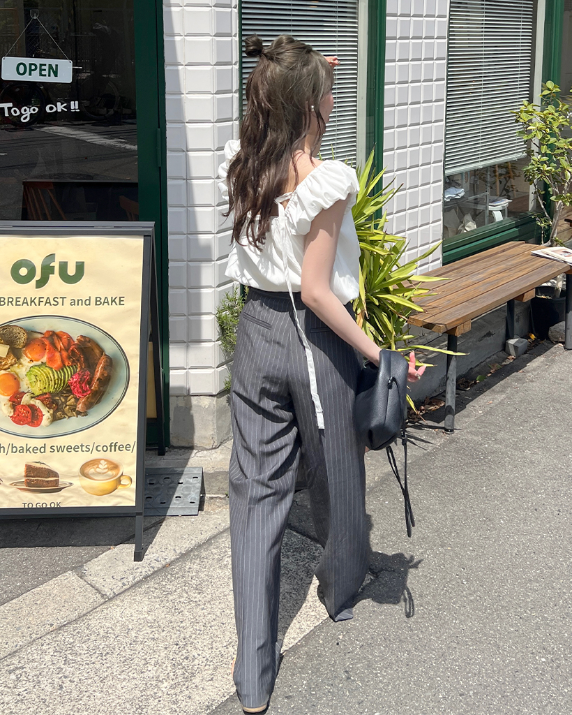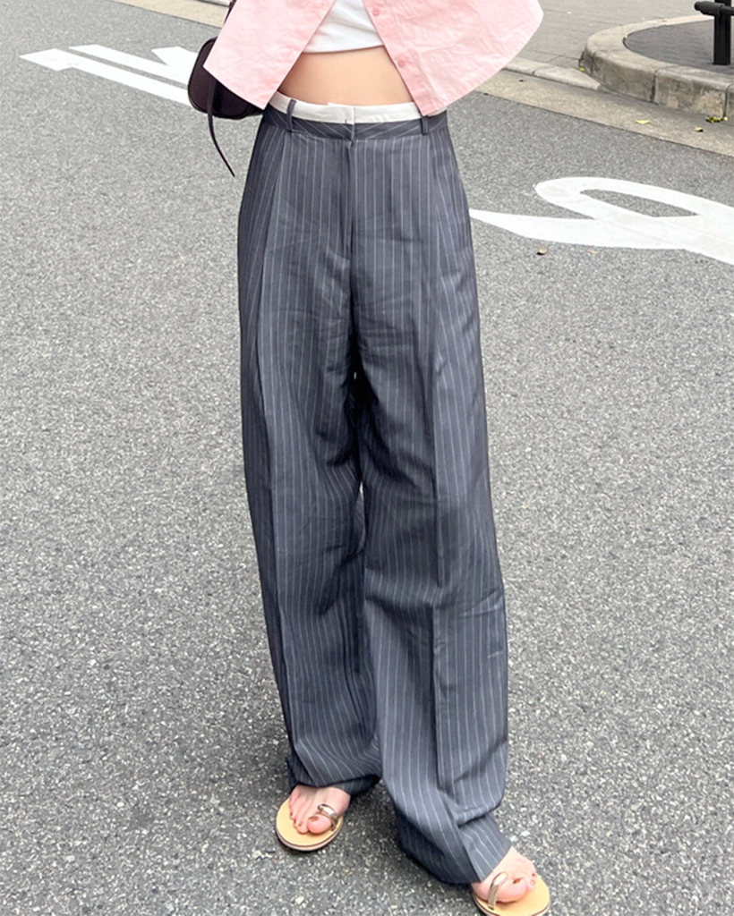 ストレートフィットストライプウエストポイントスラックス