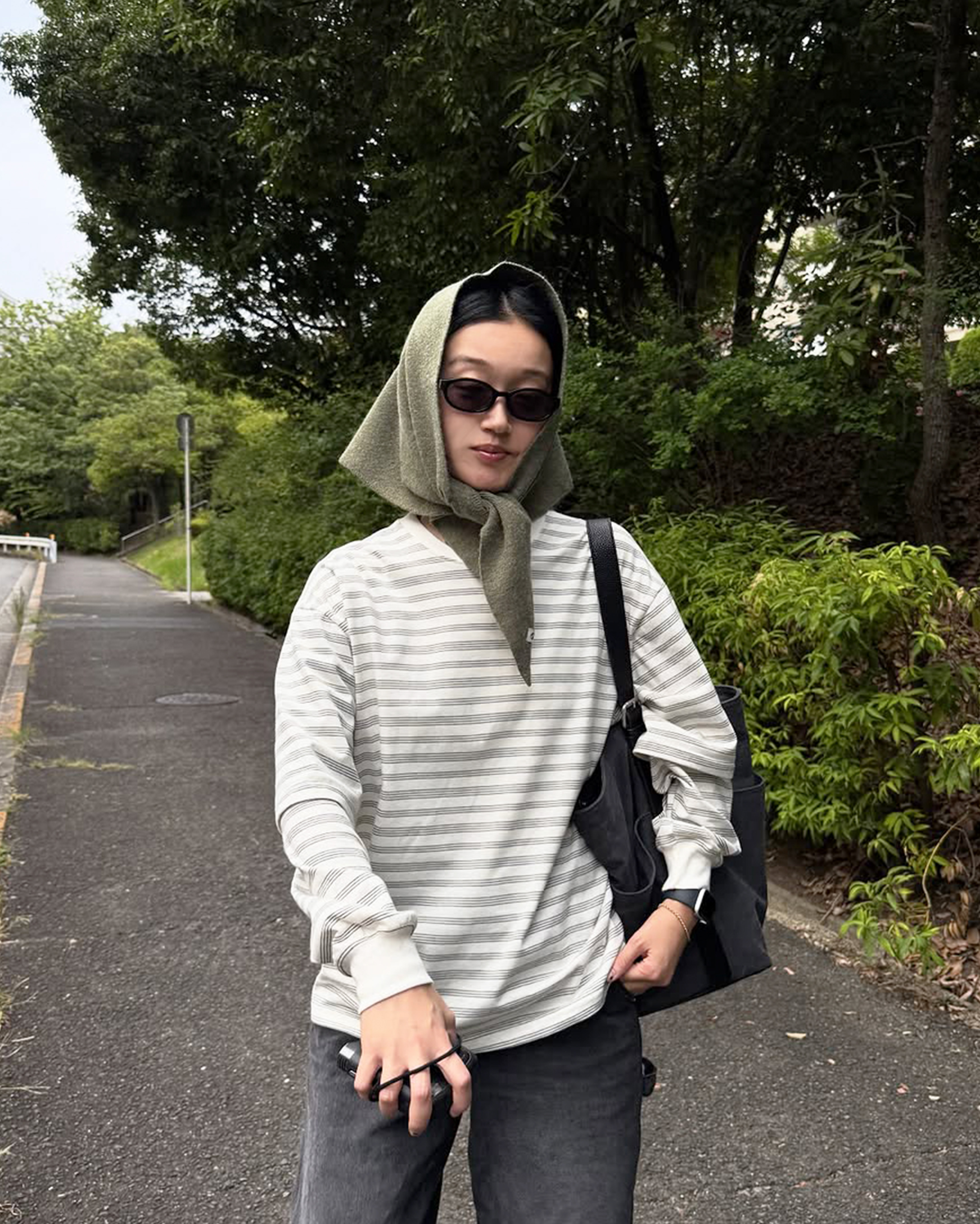 (ORIGINAL) トライアングルスカーフ ( melange khaki )