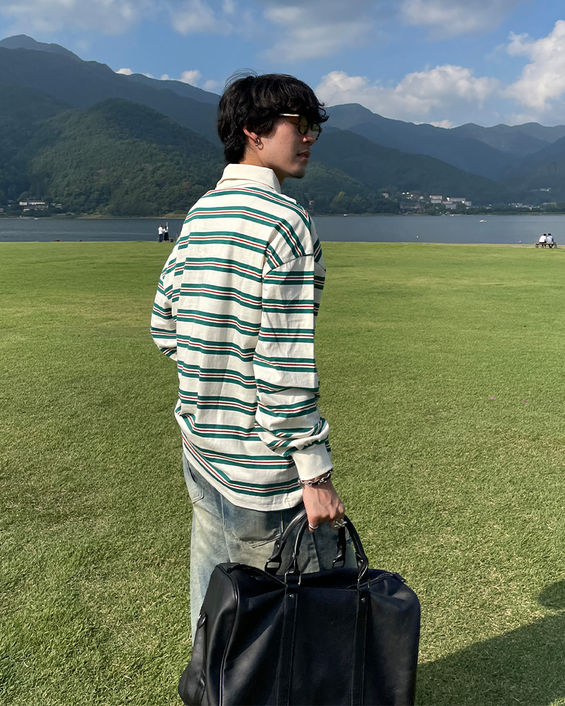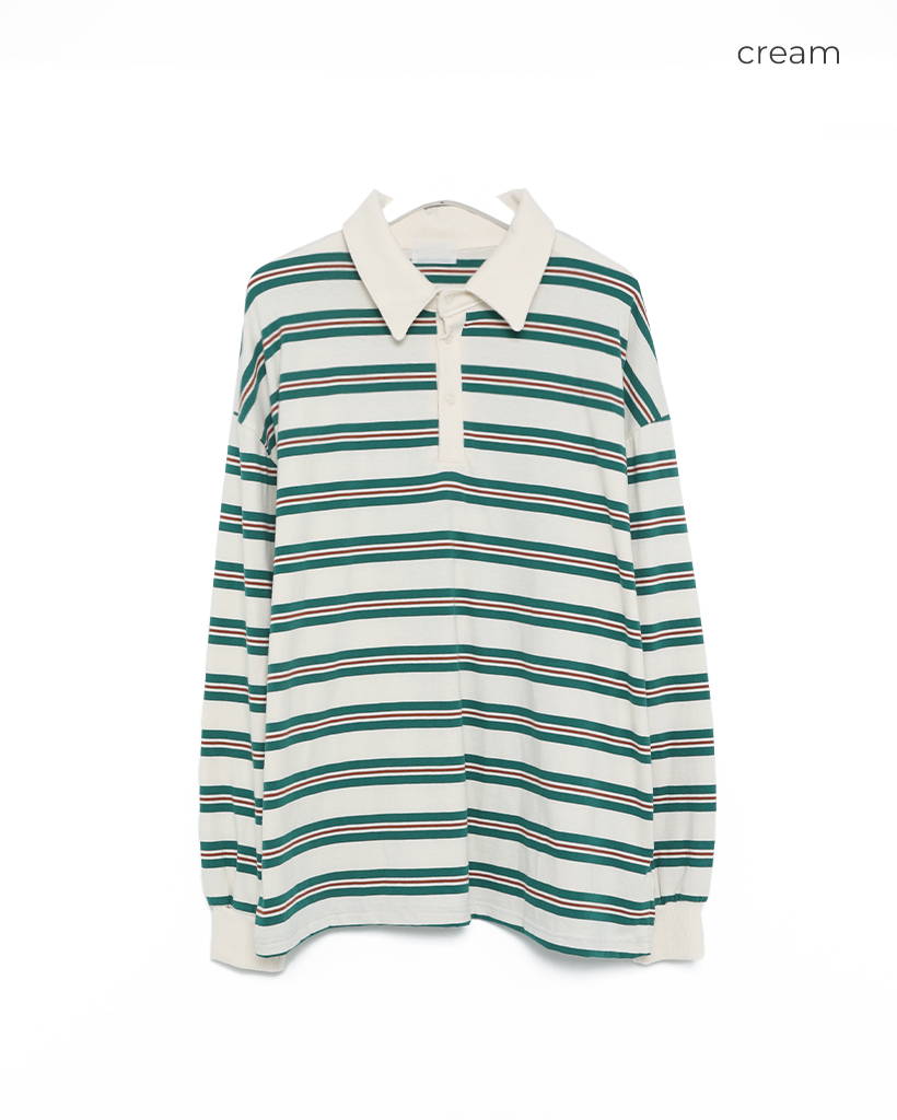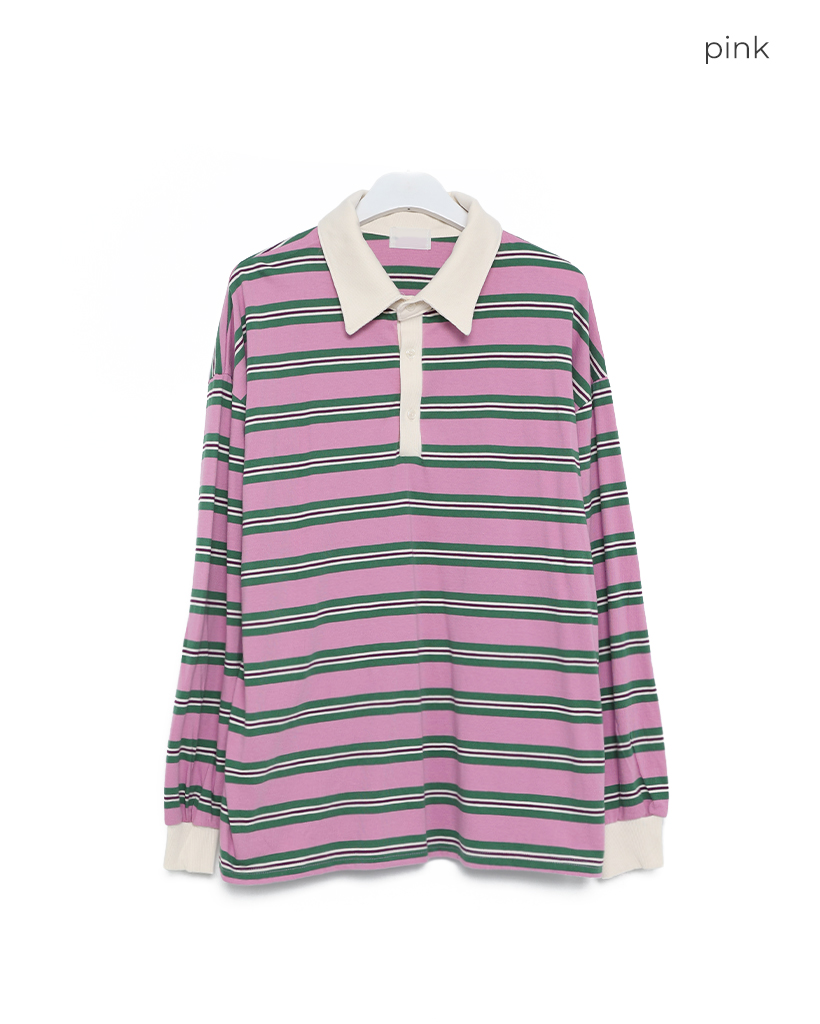 (ユニセックス)ボーダーカラー長袖Tシャーツ