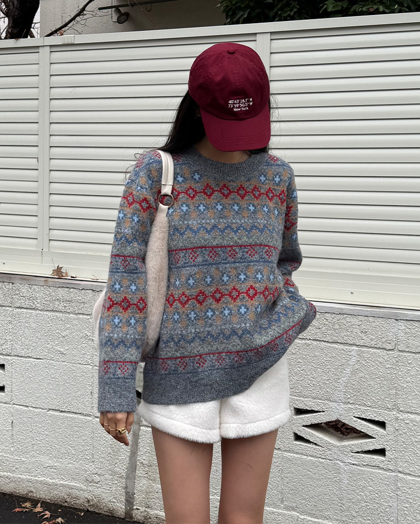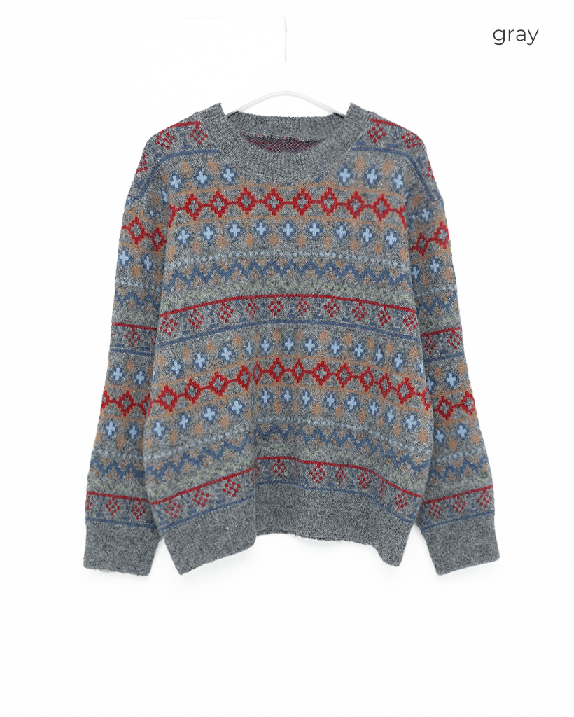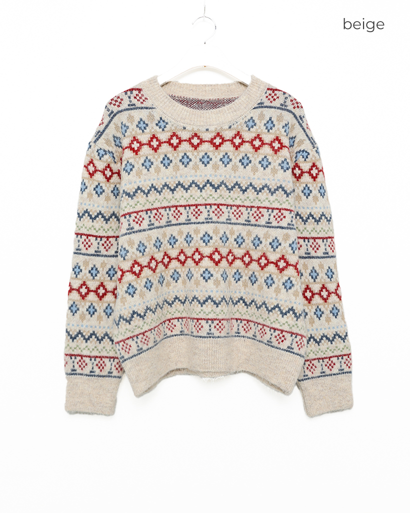 エスニックパターン長袖ニット