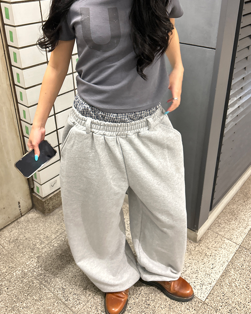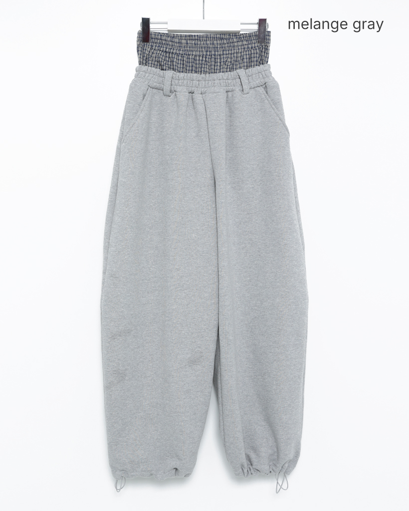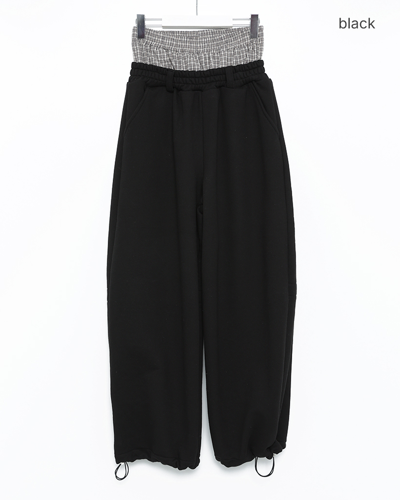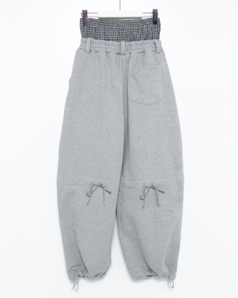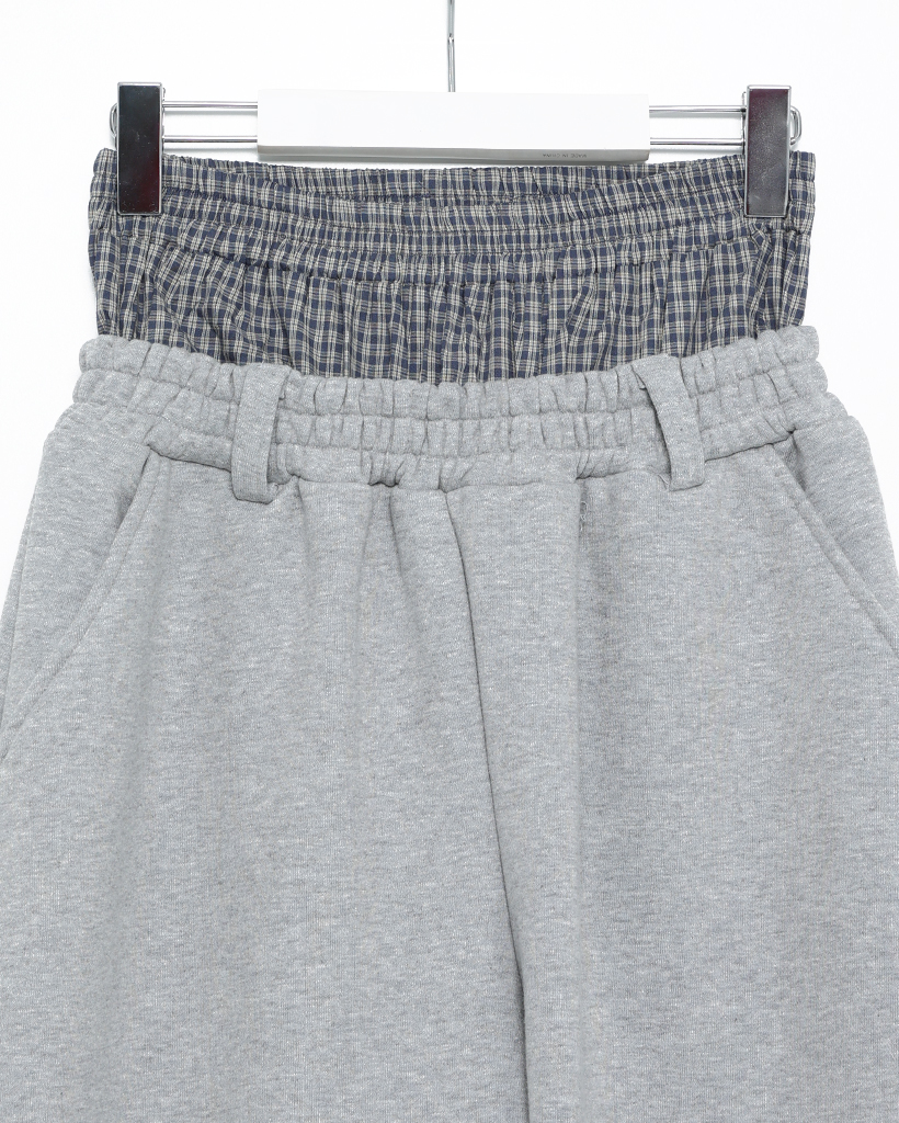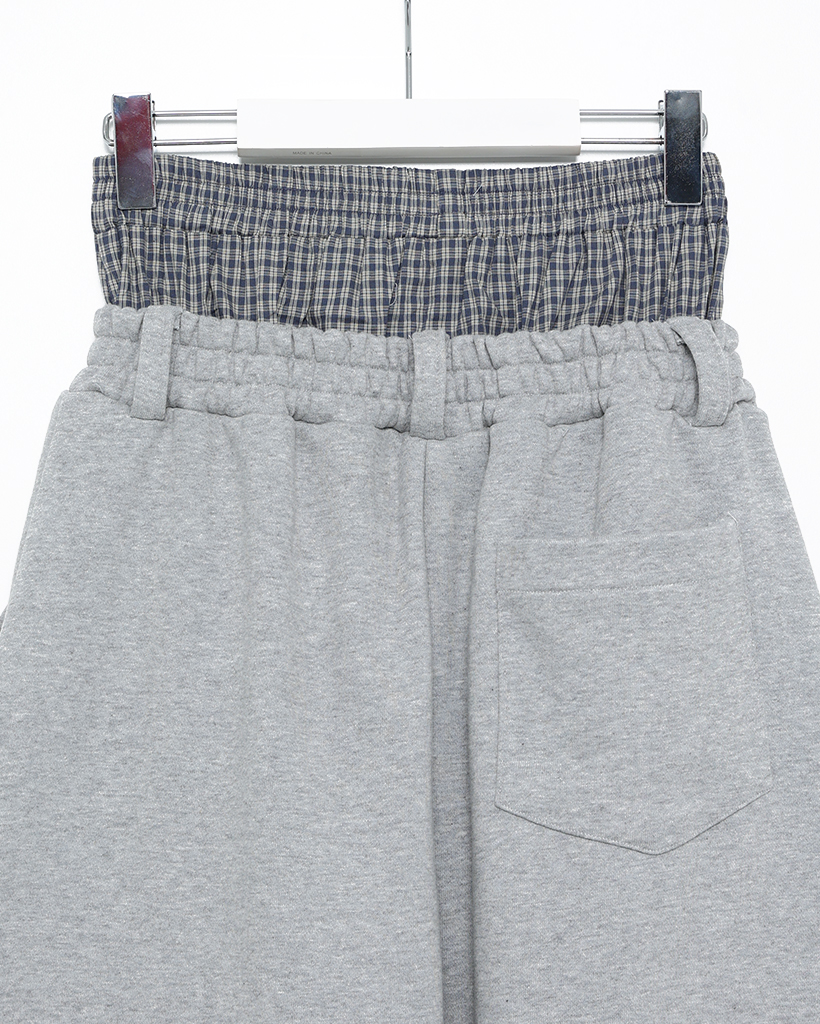 (ユニセックス)チェックレイヤードベルトループスウェットパンツ