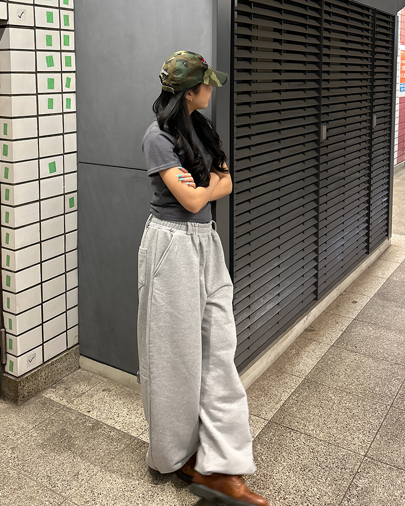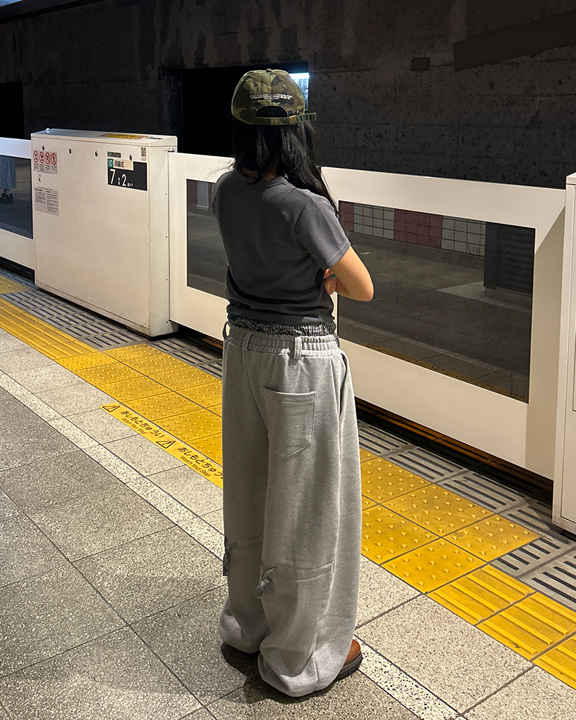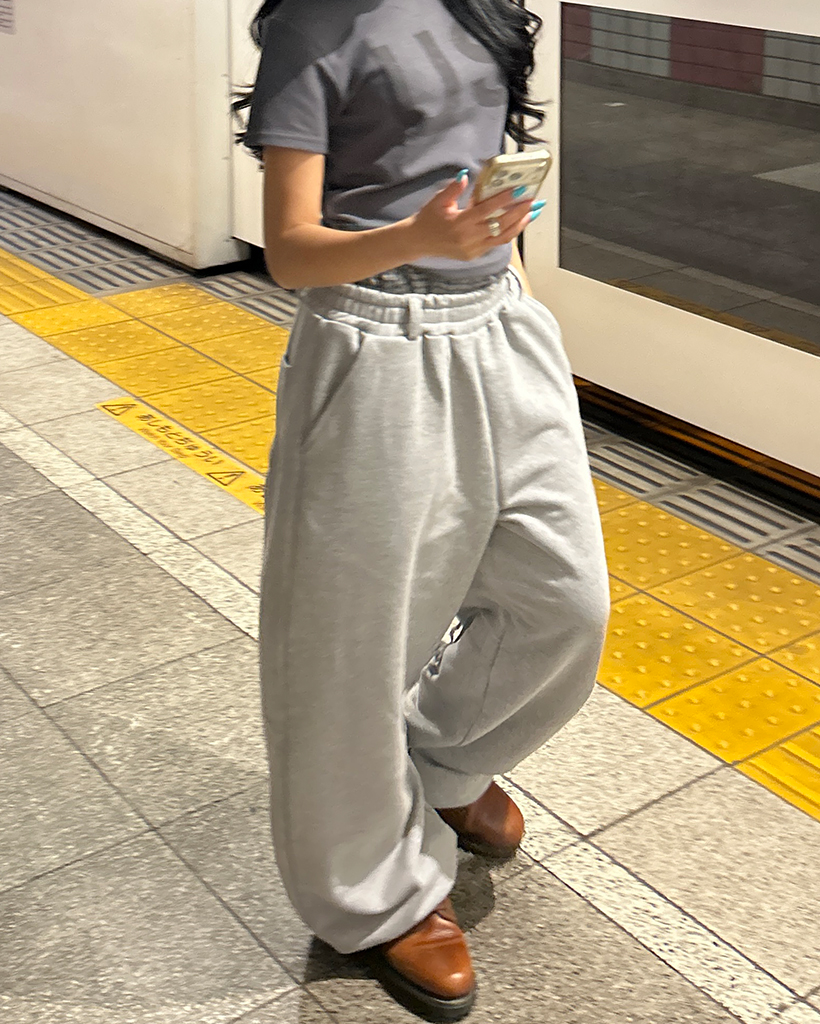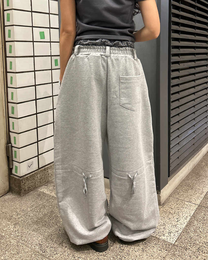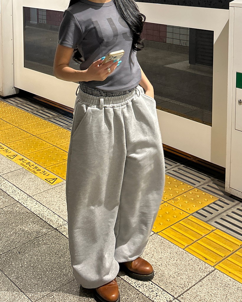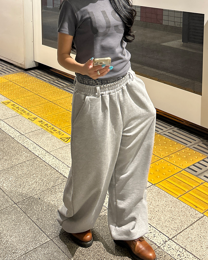 (ユニセックス)チェックレイヤードベルトループスウェットパンツ