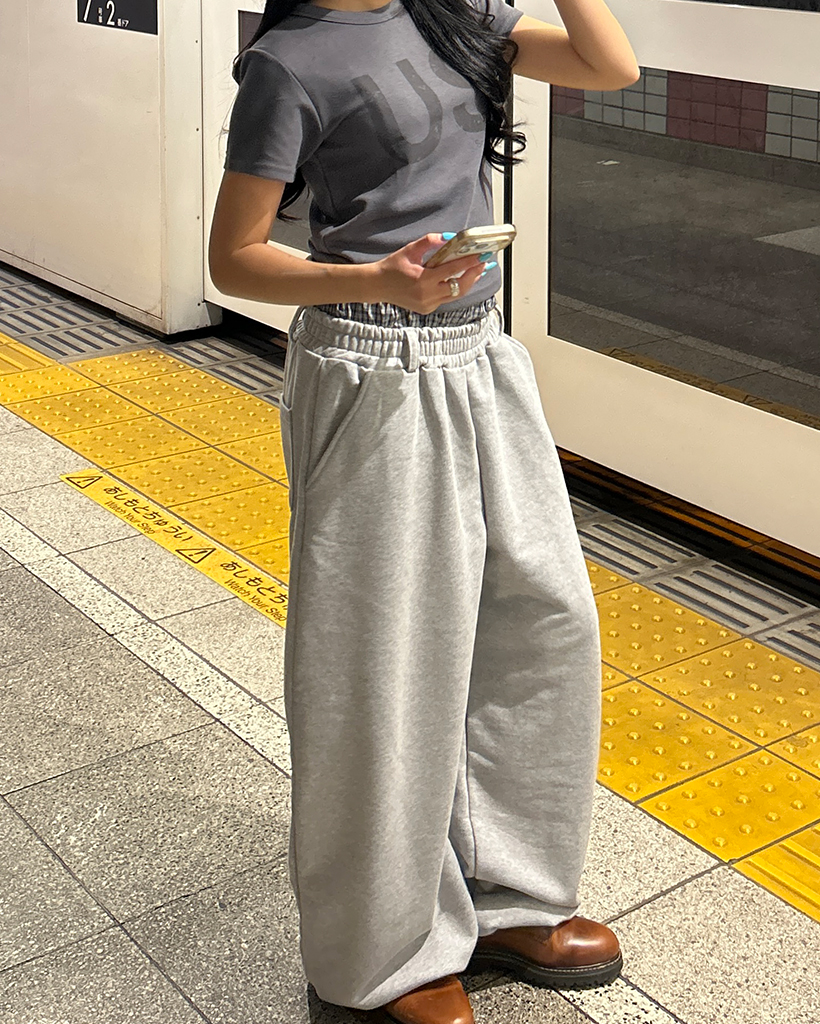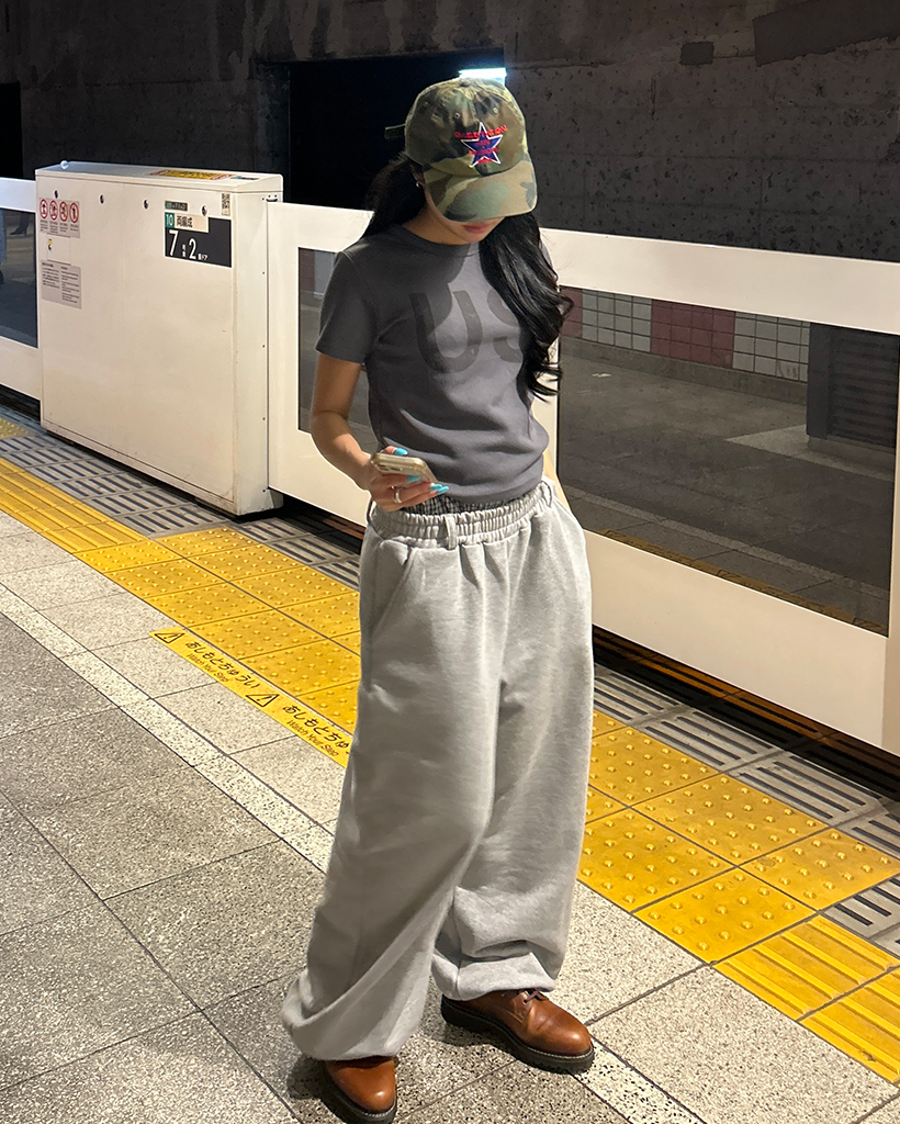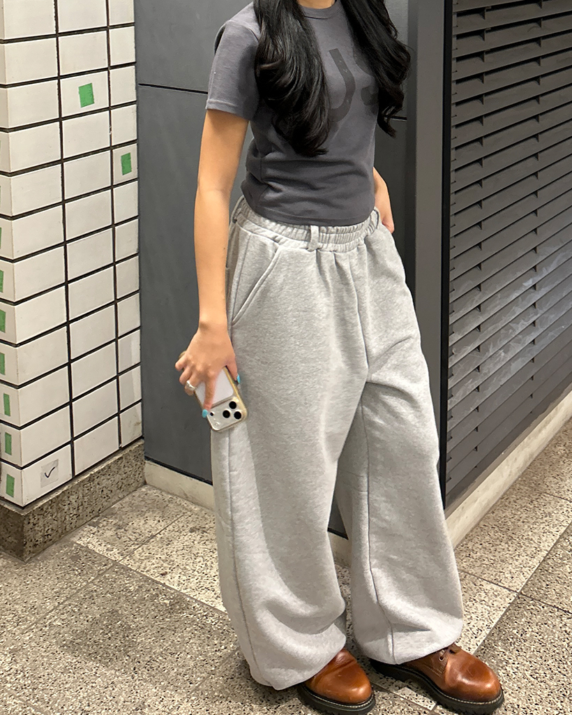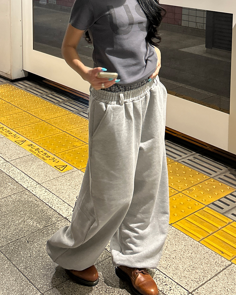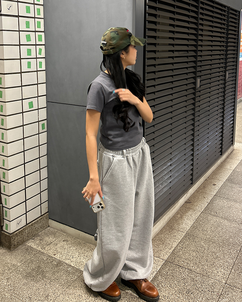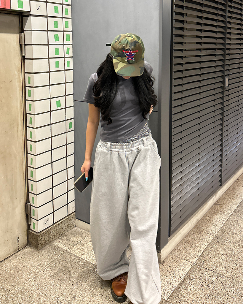 (ユニセックス)チェックレイヤードベルトループスウェットパンツ
