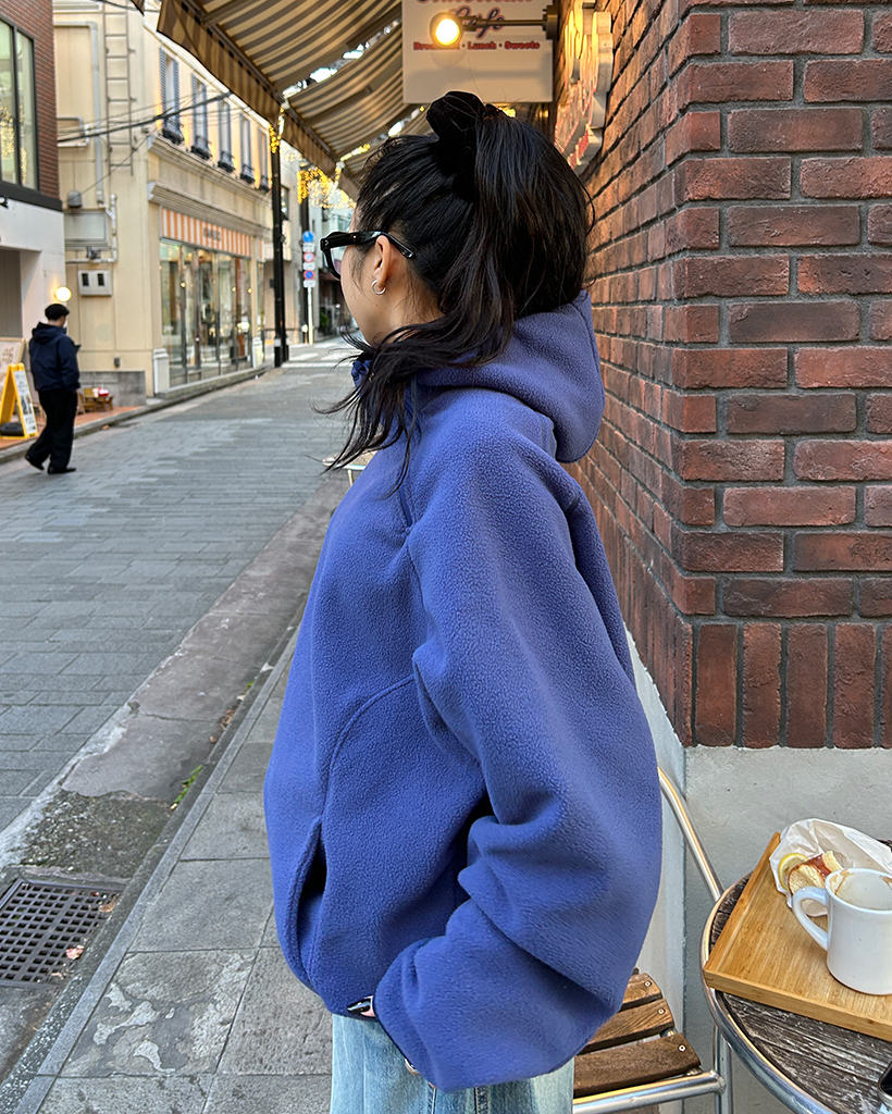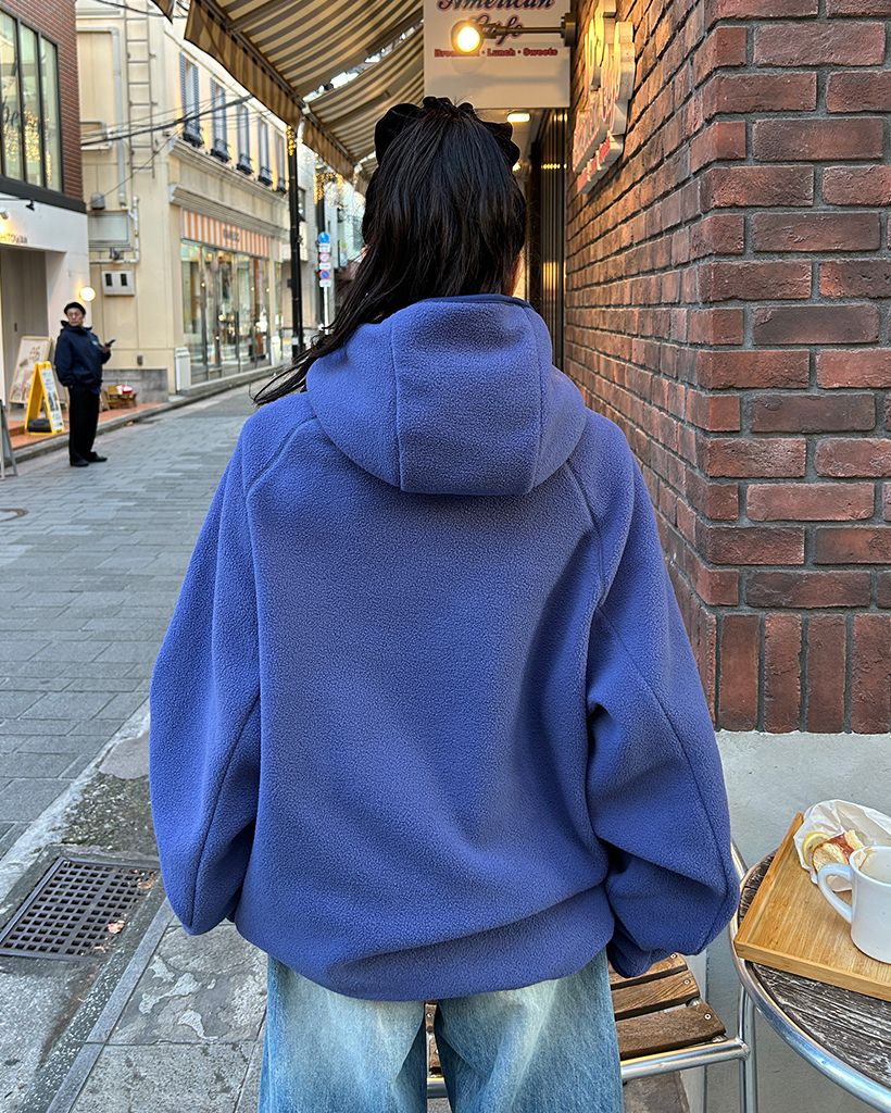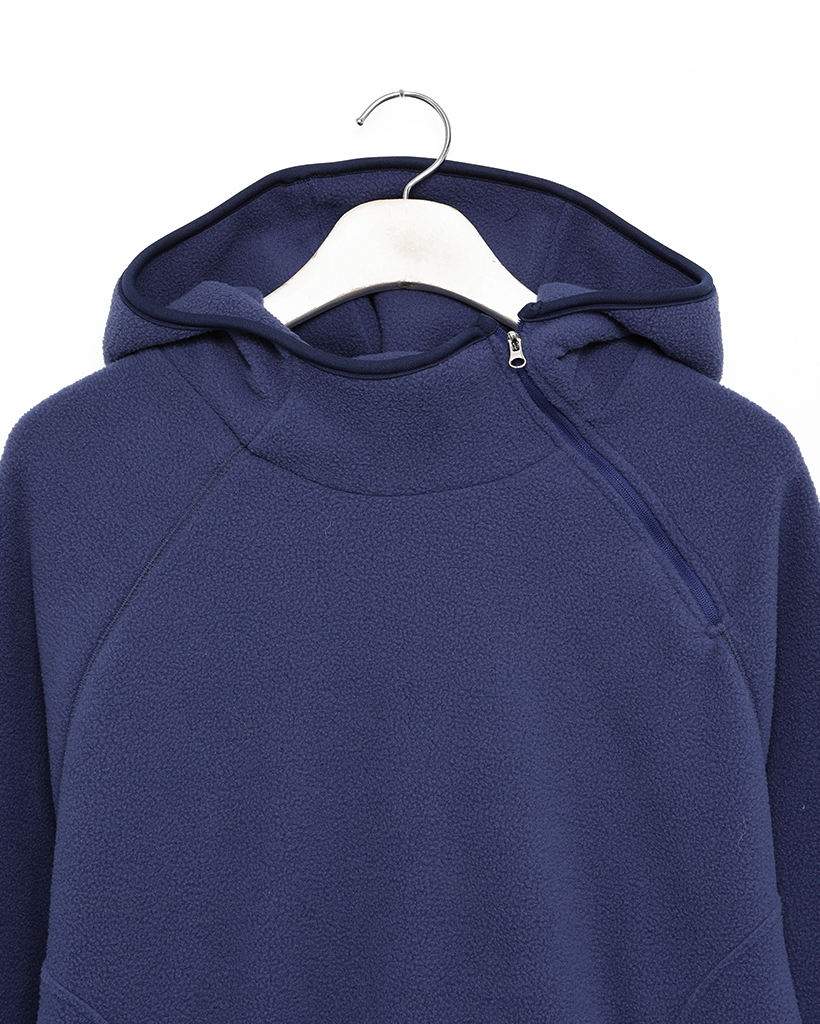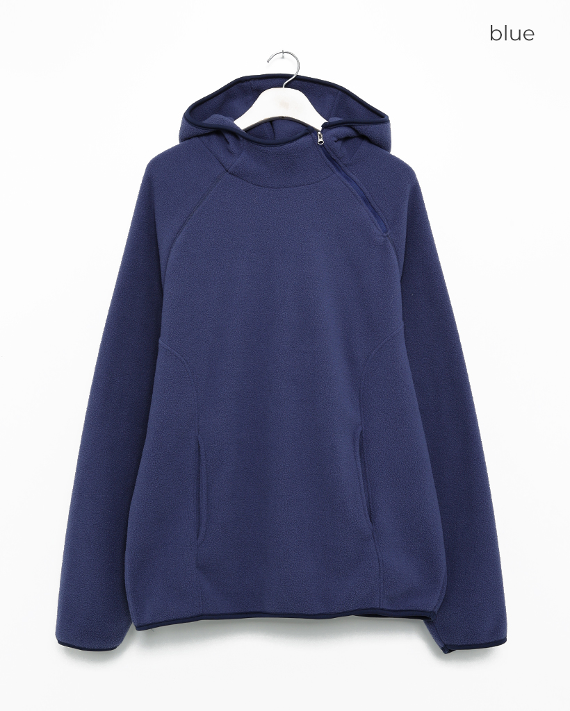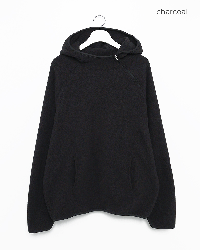 (ユニセックス)アシメントリージップネックフリースパーカー