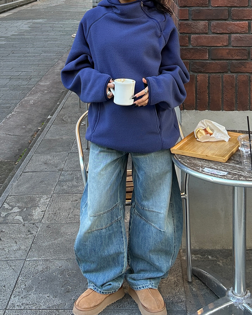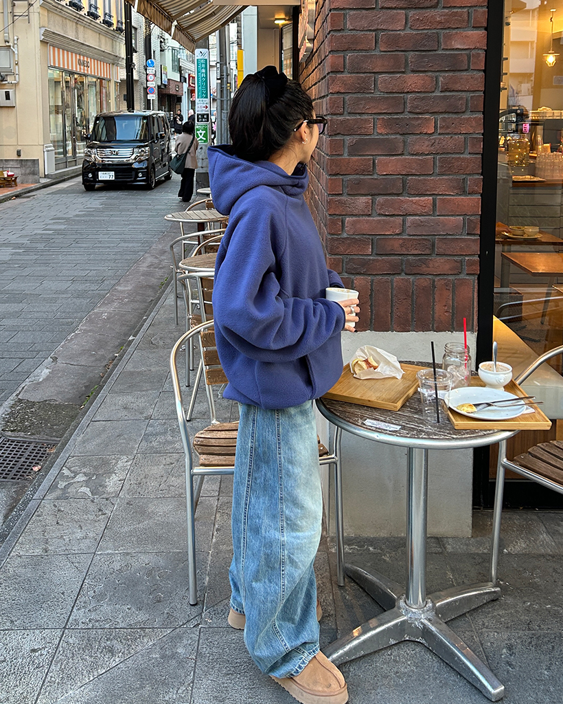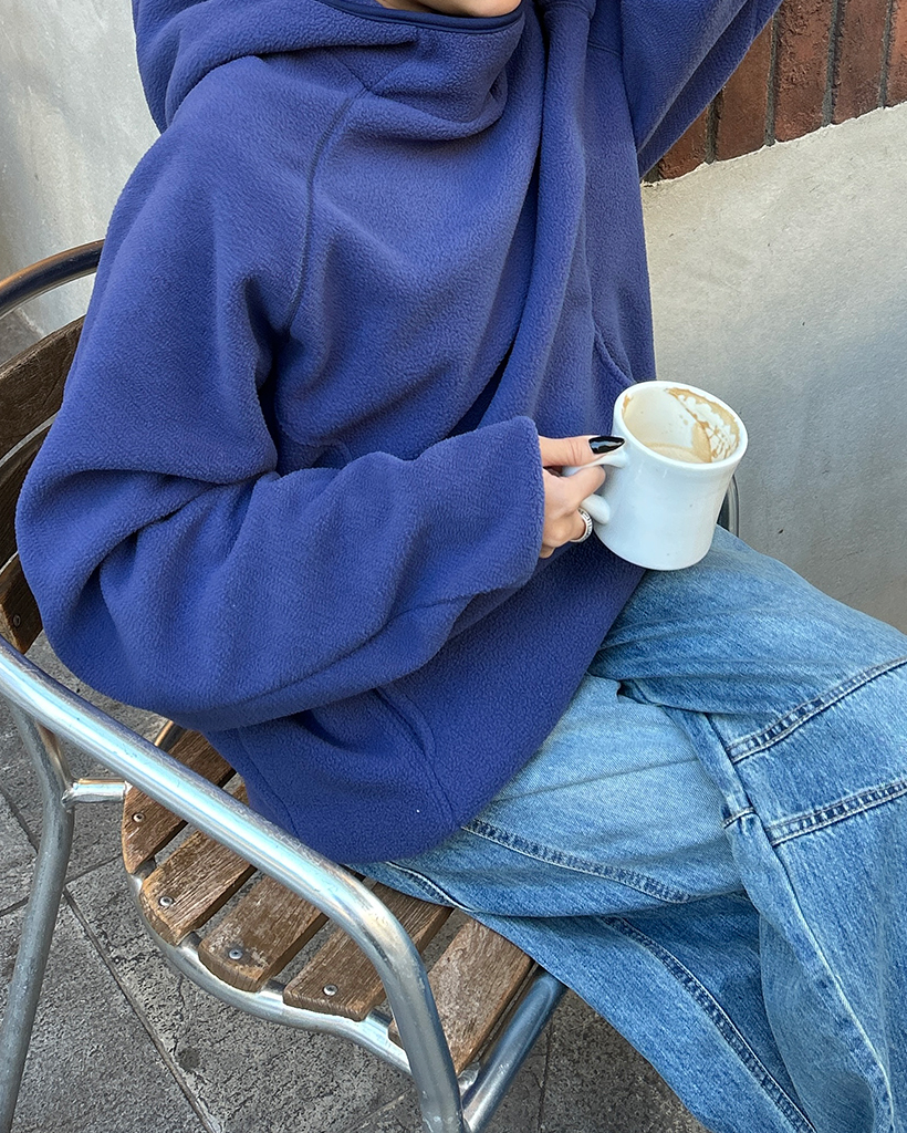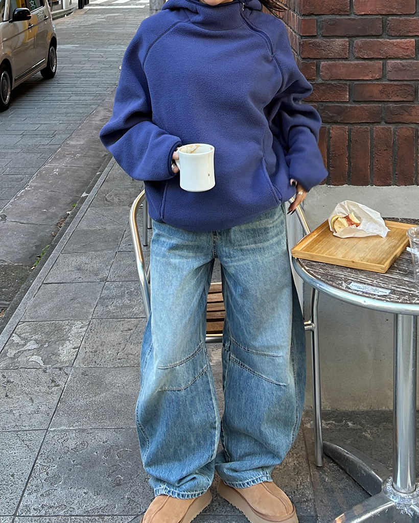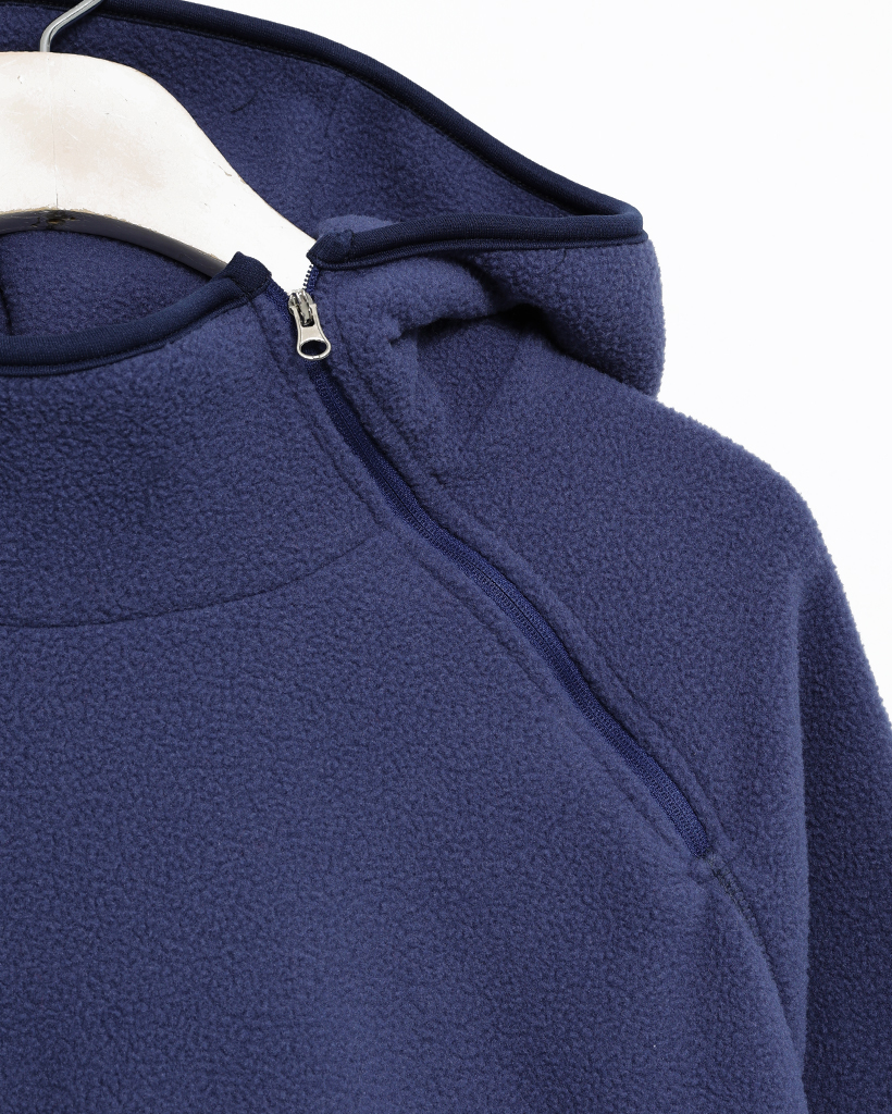 (ユニセックス)アシメントリージップネックフリースパーカー
