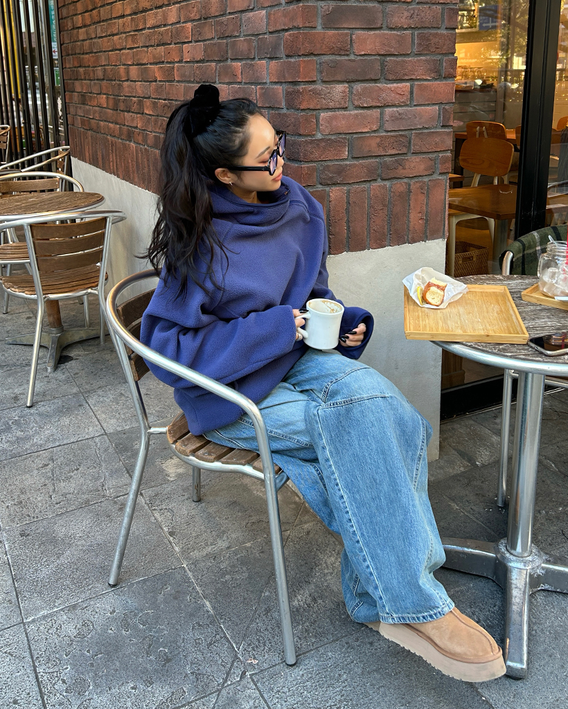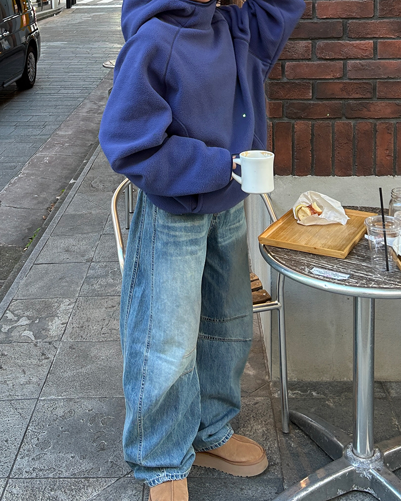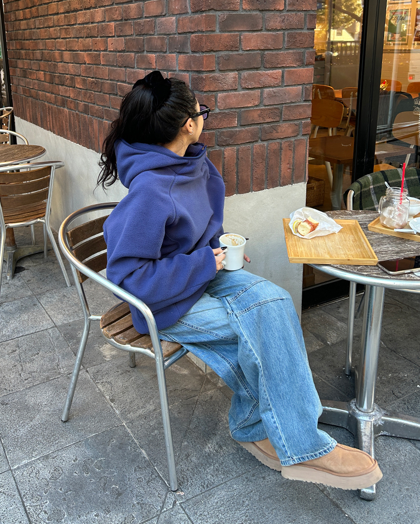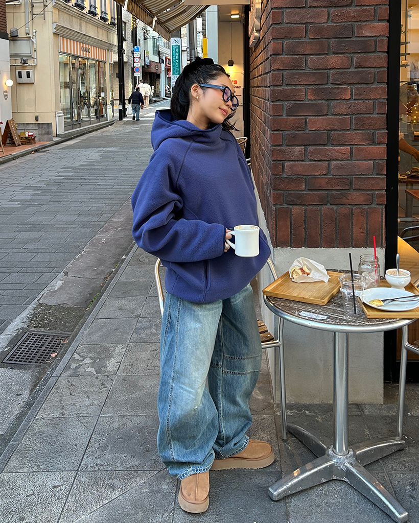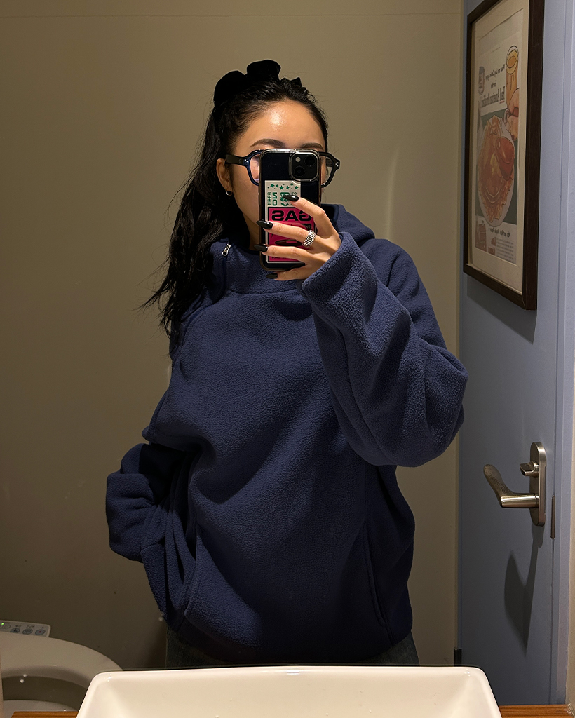 (ユニセックス)アシメントリージップネックフリースパーカー