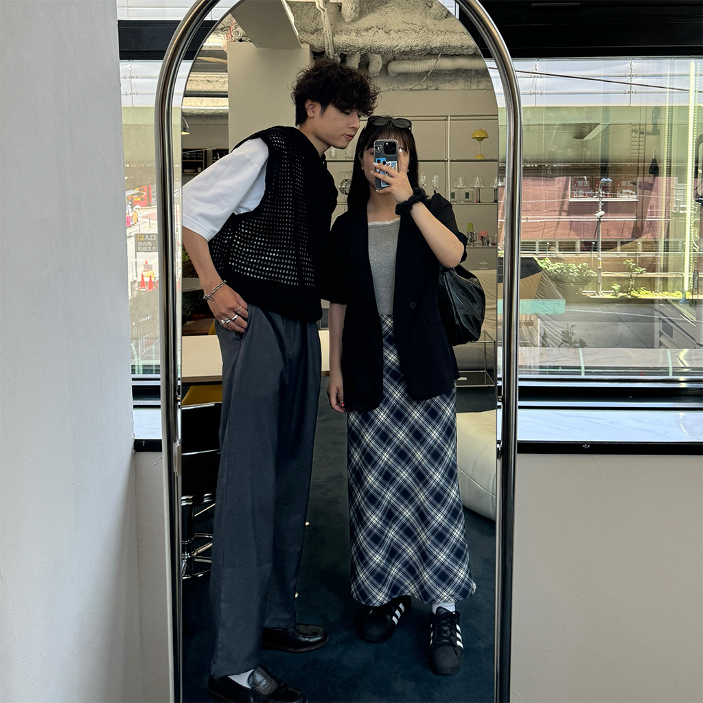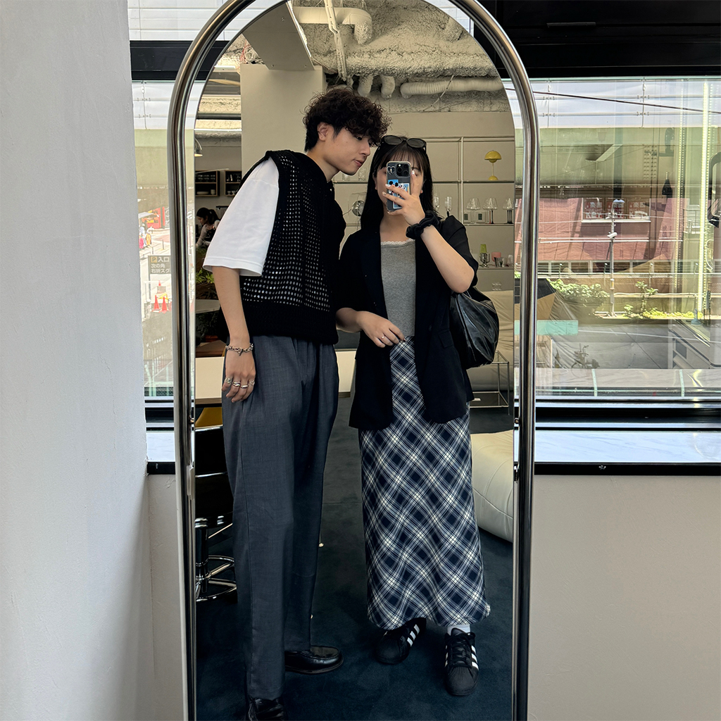 #マユ#157cm#ウェーブ#モノトーン#ユニセックス#カジュアル