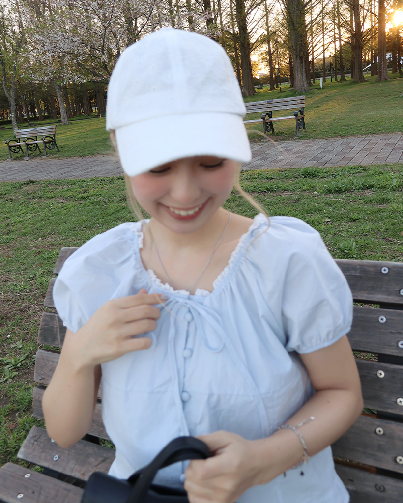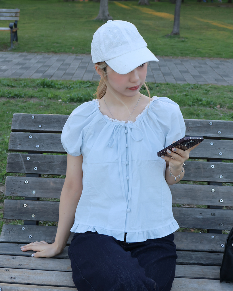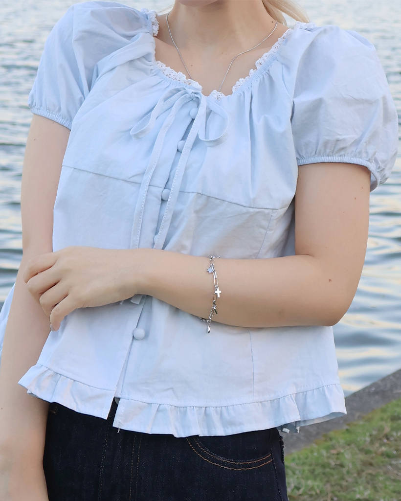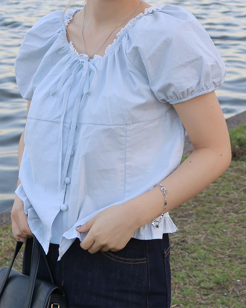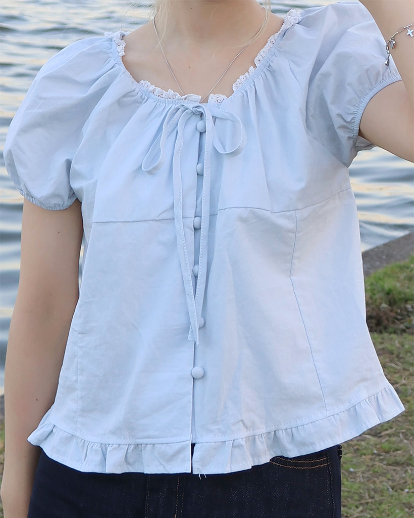 ネックレースポイントボタンブラウス