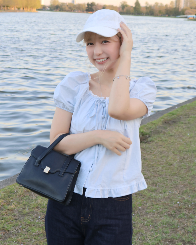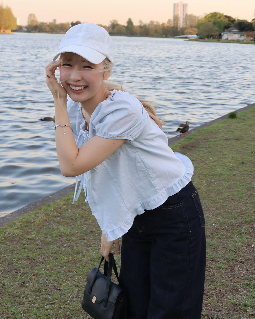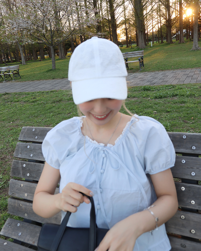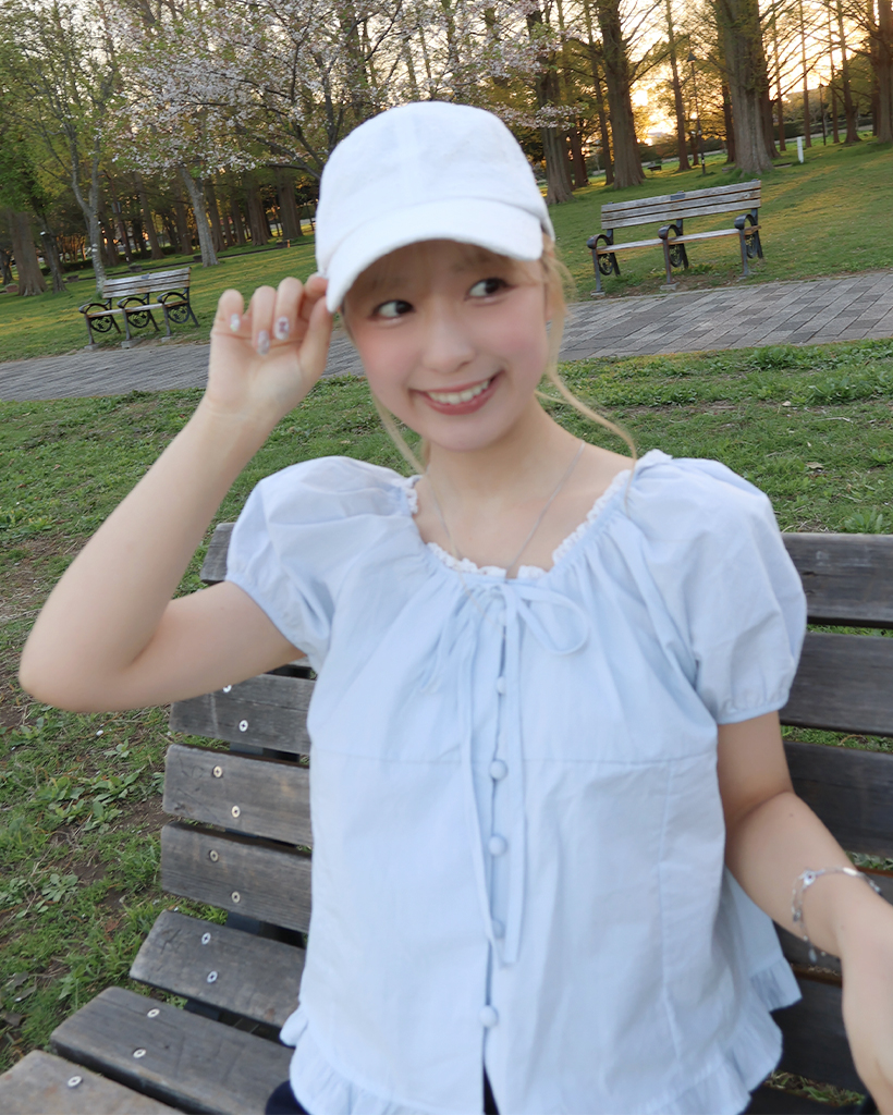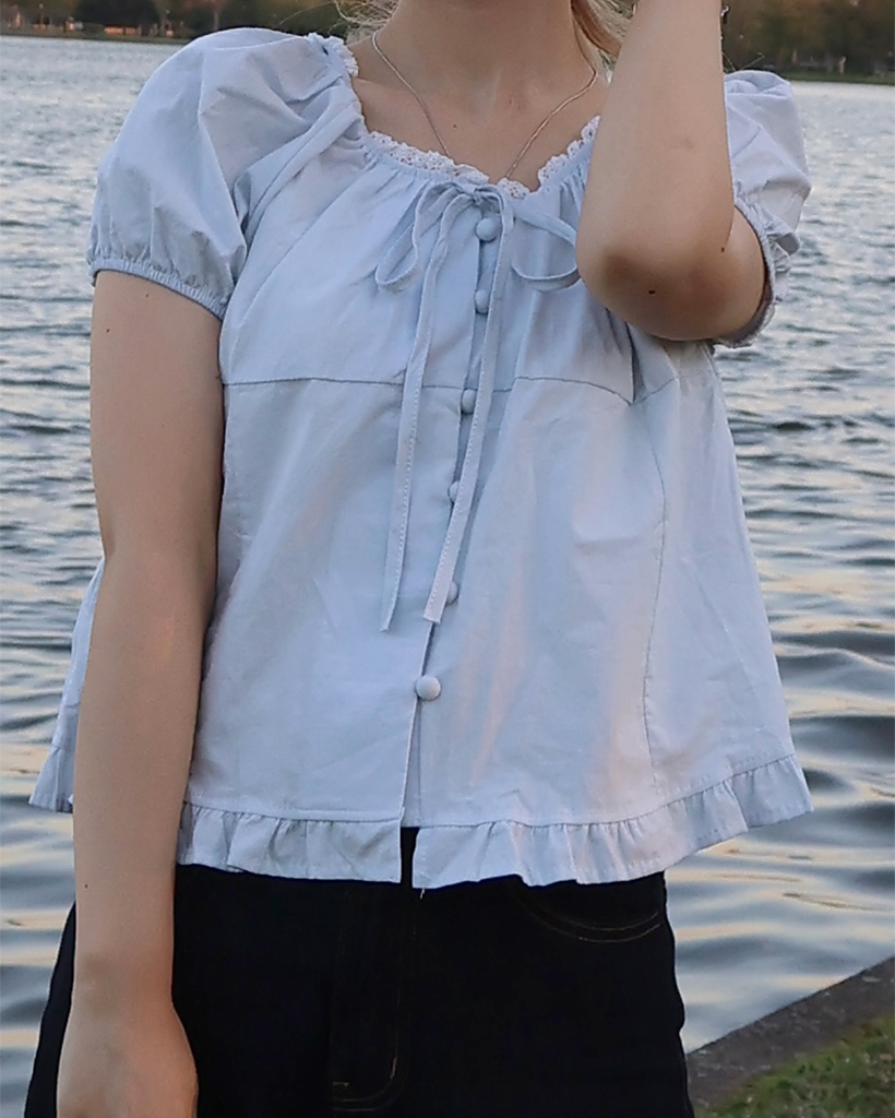 ネックレースポイントボタンブラウス