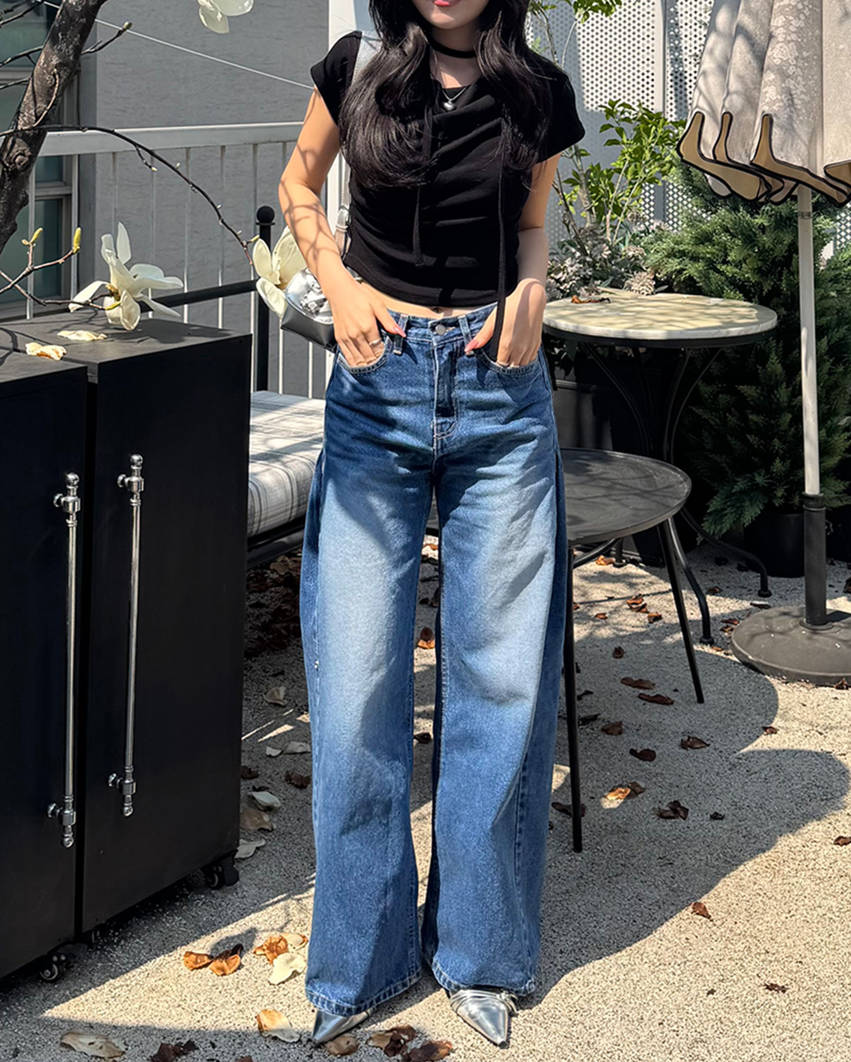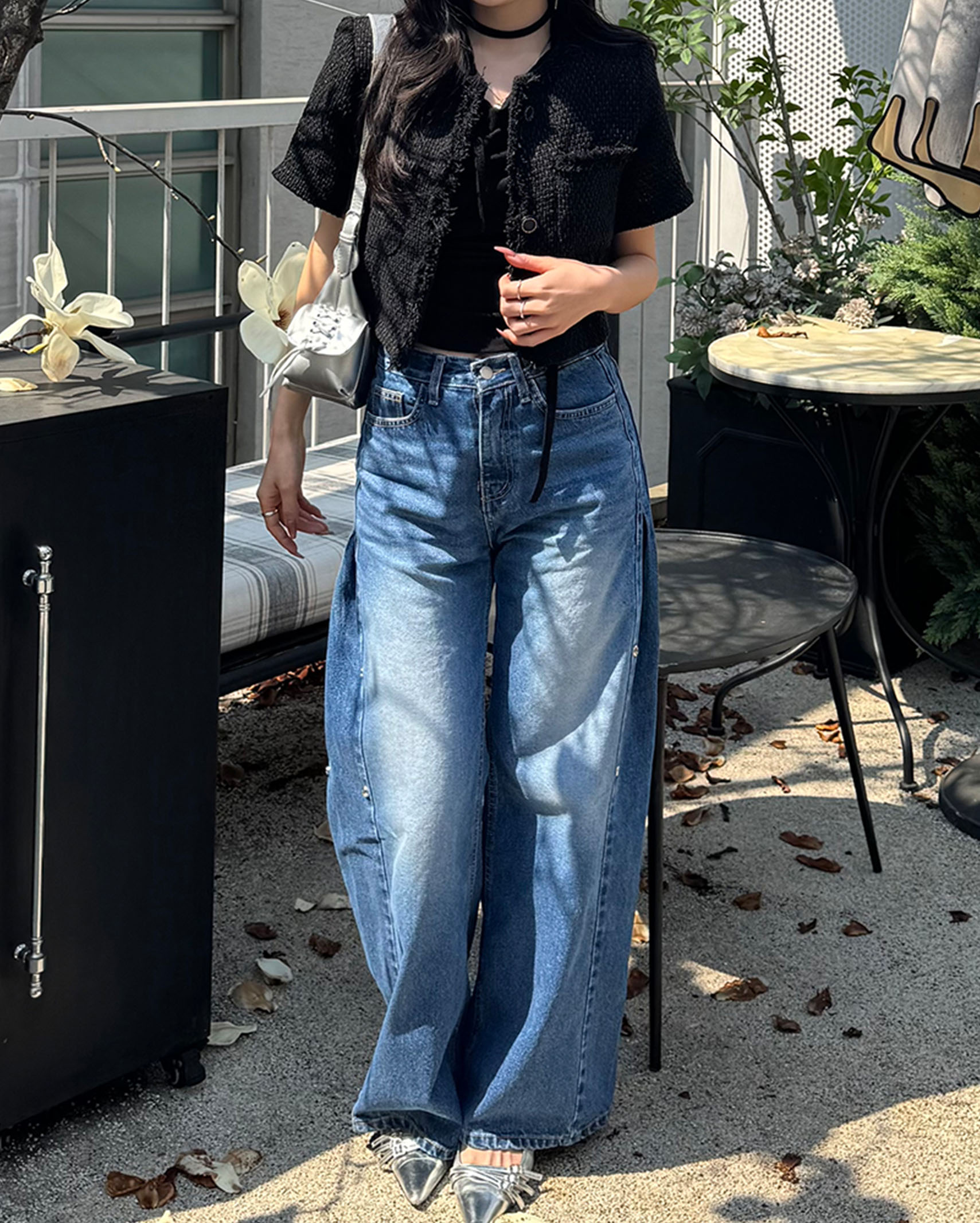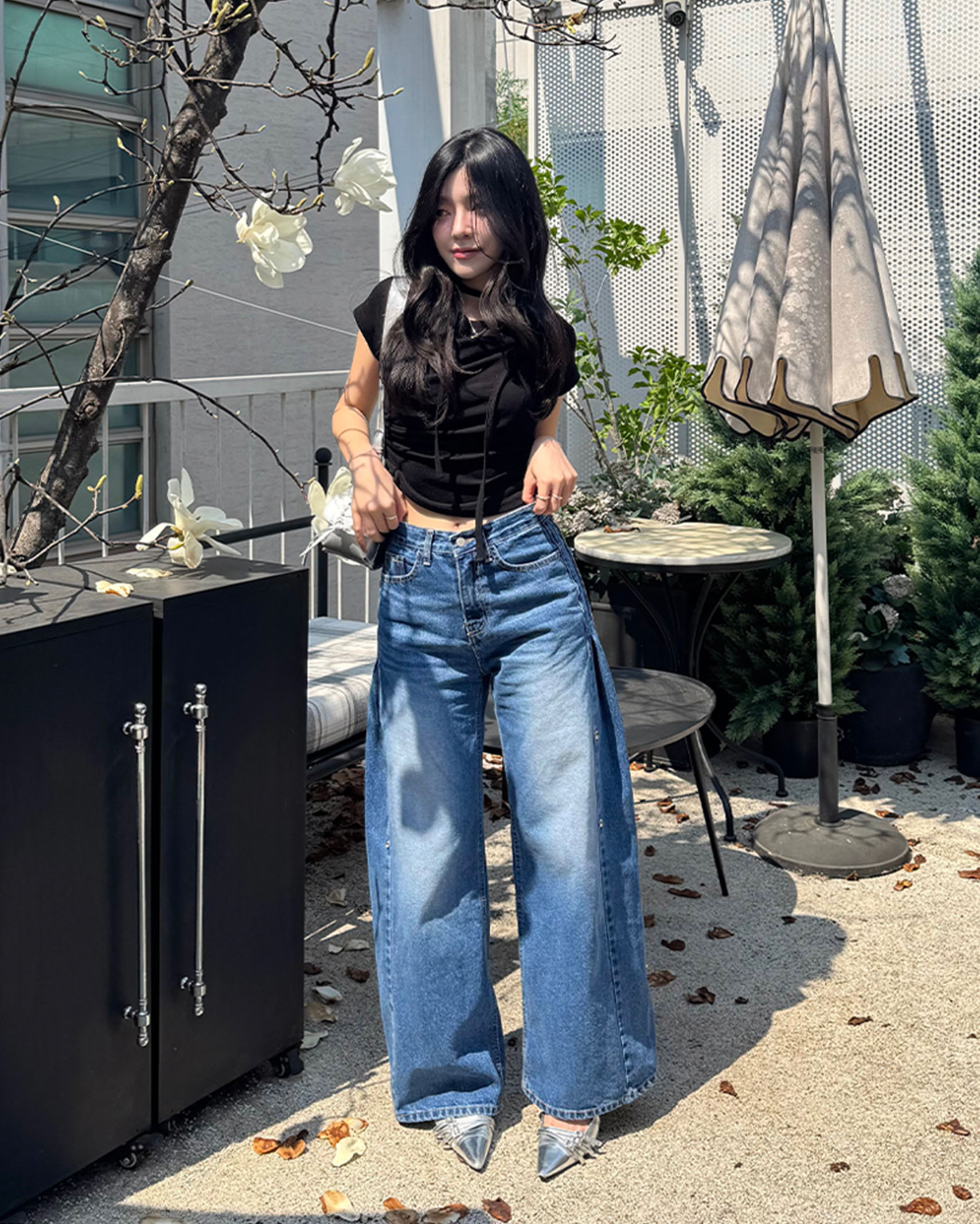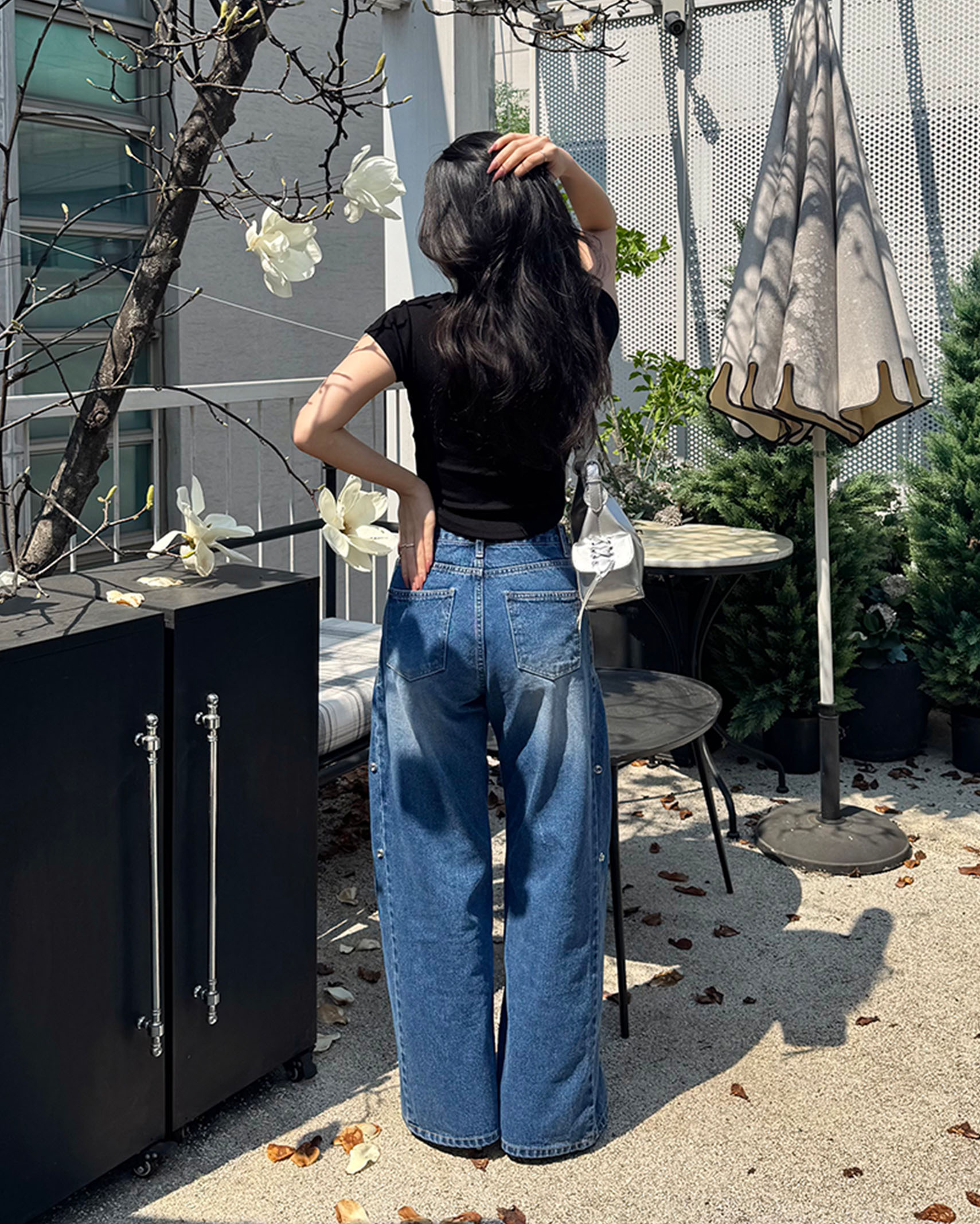 [1回再販](ORIGINAL) 3ウェイボタンワイドデニムパンツ