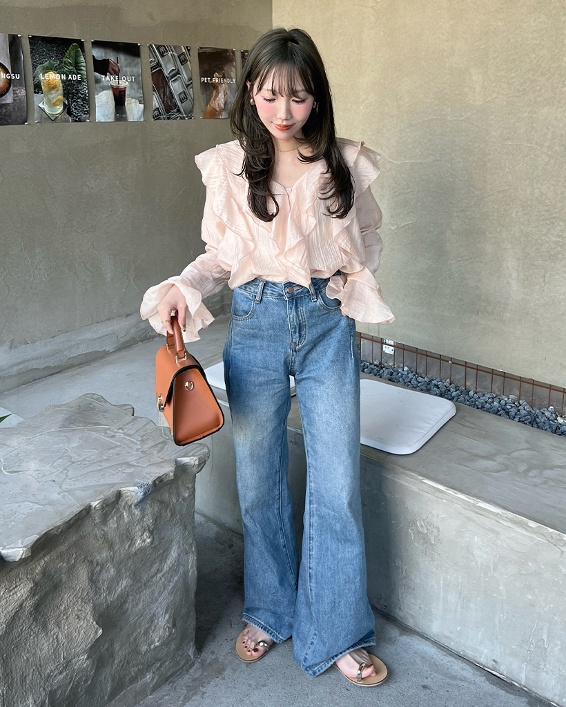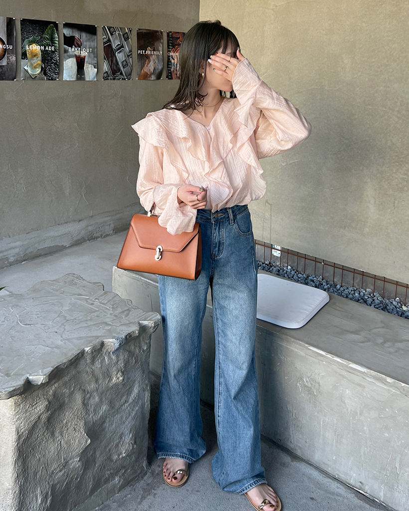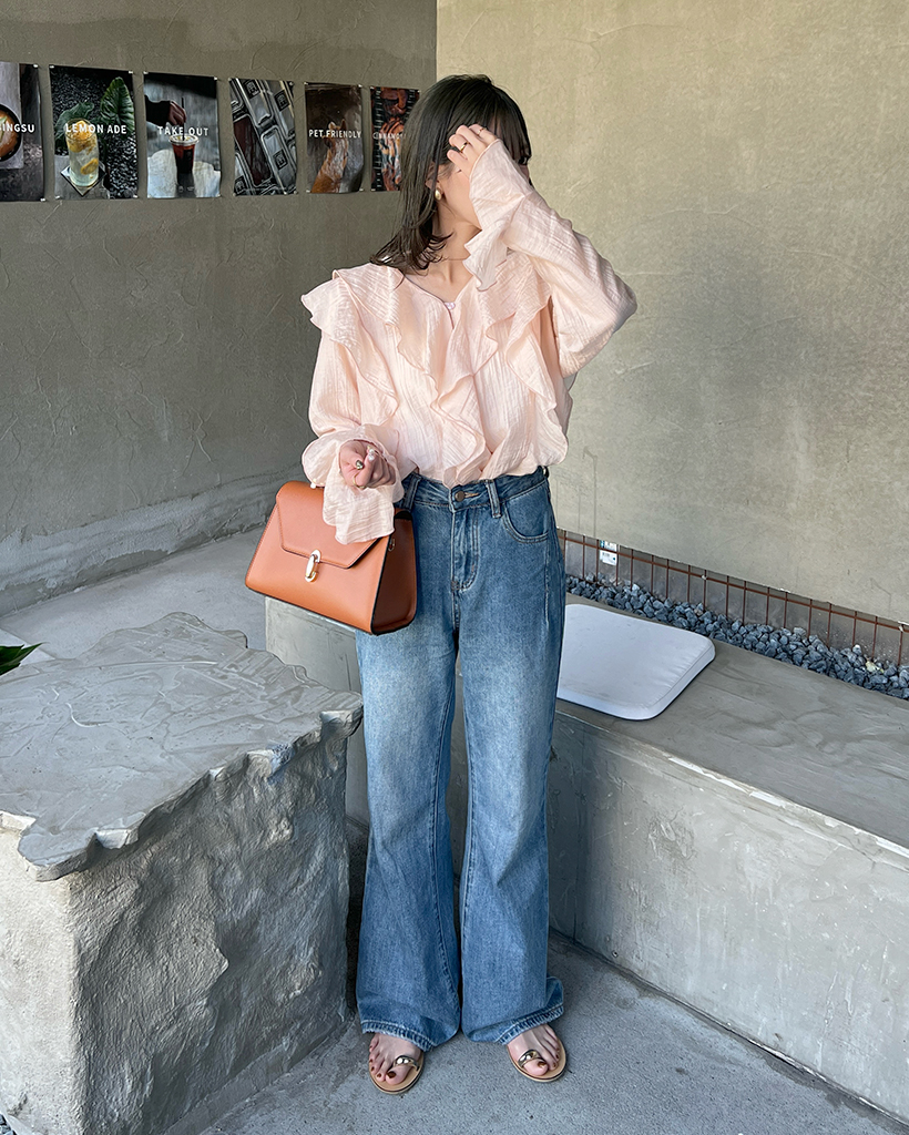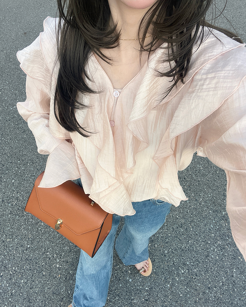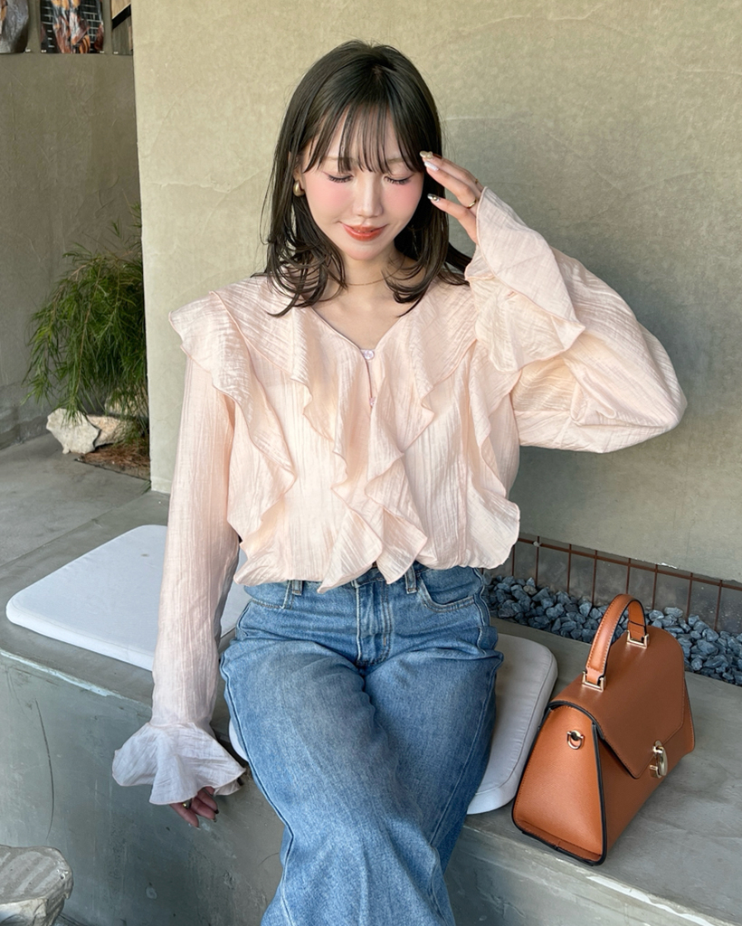 ラッフルフリルVネックブラウス