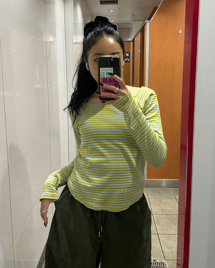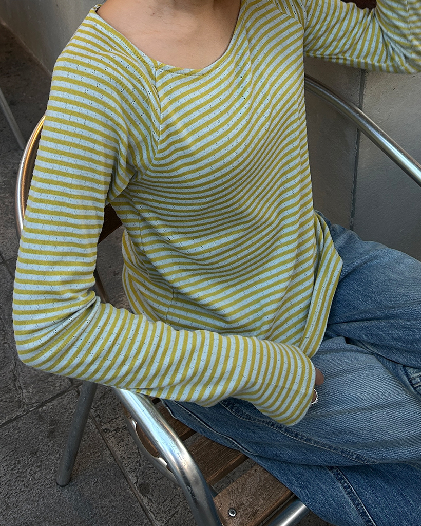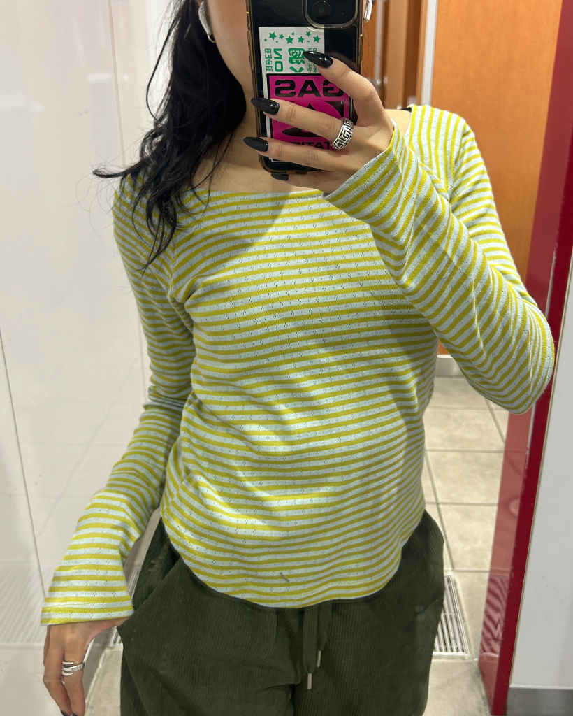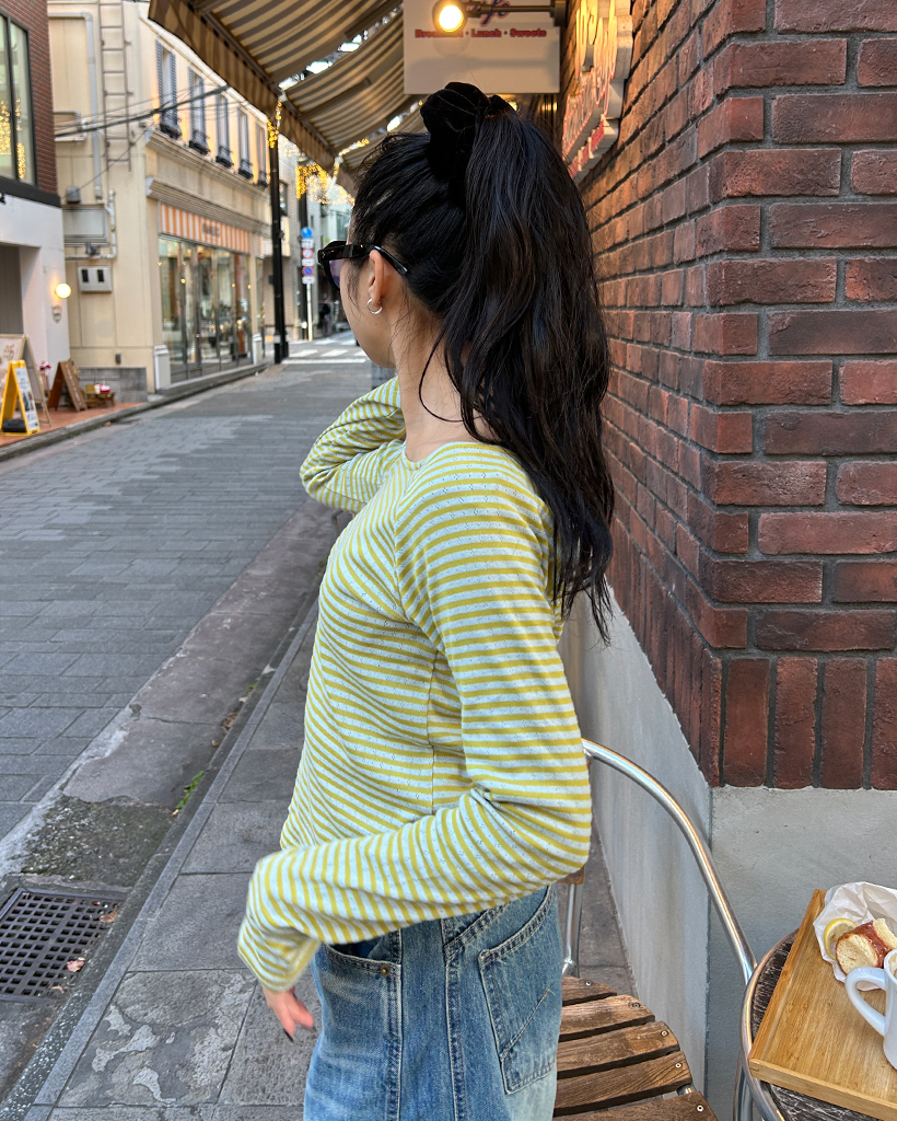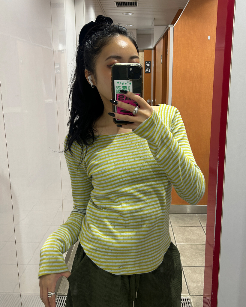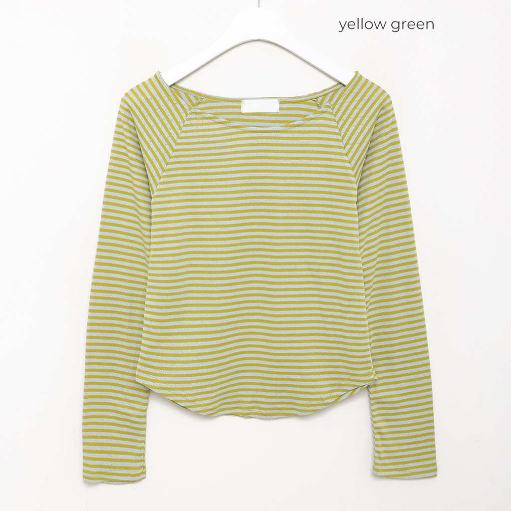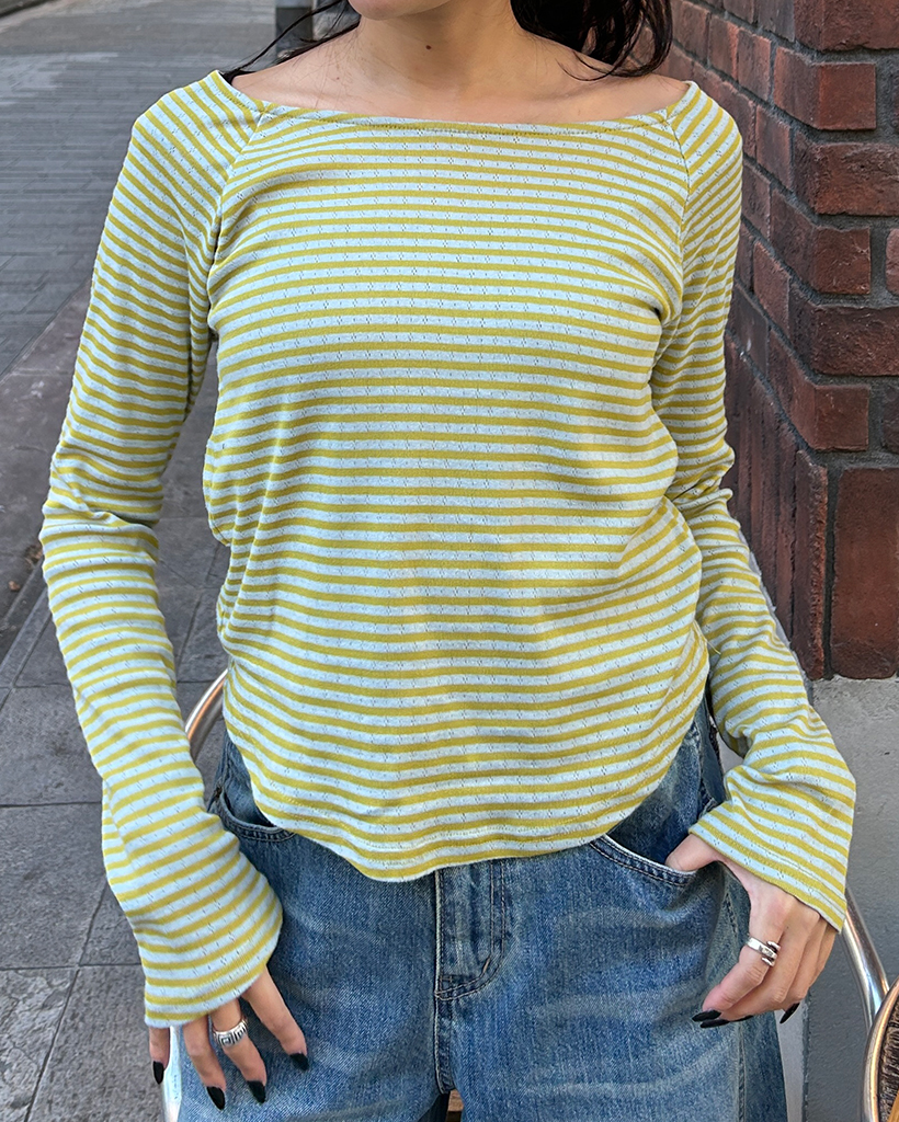 ボーダーラウンドヘムロングスリーブカットソー