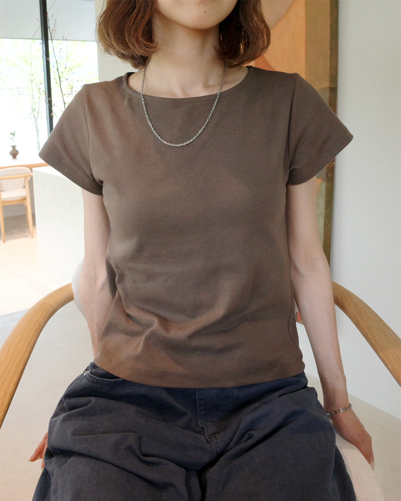 ボートネッククロップショートスリーブTシャツ