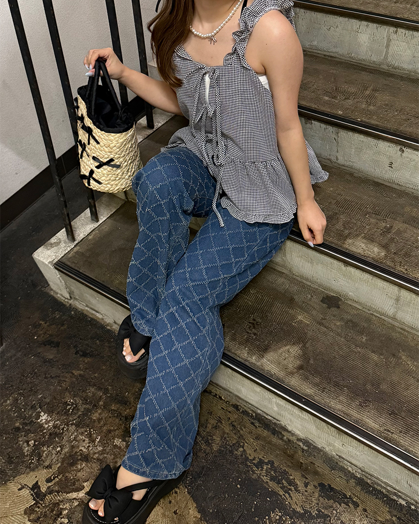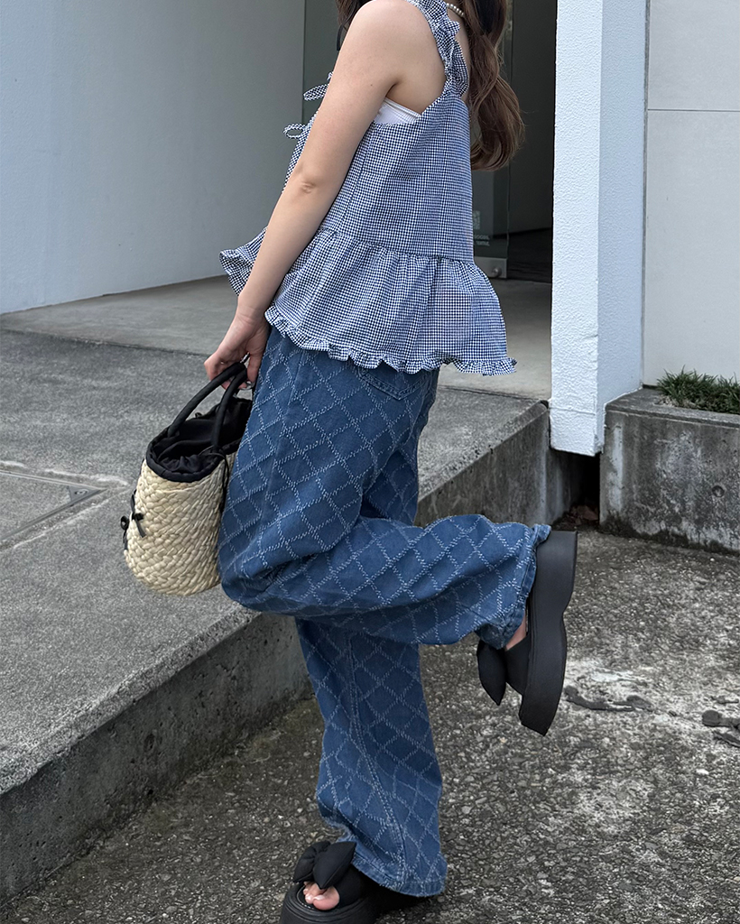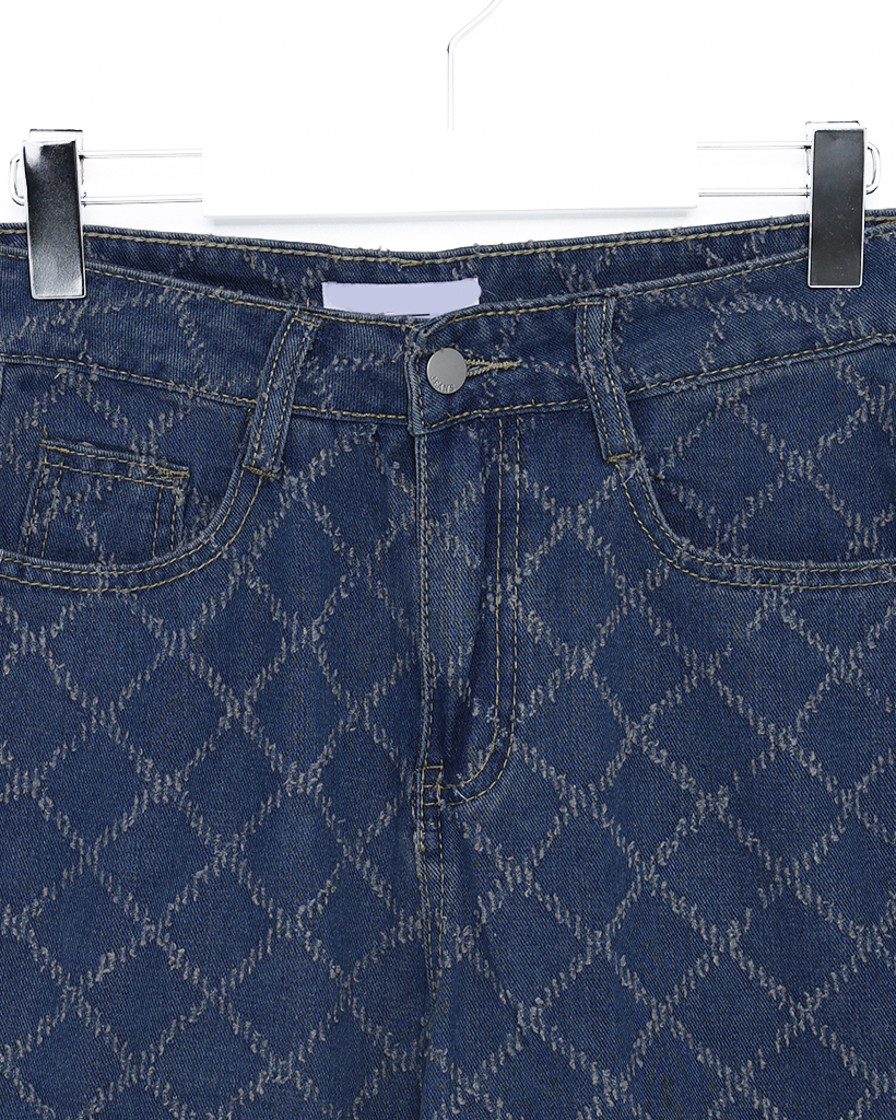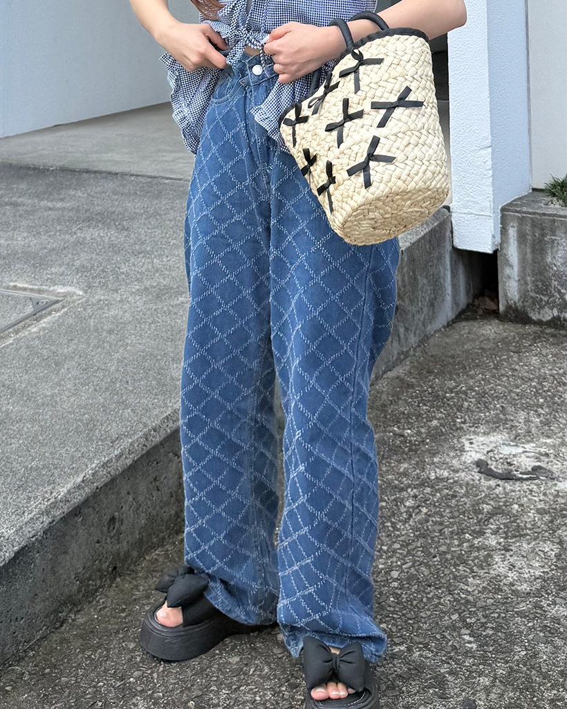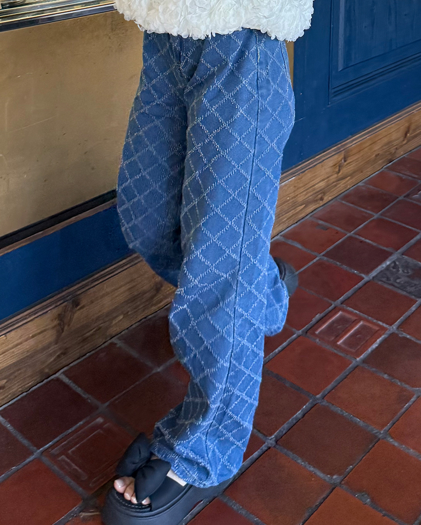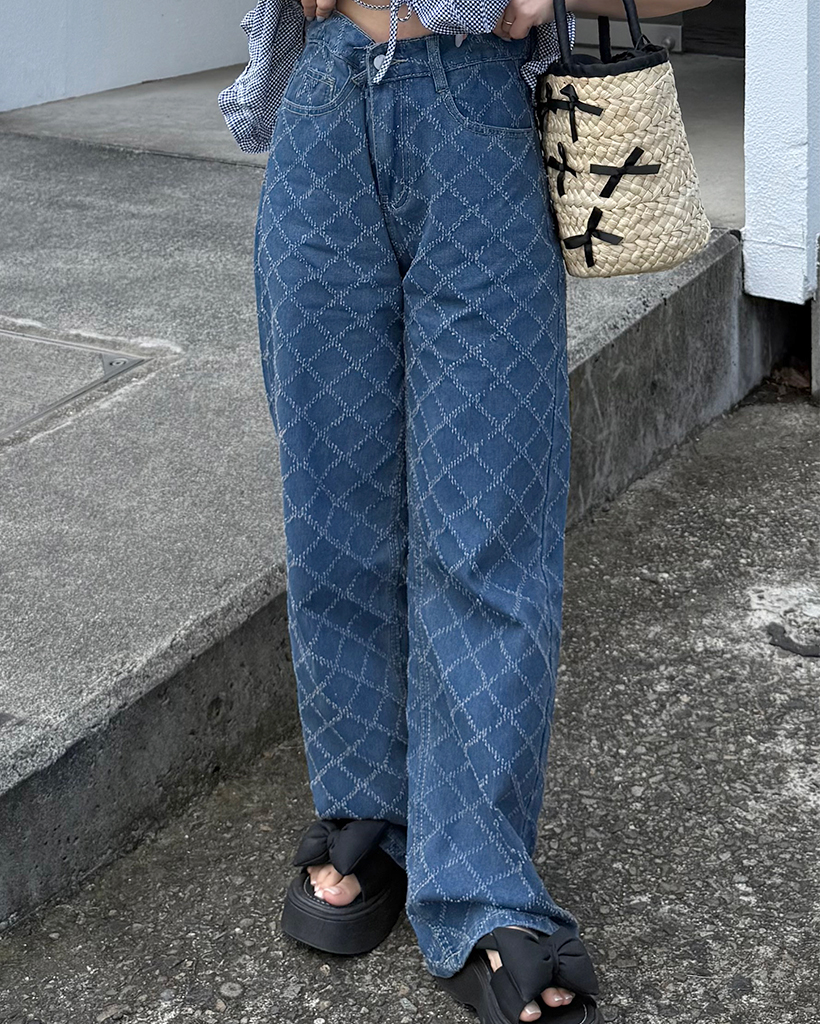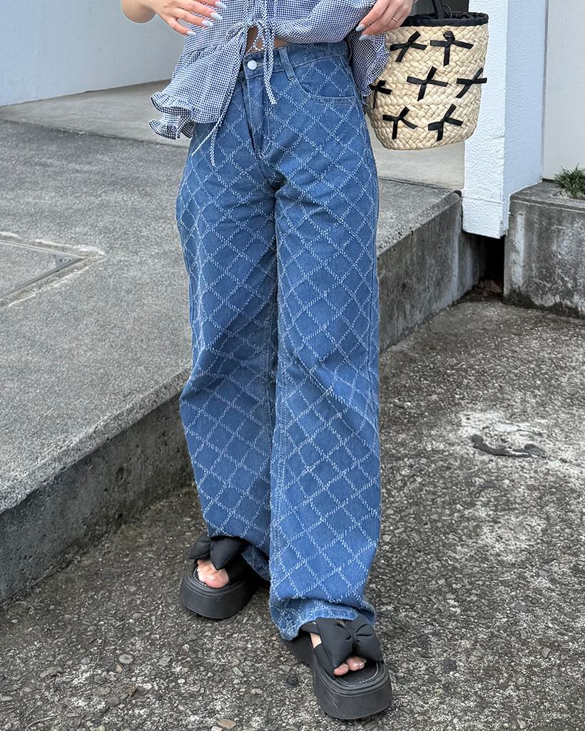 スノーカットダイヤチェックデニムワイドパンツ