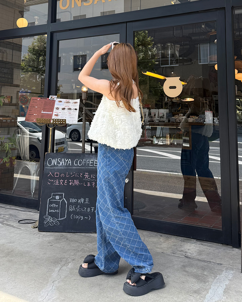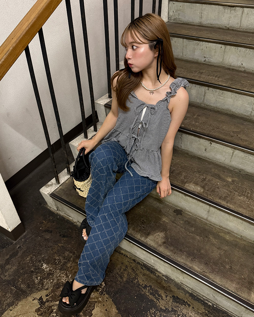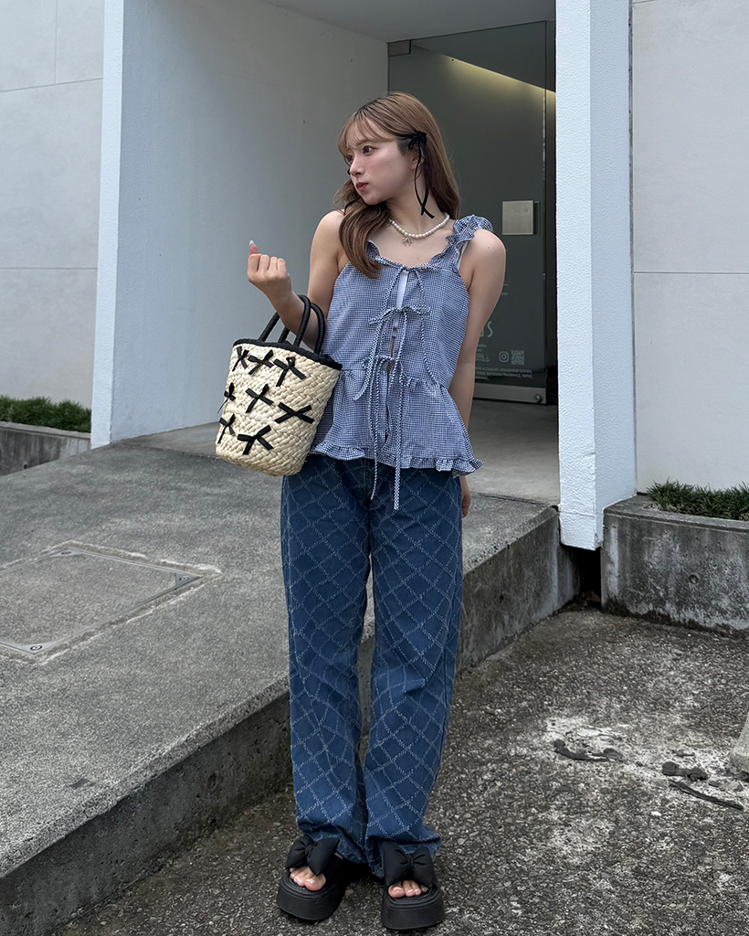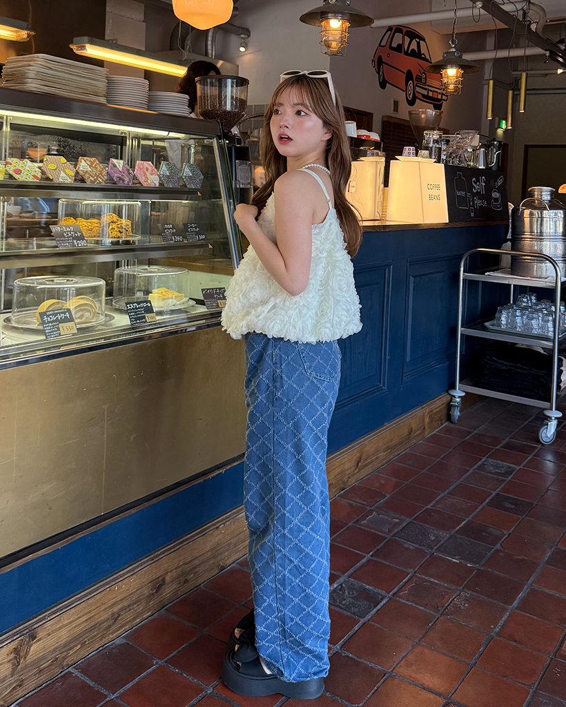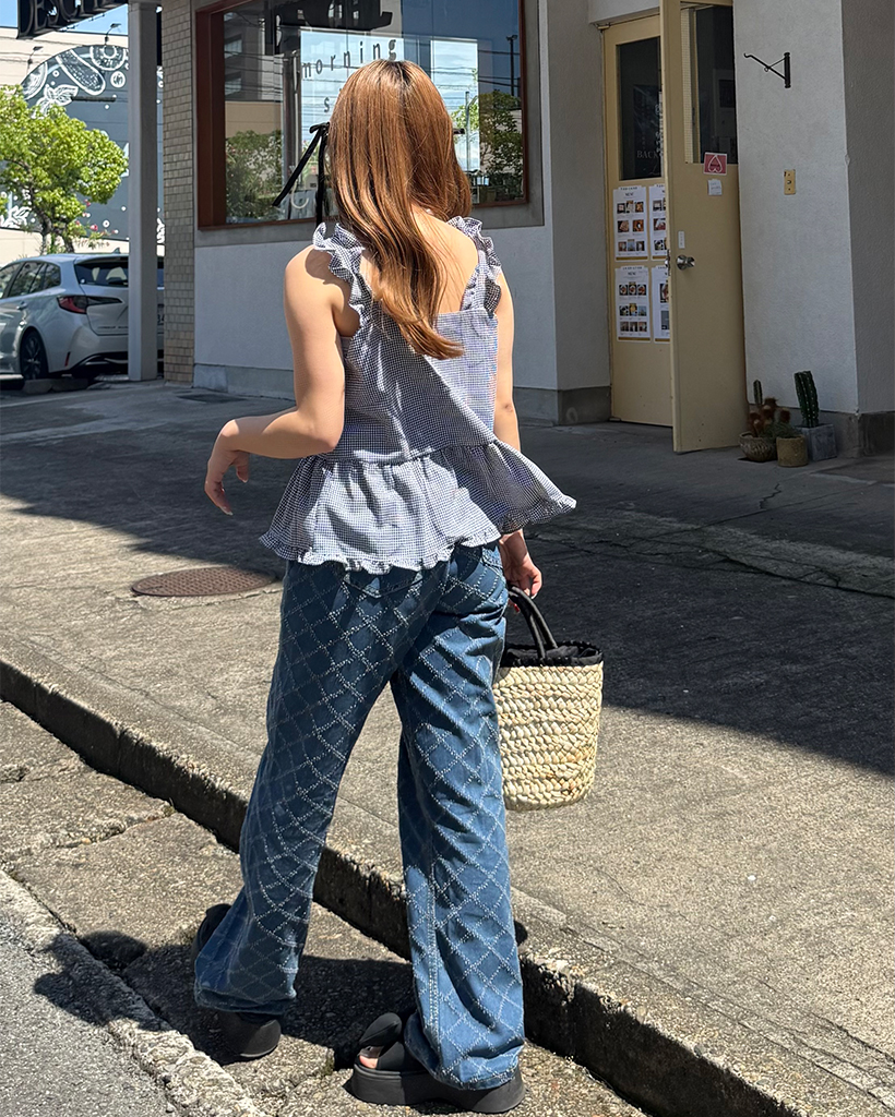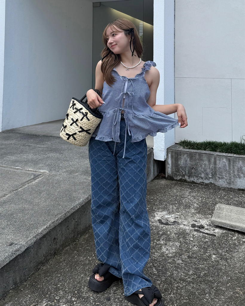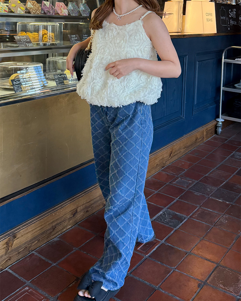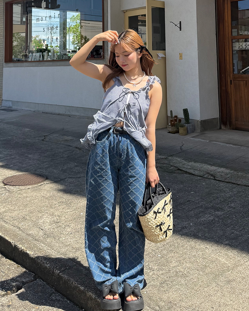 スノーカットダイヤチェックデニムワイドパンツ