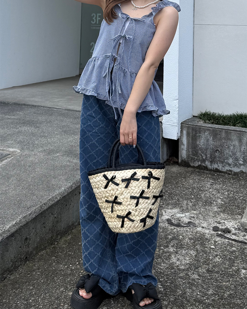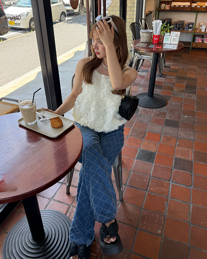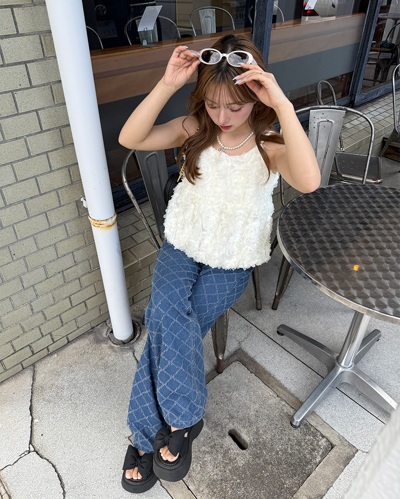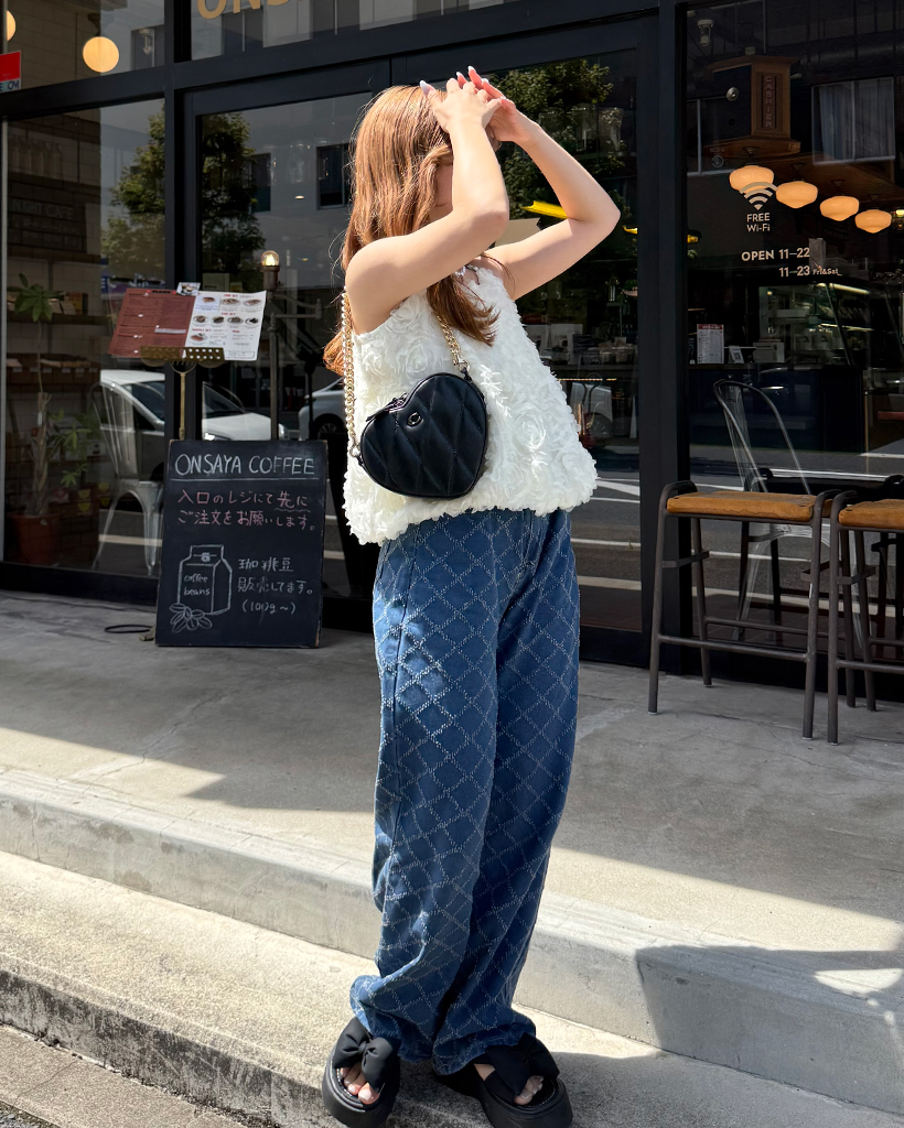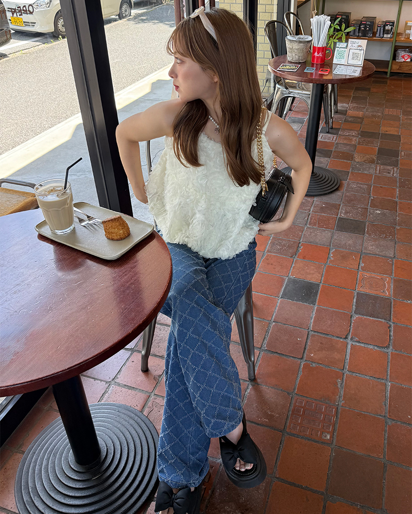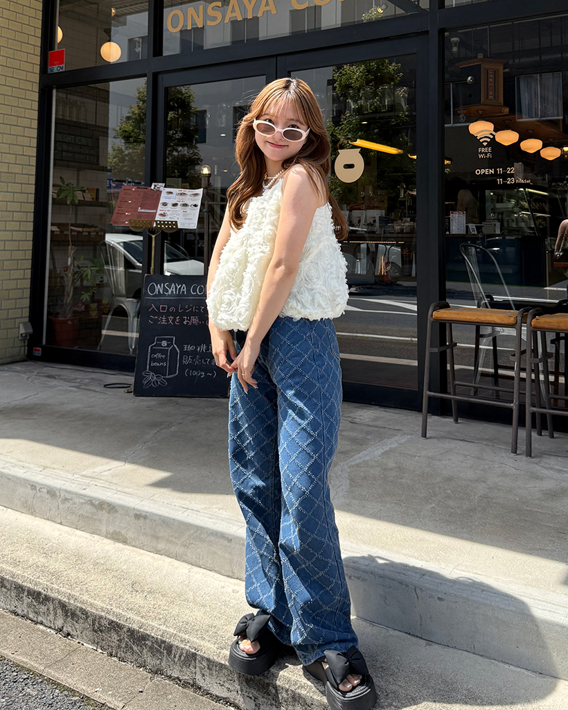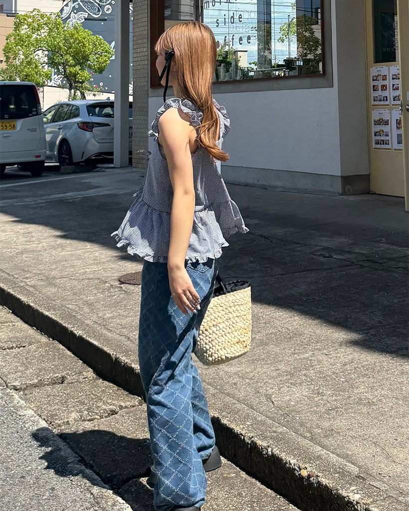 スノーカットダイヤチェックデニムワイドパンツ