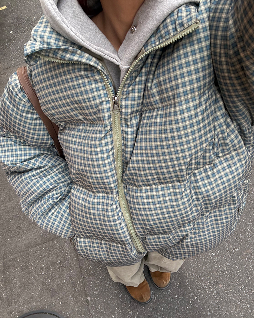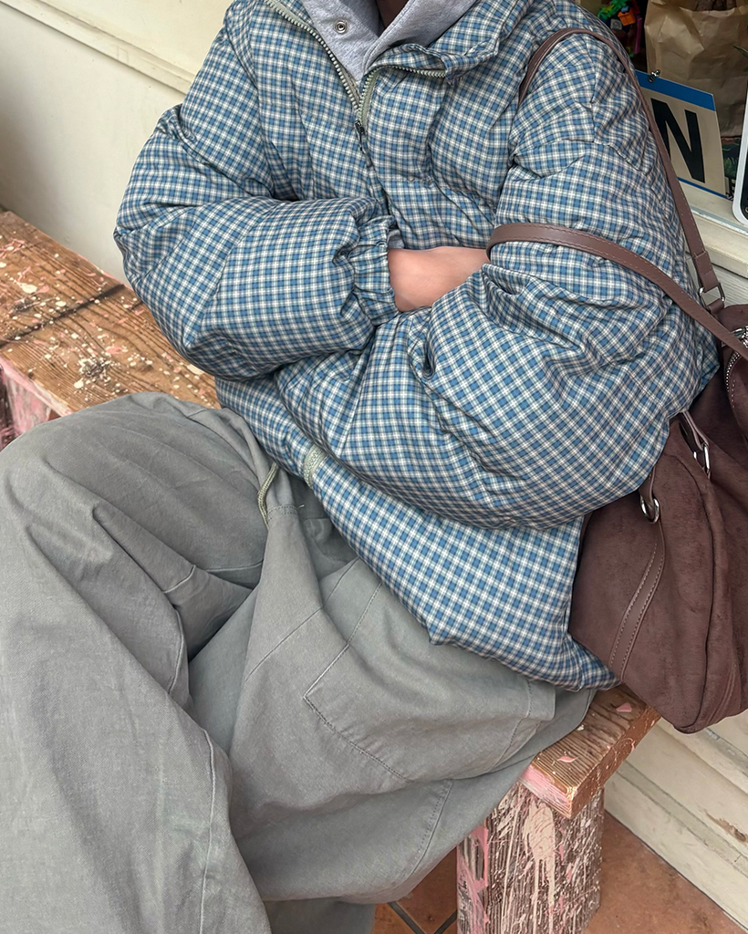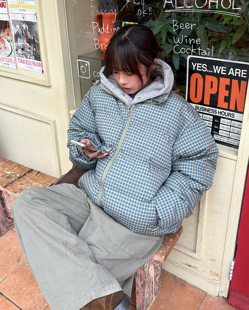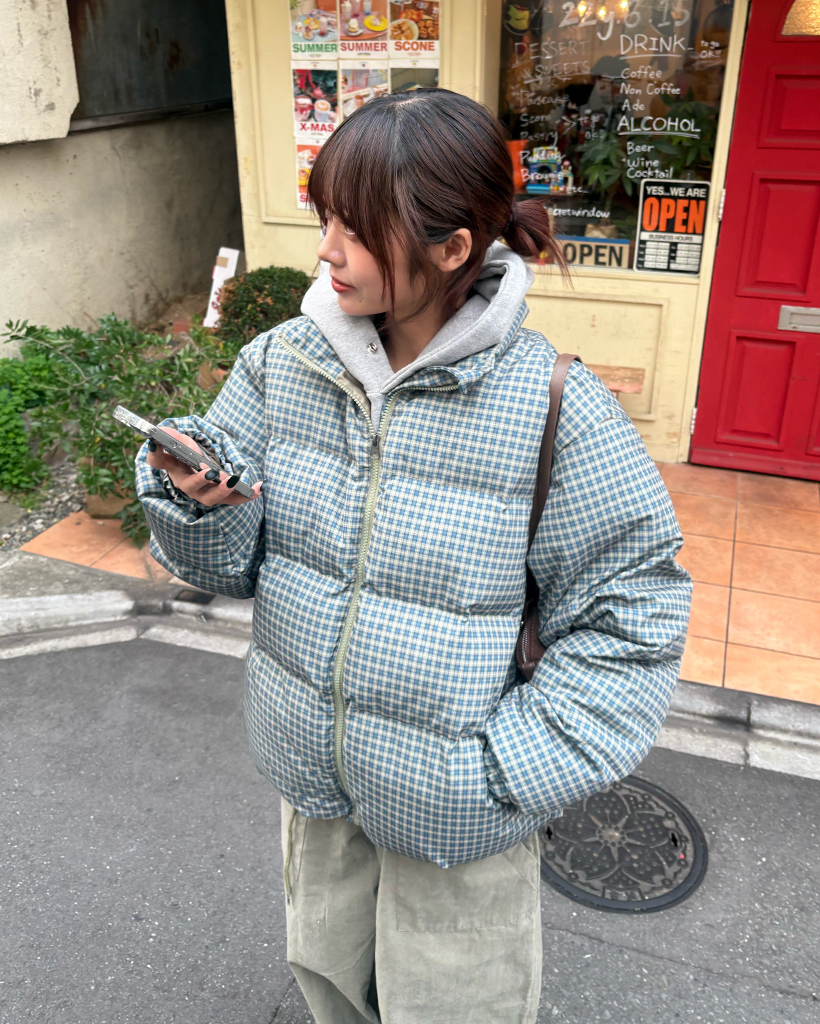 (ユニセックス)ミニターターンチェックスタンドネックダウンジャケット