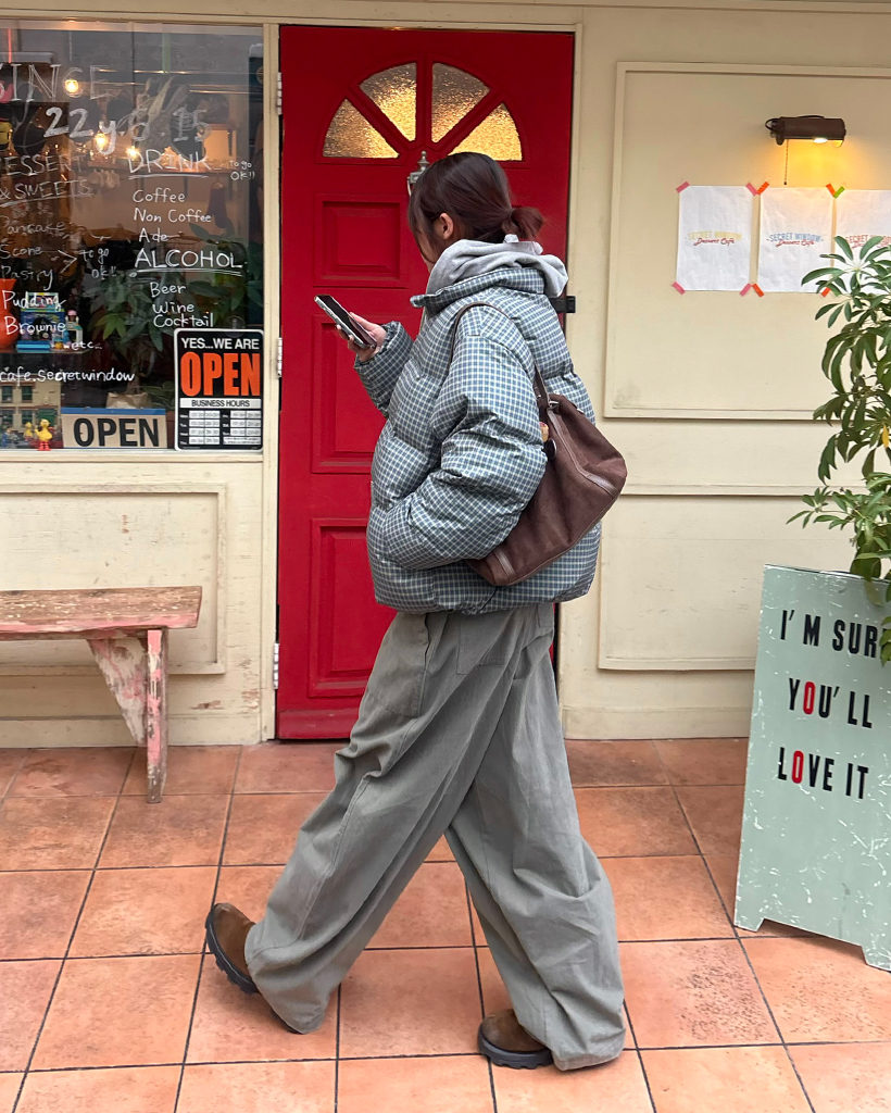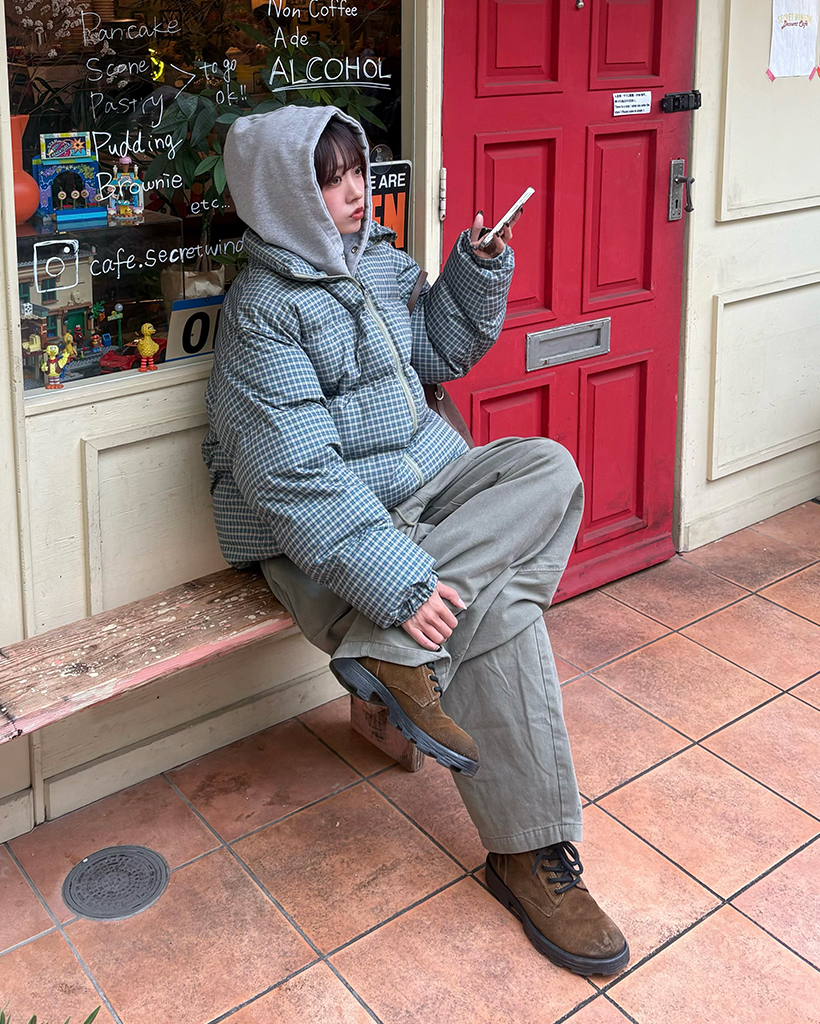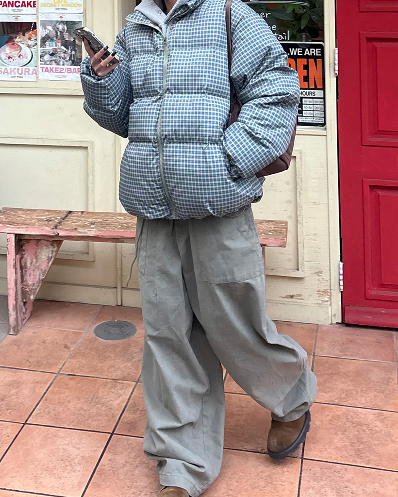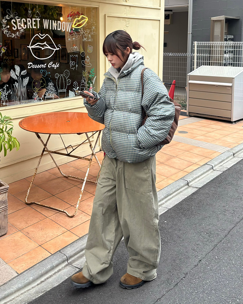 (ユニセックス)ミニターターンチェックスタンドネックダウンジャケット