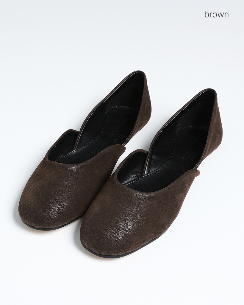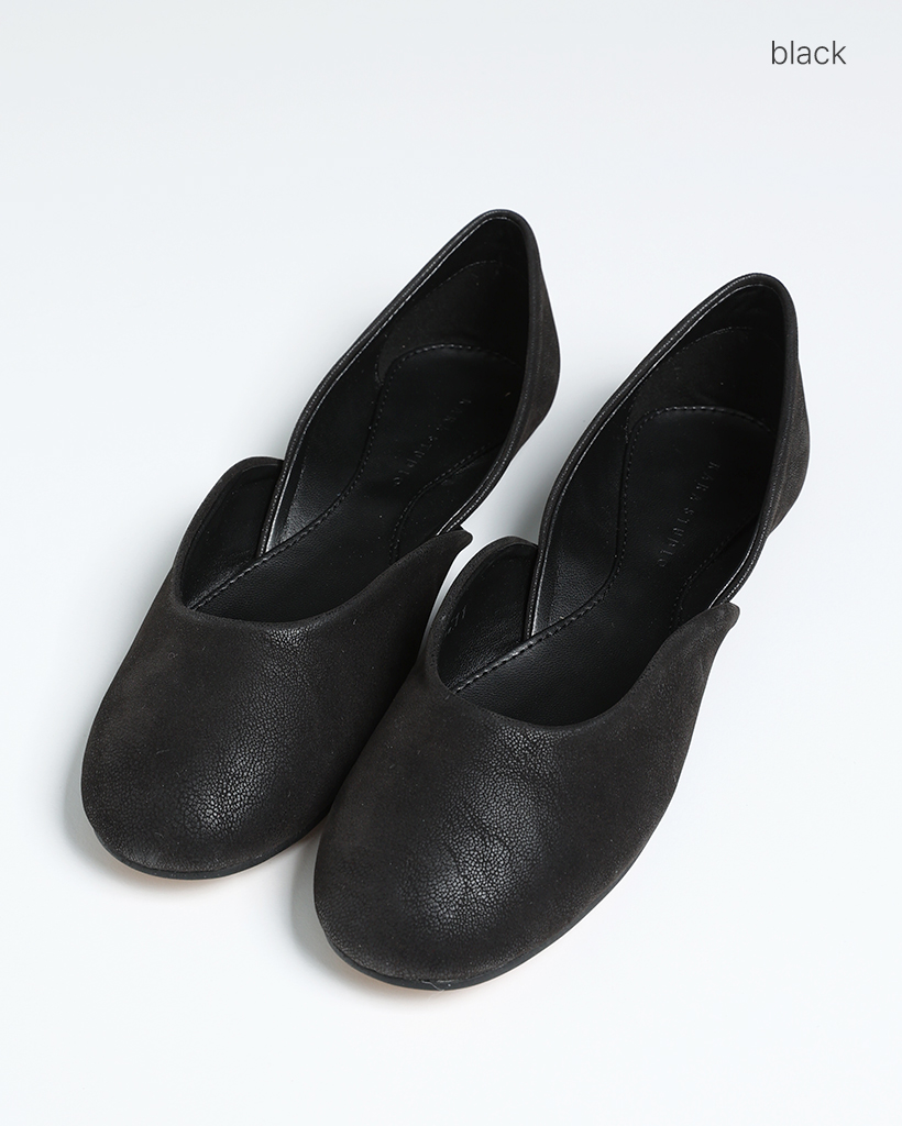 Vカットレザーフラットシューズ