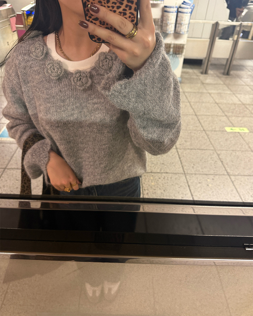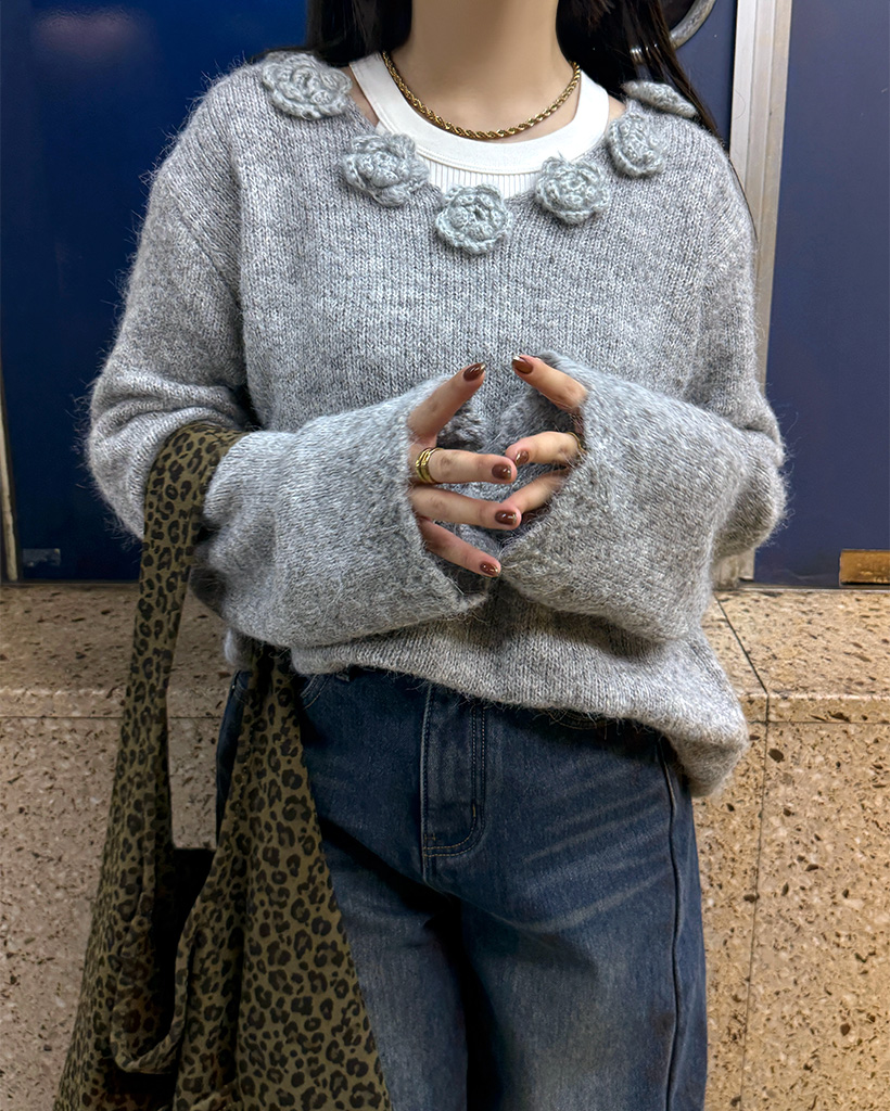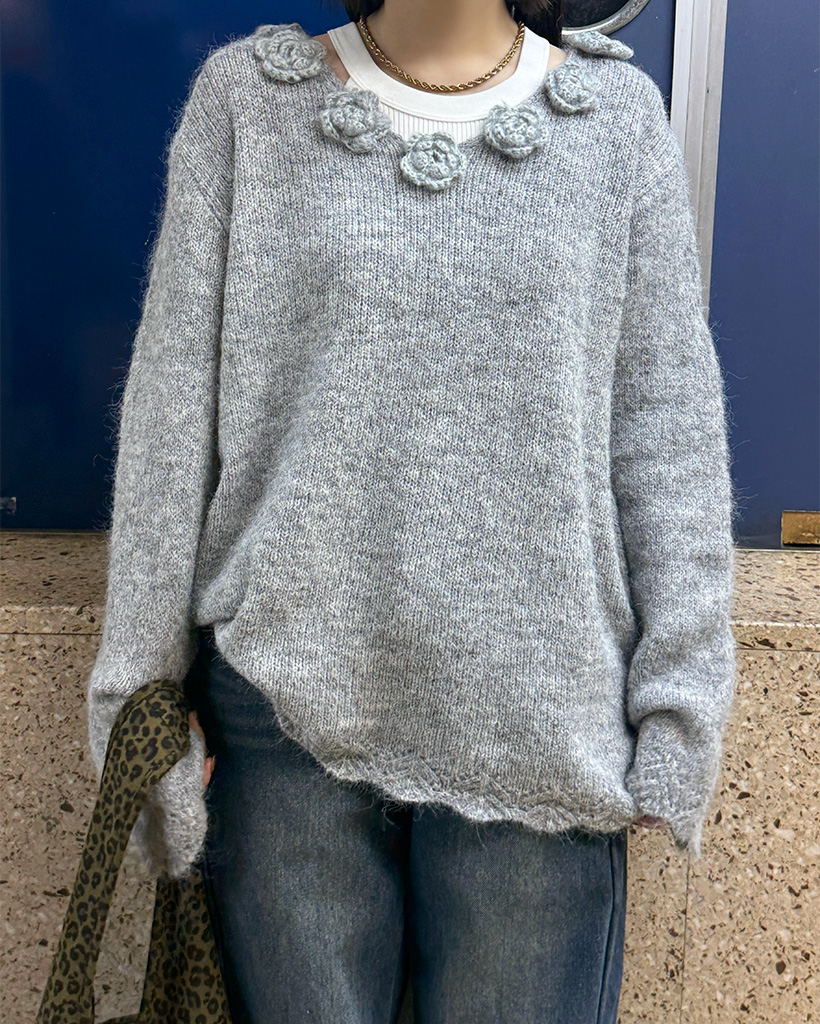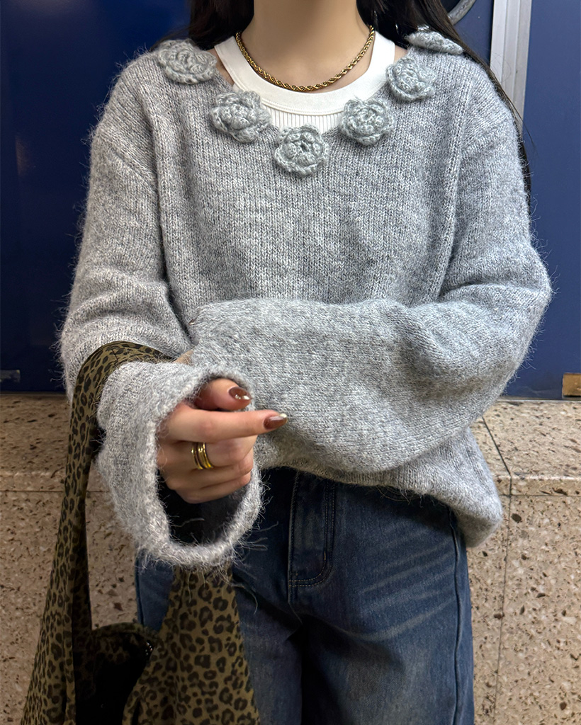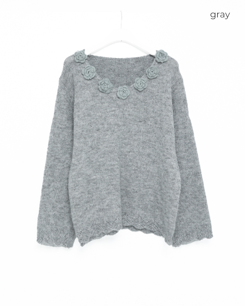 フラワーネックニット