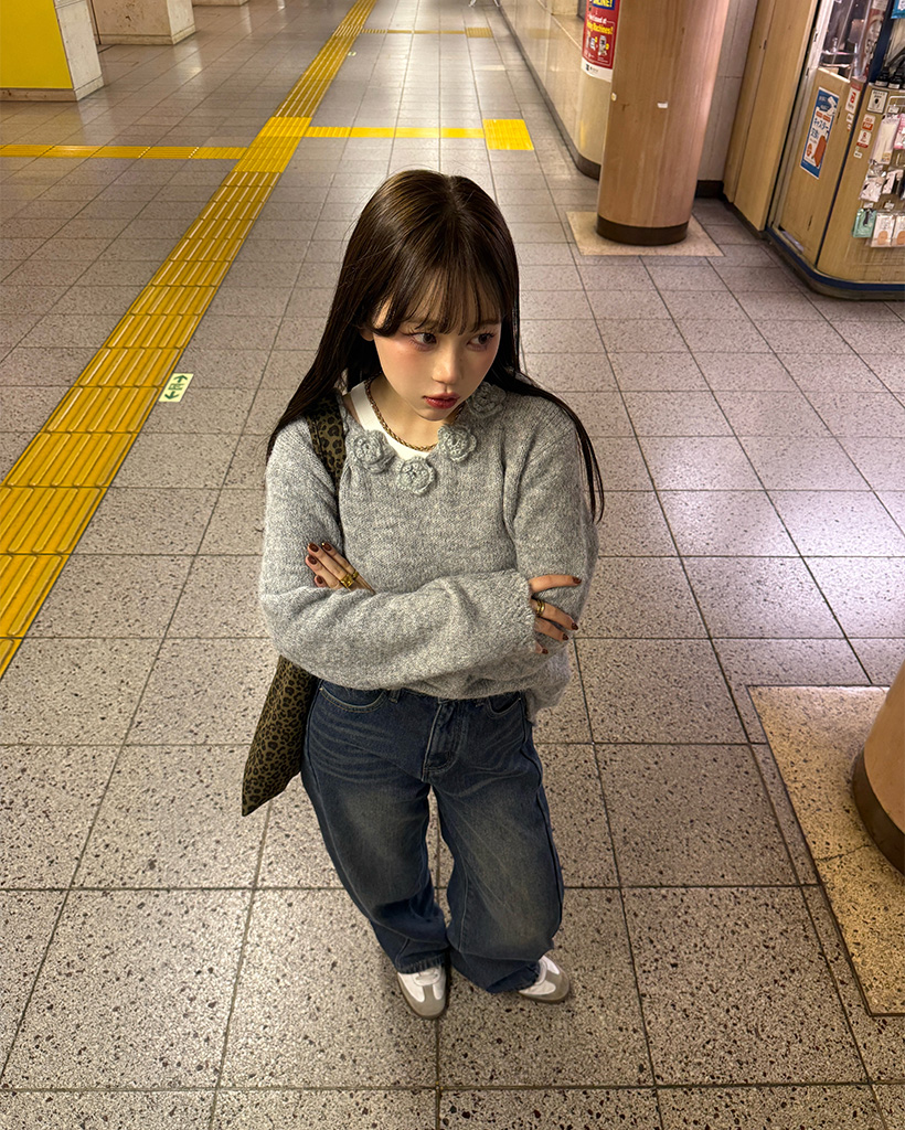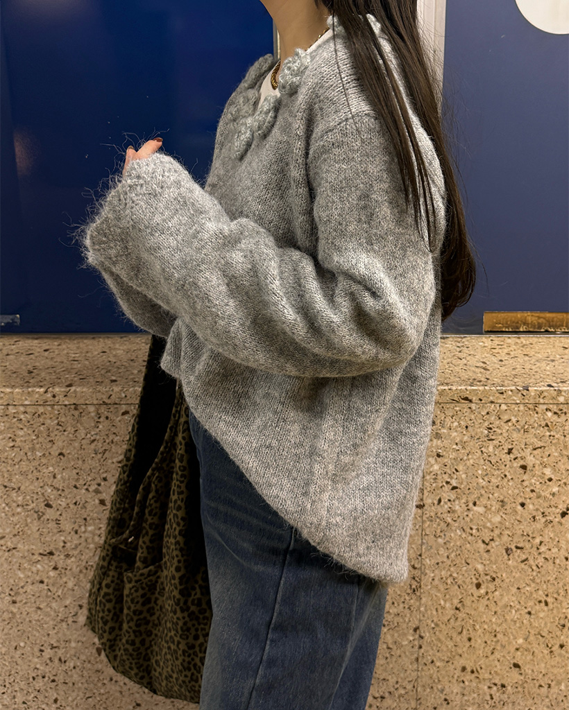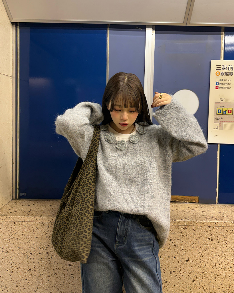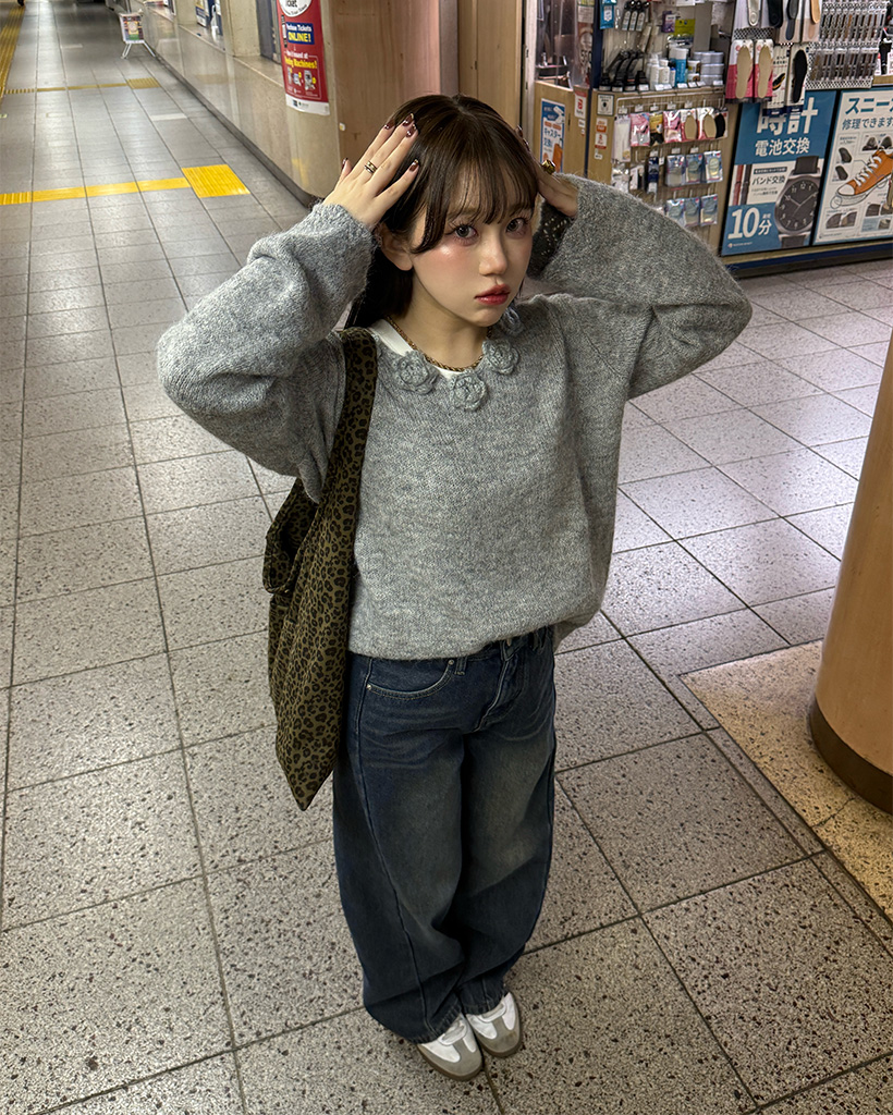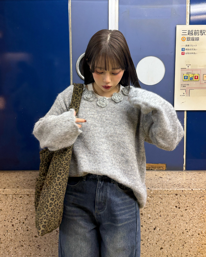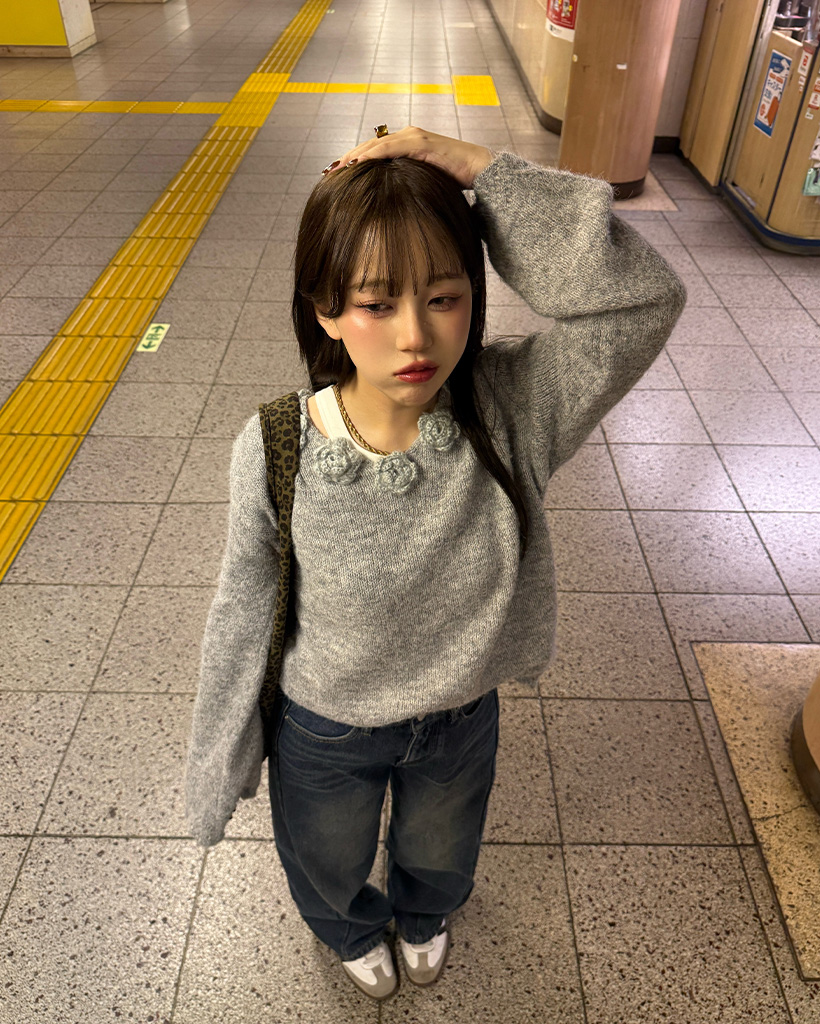 フラワーネックニット