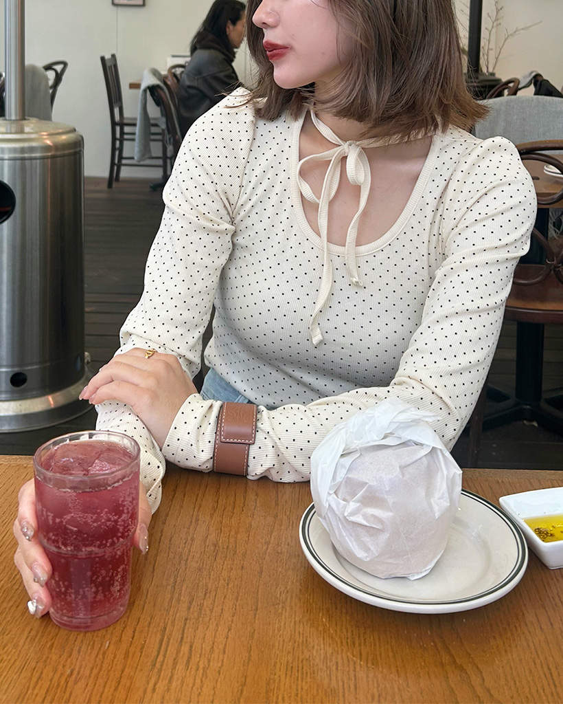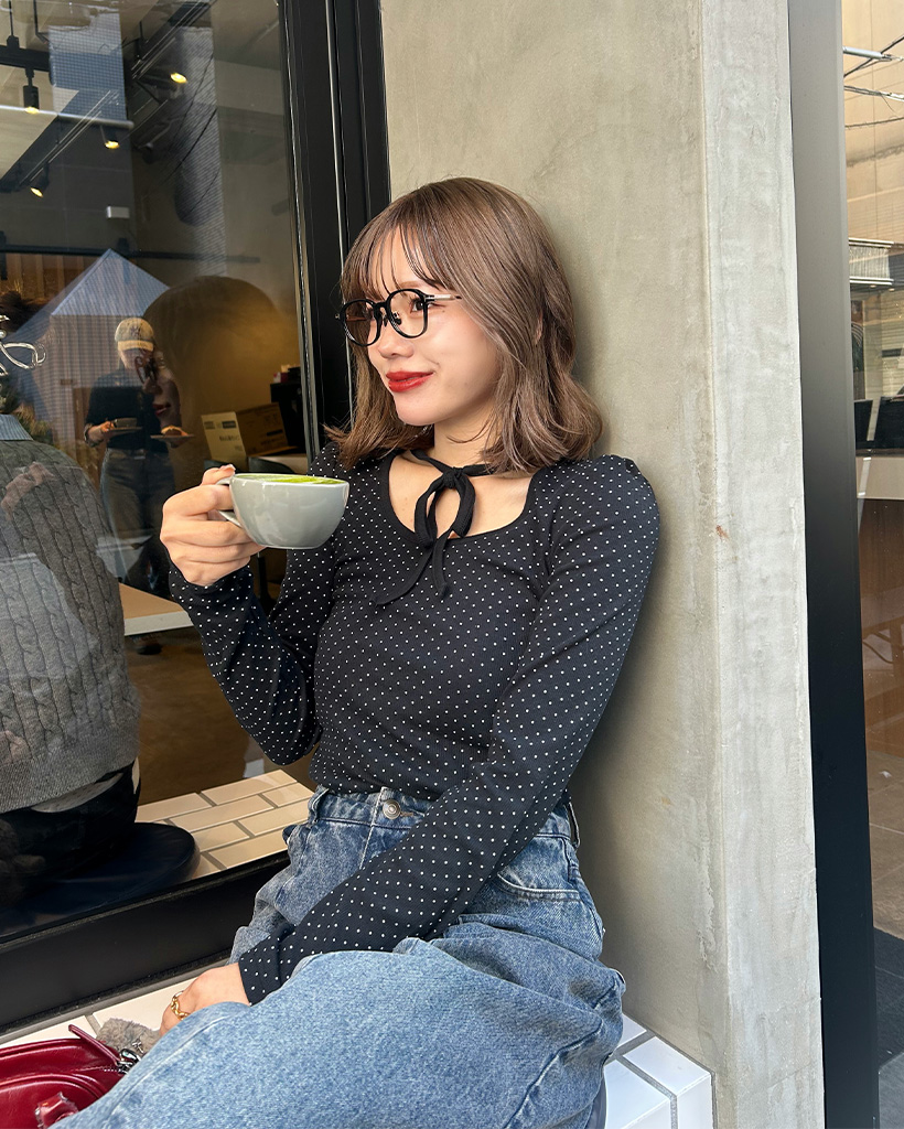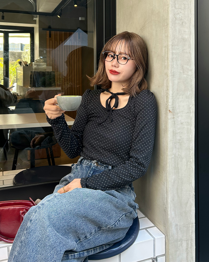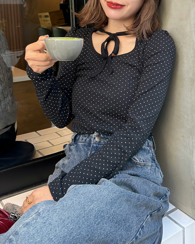 ドットタイUネックTシャツ