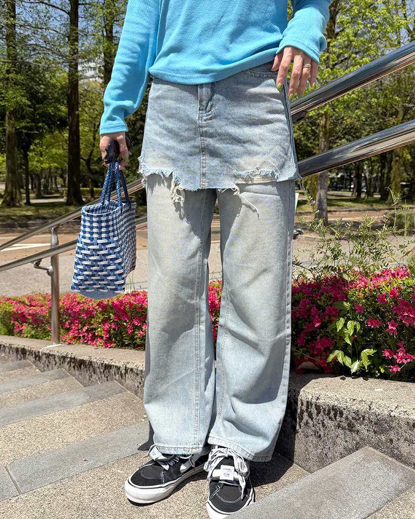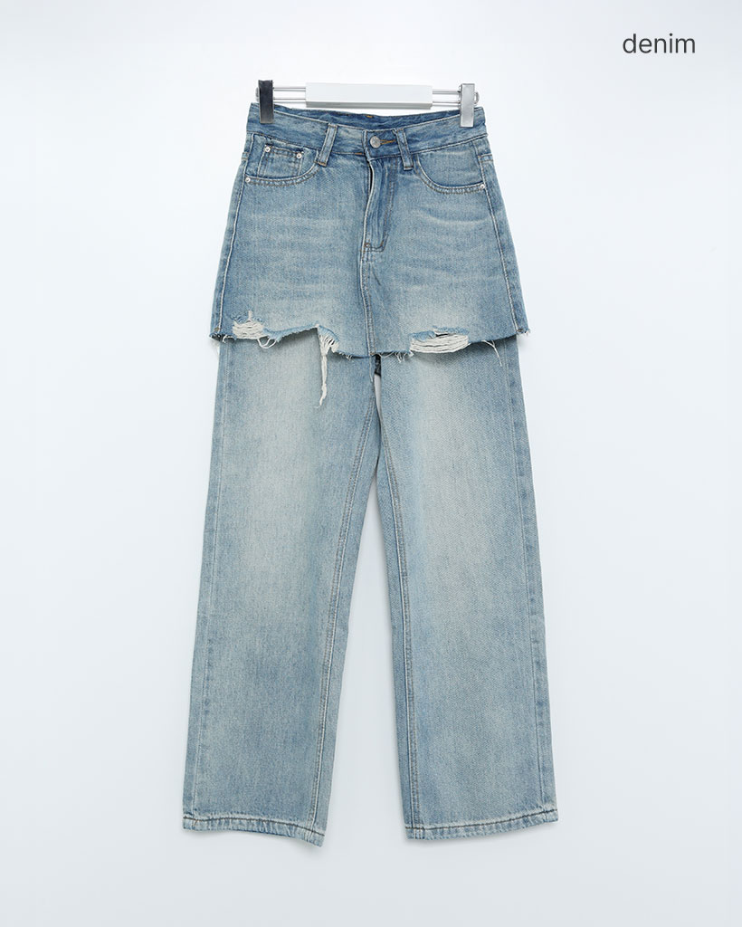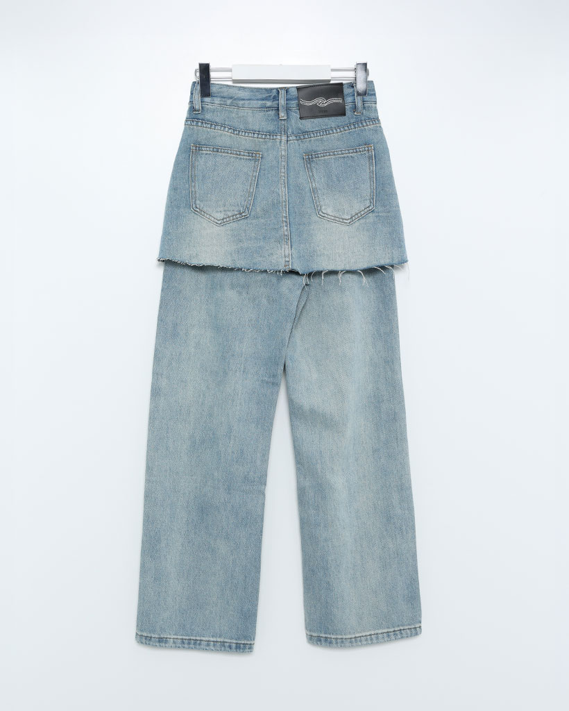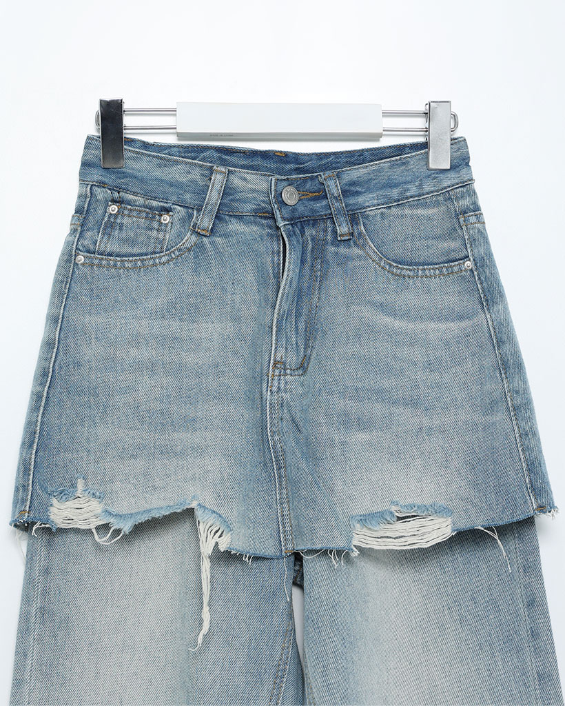 カットオフミニスカートレイヤードデニムパンツ