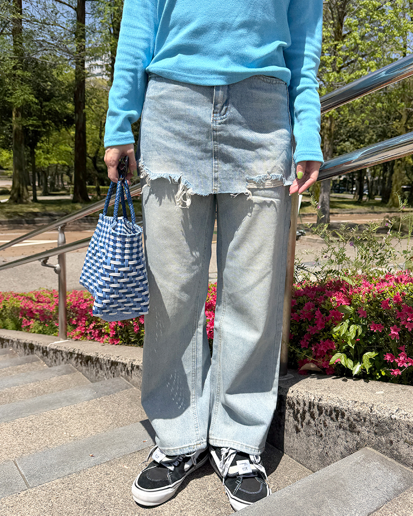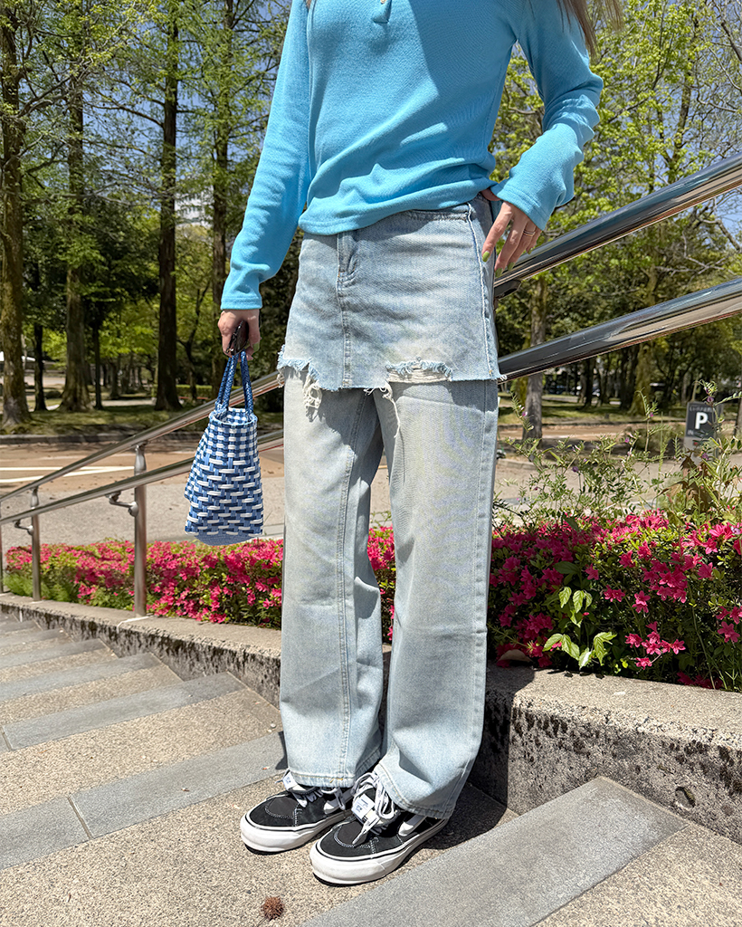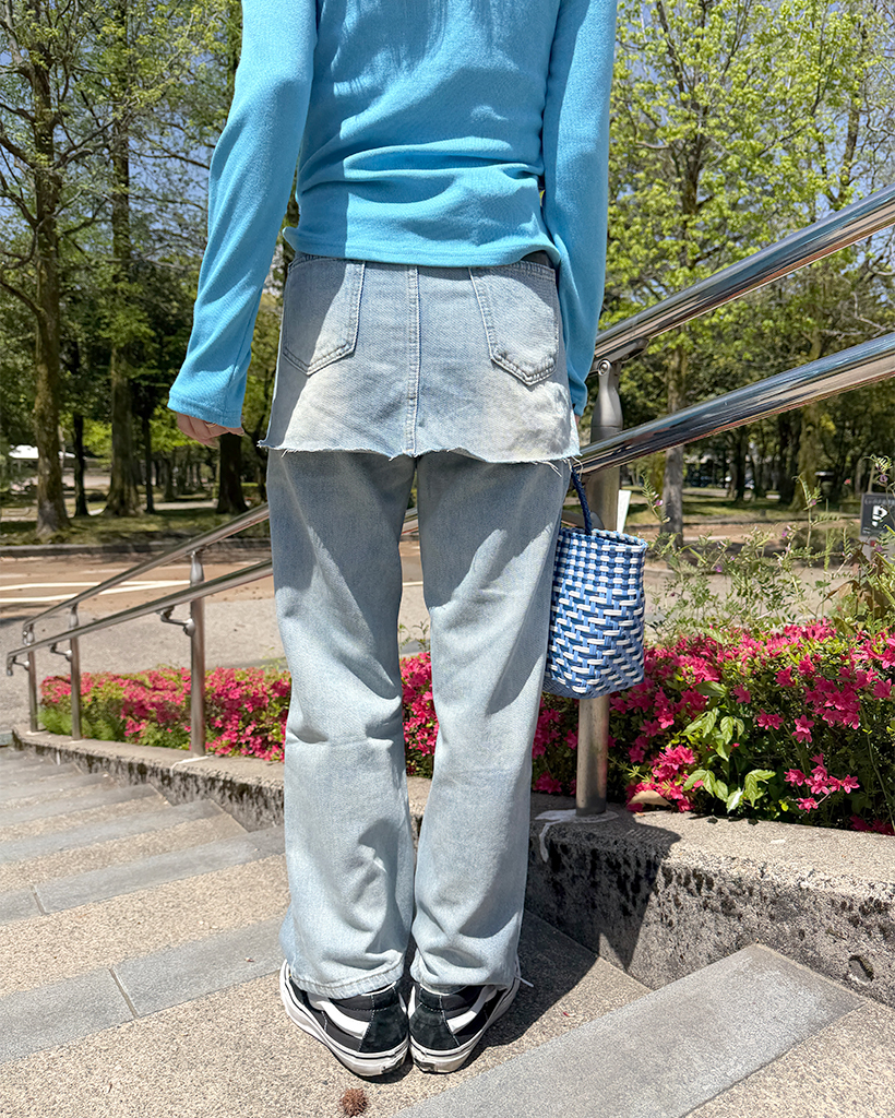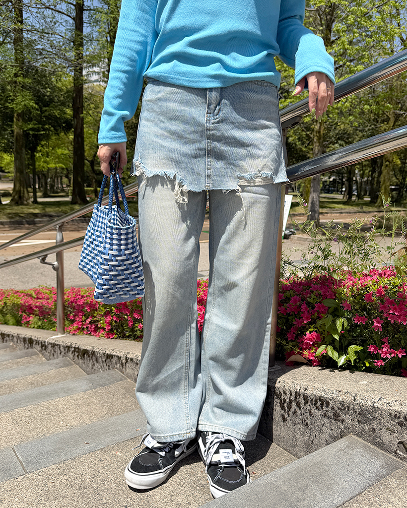 カットオフミニスカートレイヤードデニムパンツ