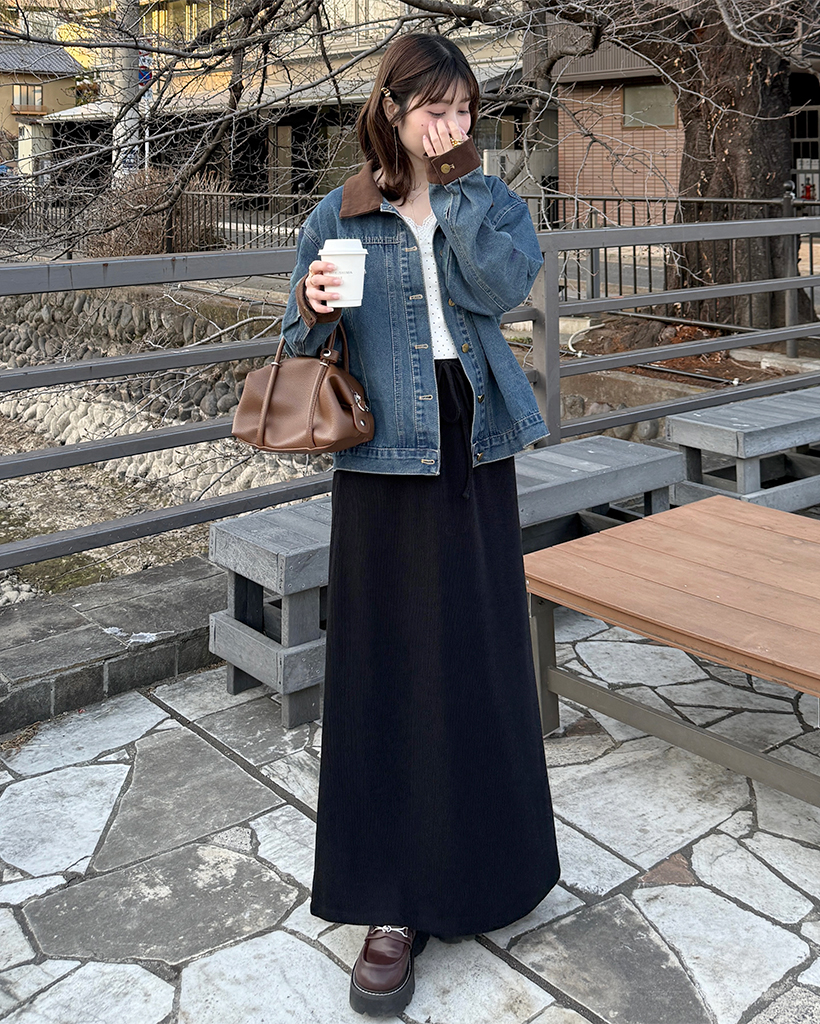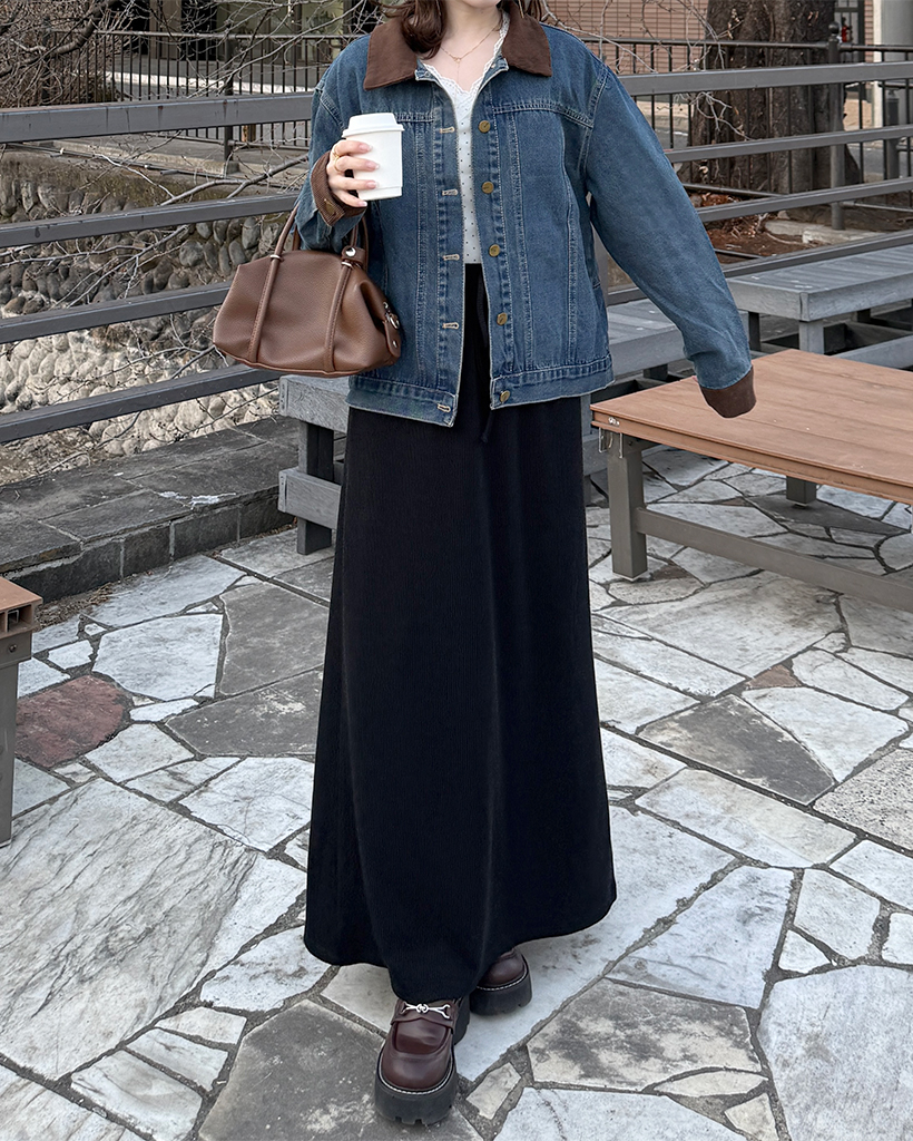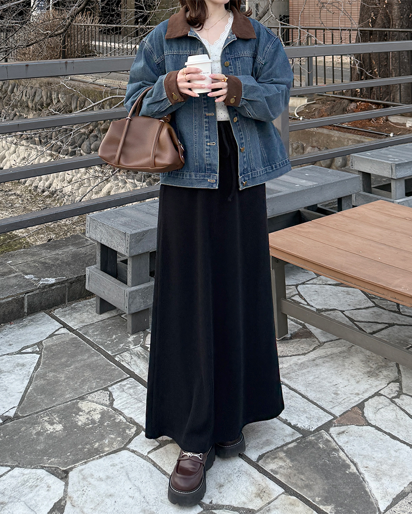 Aラインリブロングスカート