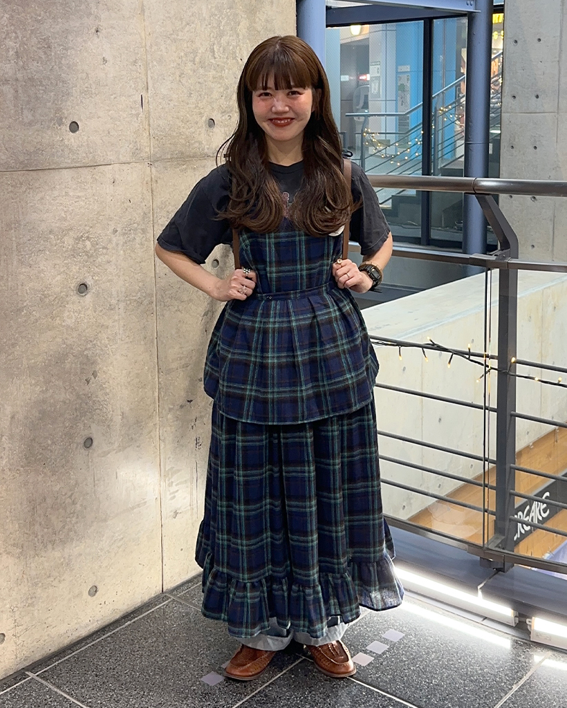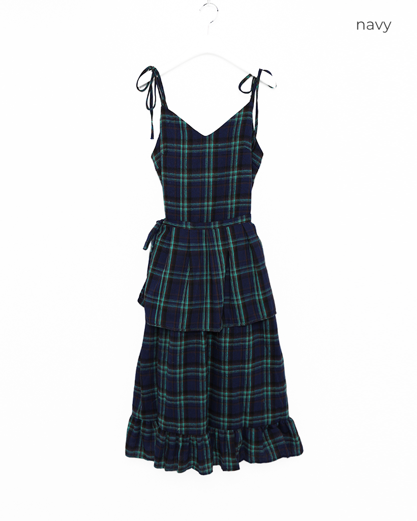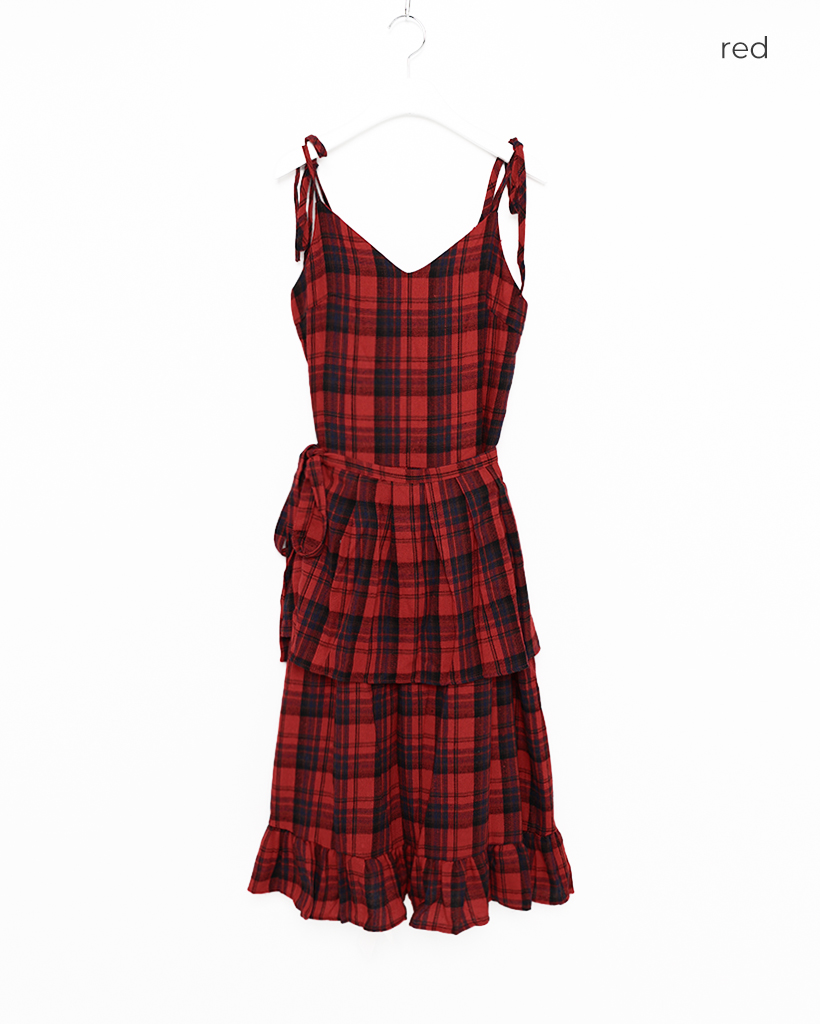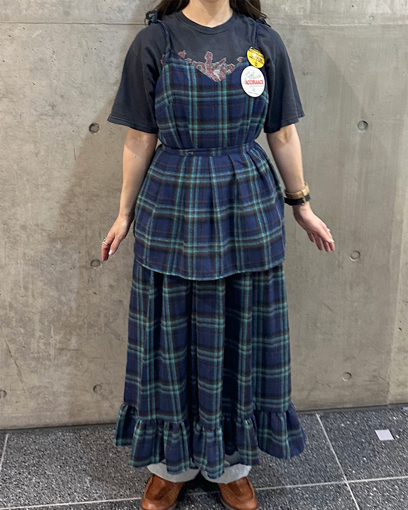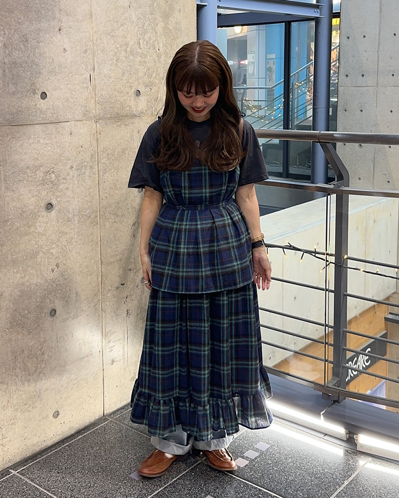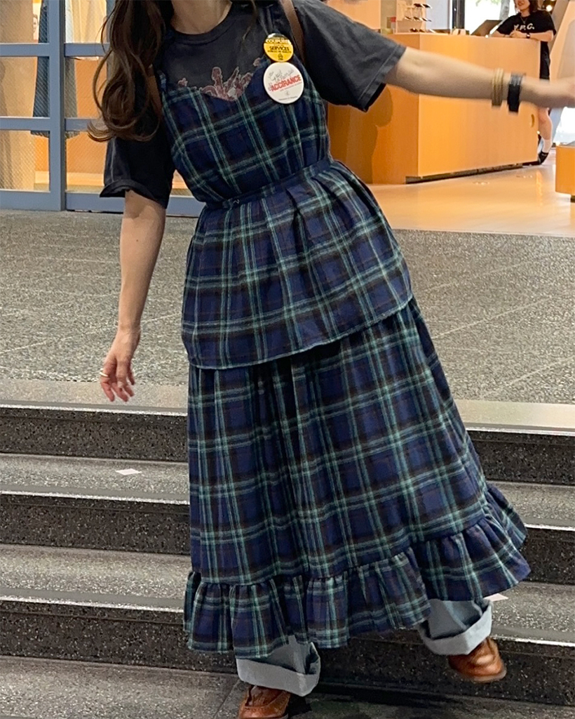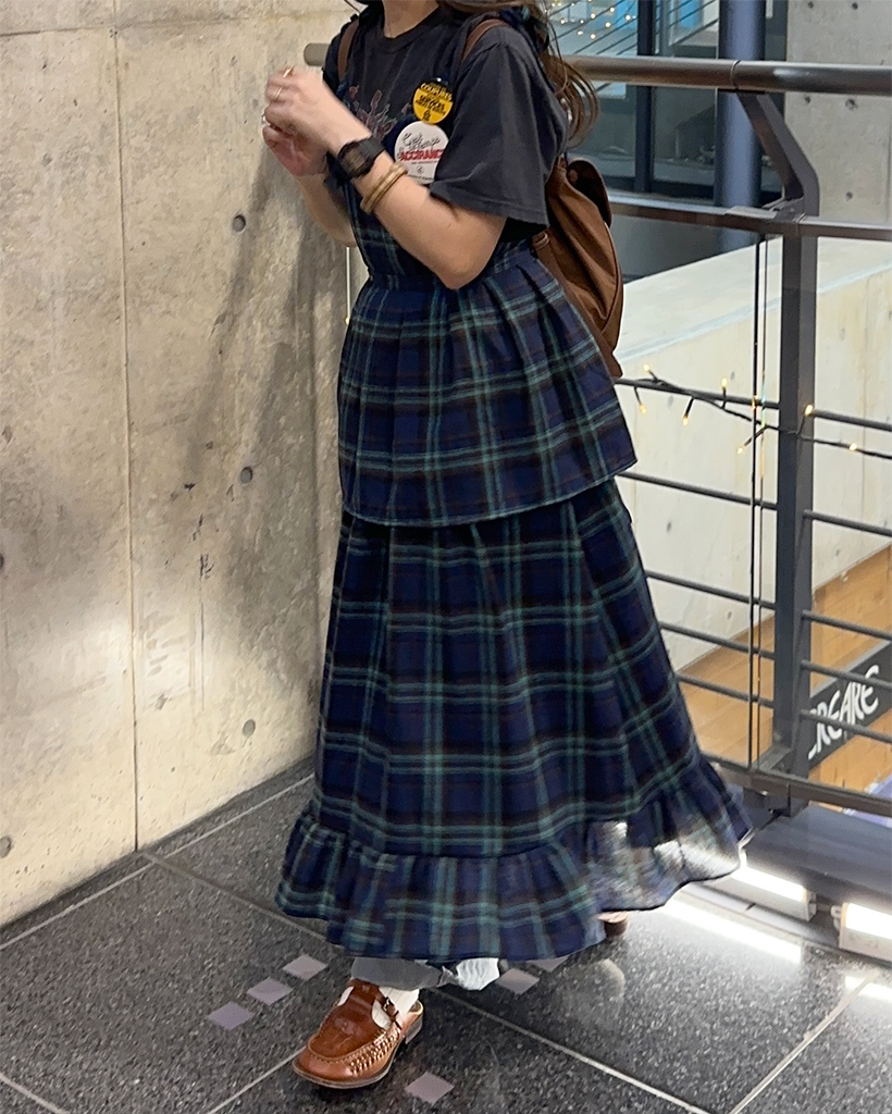 タータンチェックレイヤードワンピース