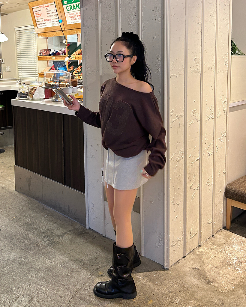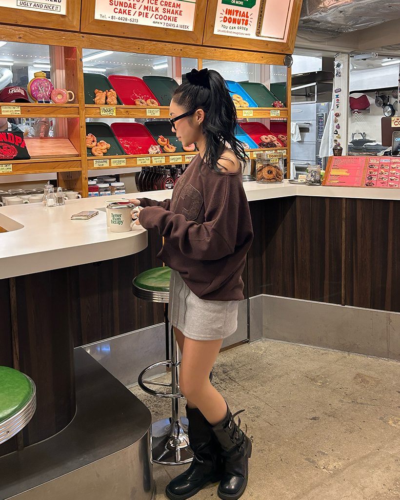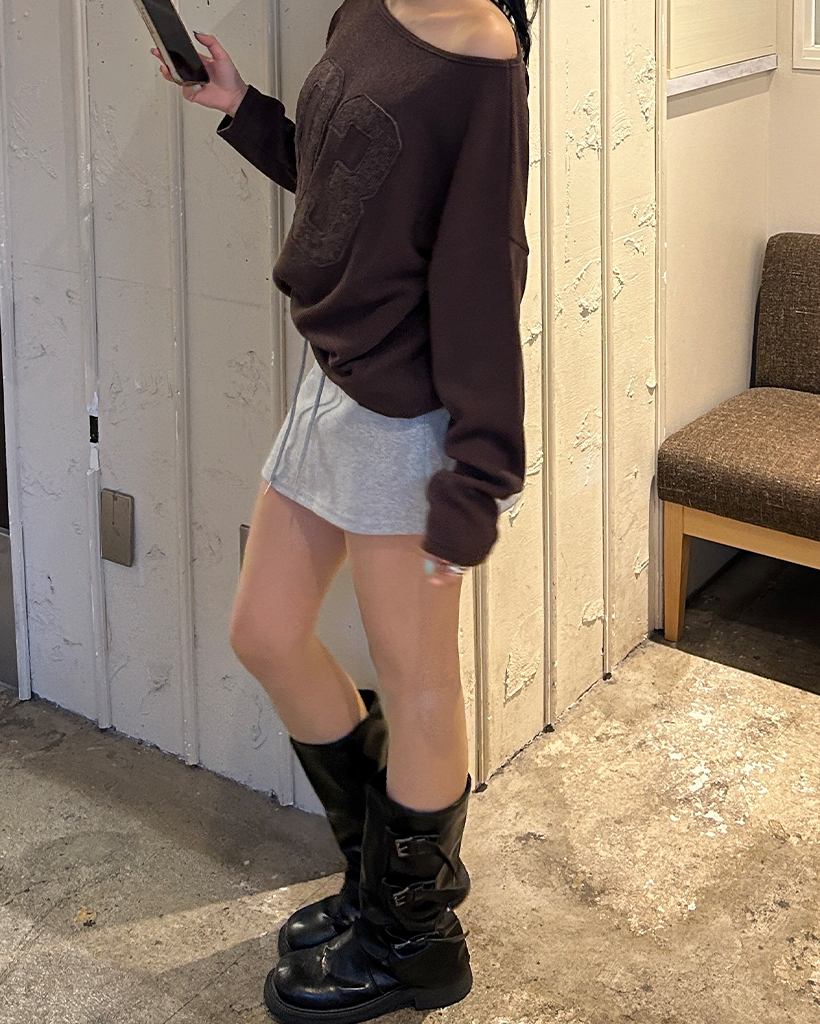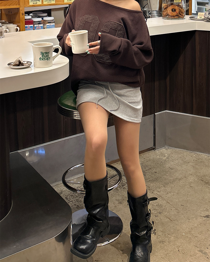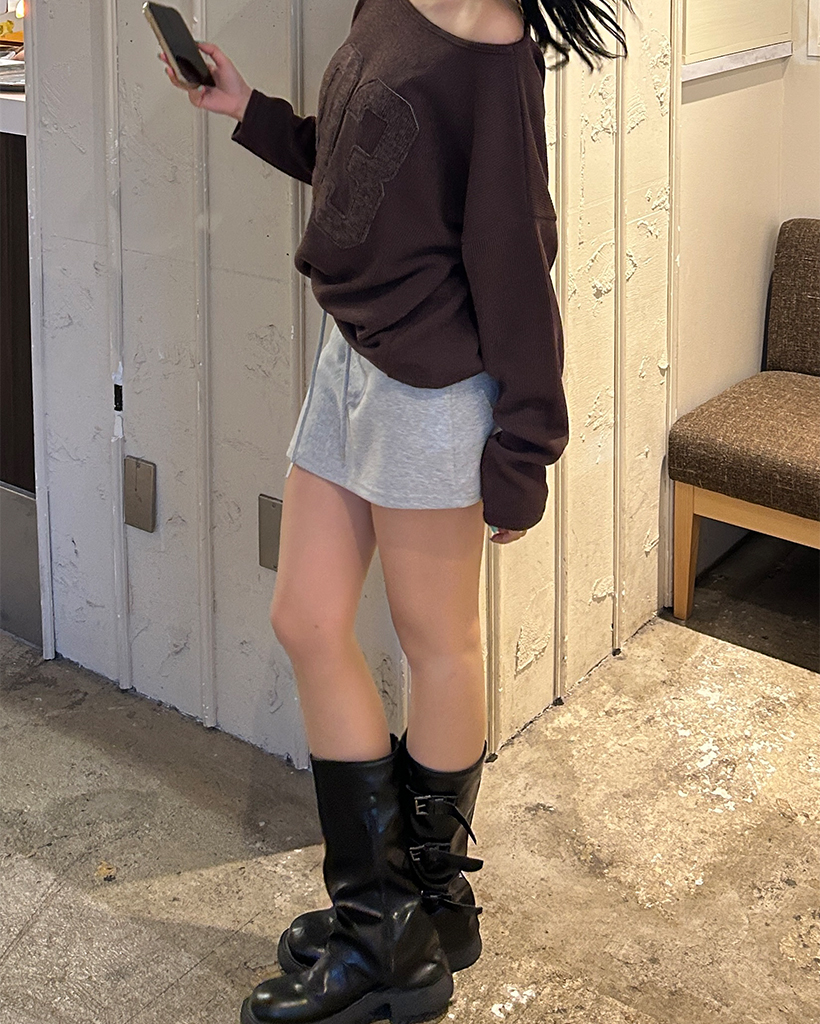 ワイドウエストリブスウェットベリーミニスカート