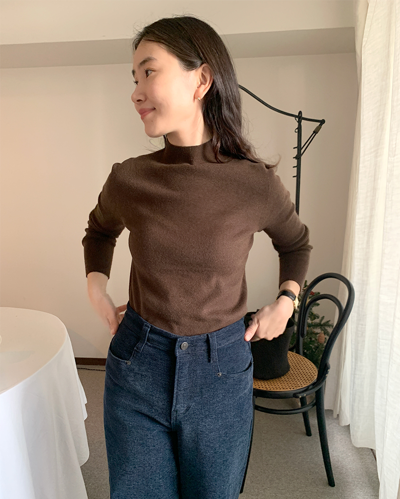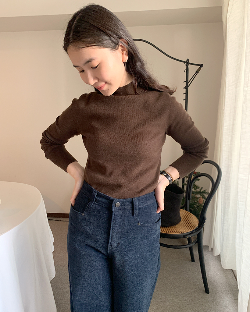 ブラッシーリブニットタートルネック
