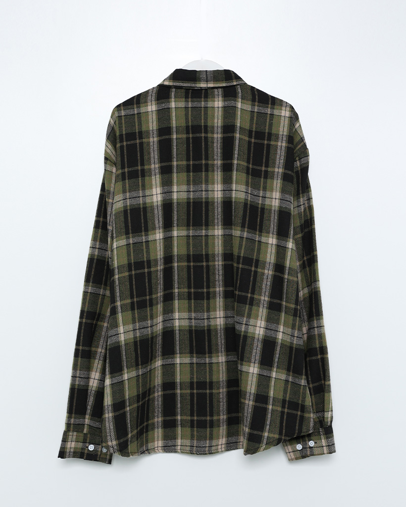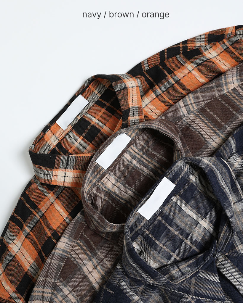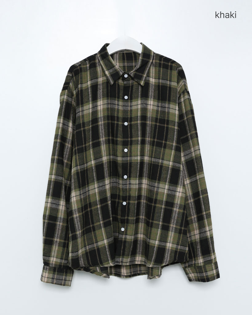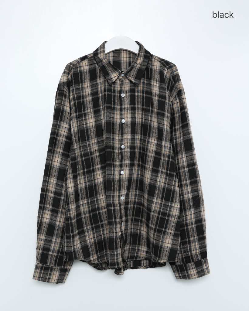 (ユニセックス)ヴィンテージチェックコットンシャツ