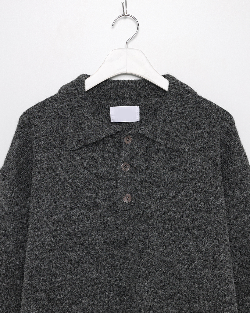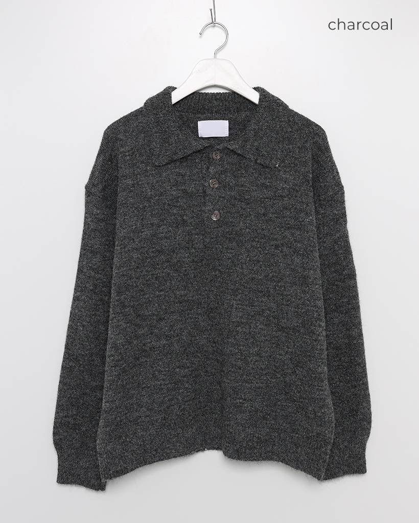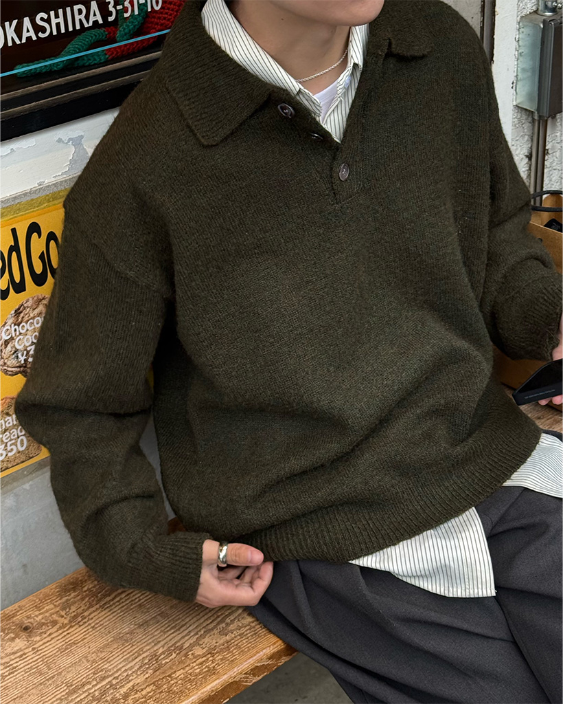 (ユニセックス) ボタンブークレカラーニット