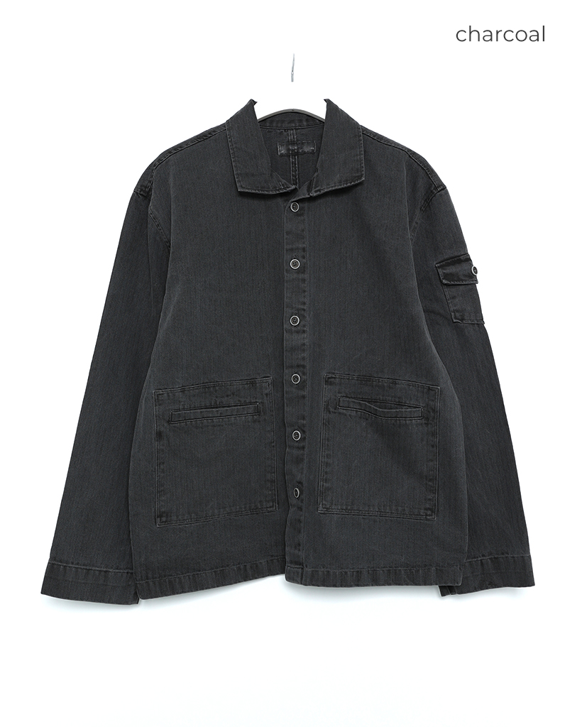 (ユニセックス)ウォッシュポケットディテールシャツジャケット