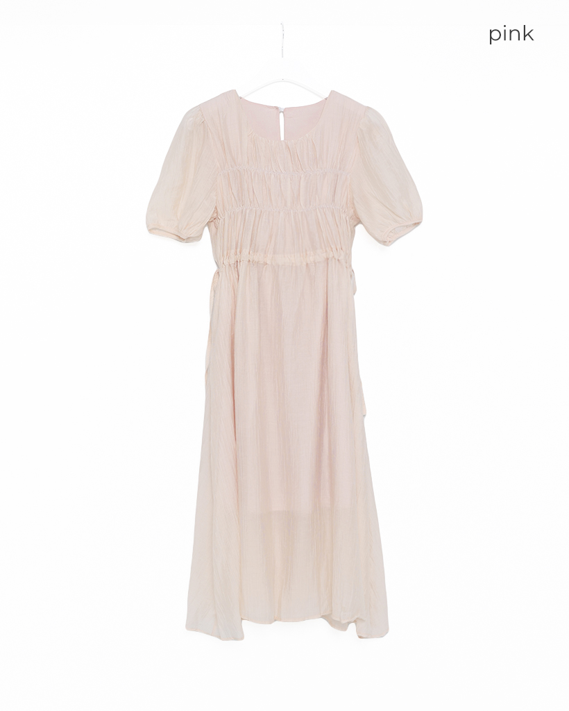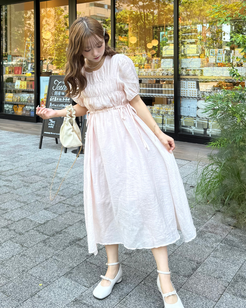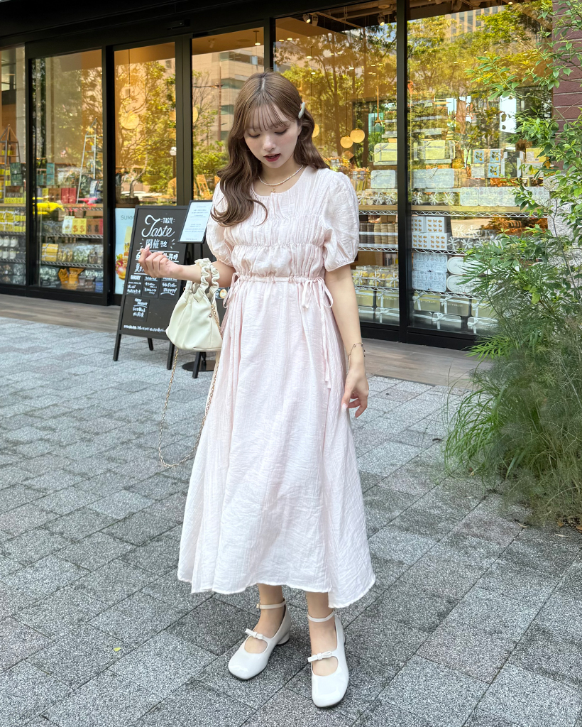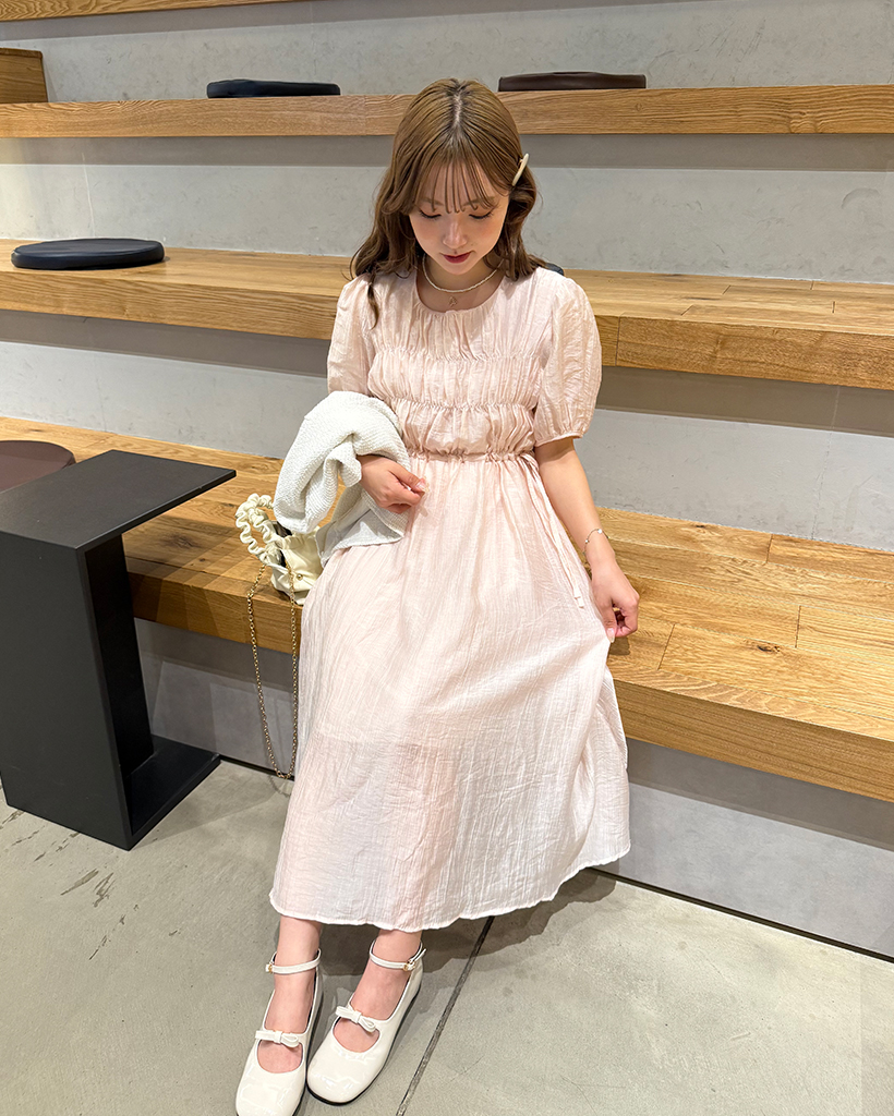 フロントギャザーウエストリボンロングワンピース