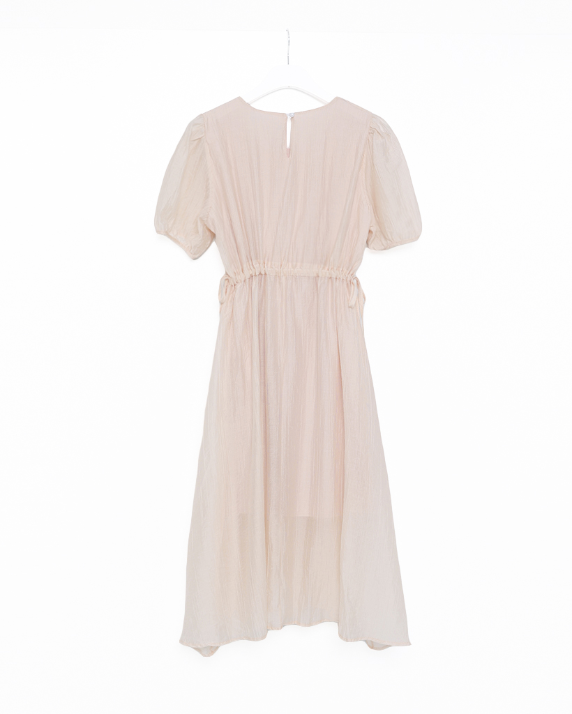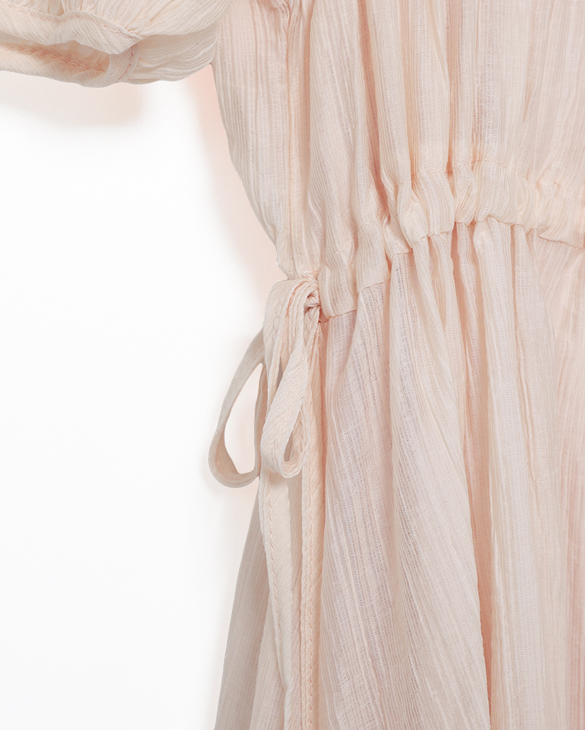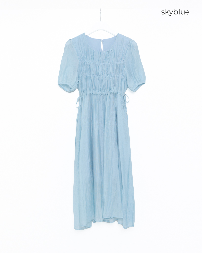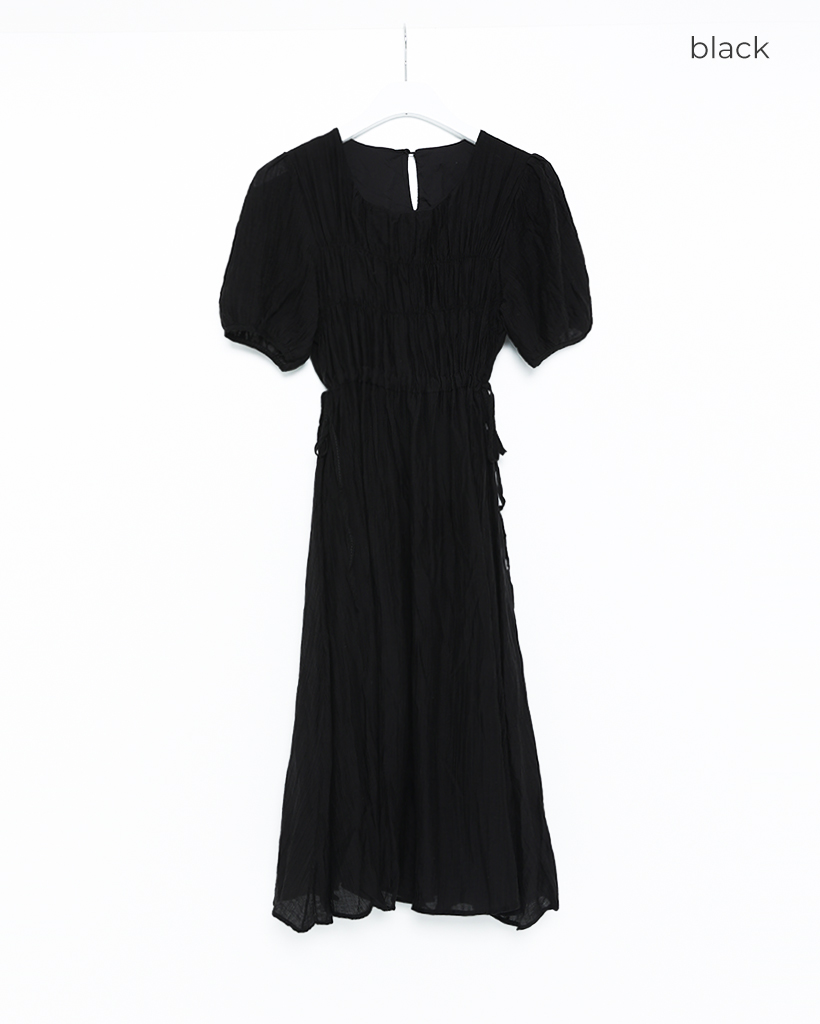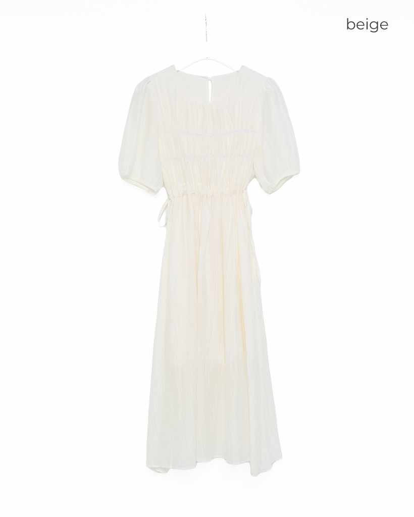 フロントギャザーウエストリボンロングワンピース