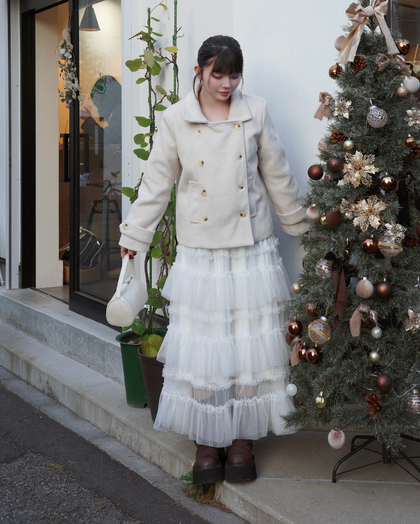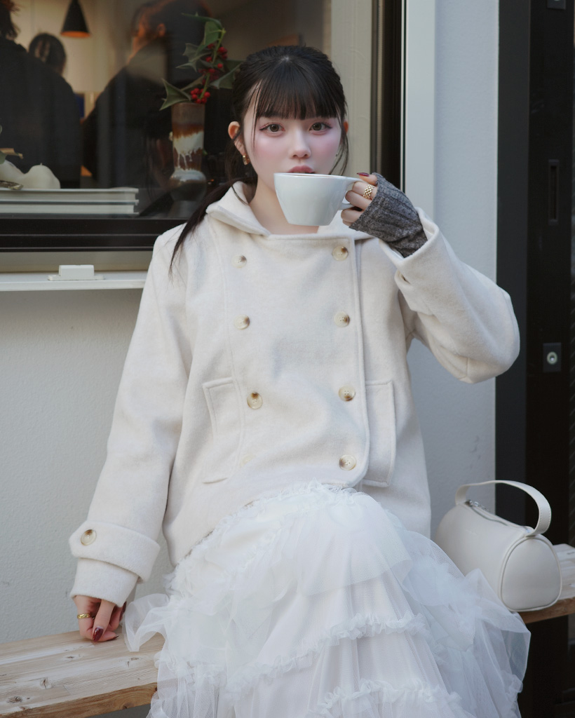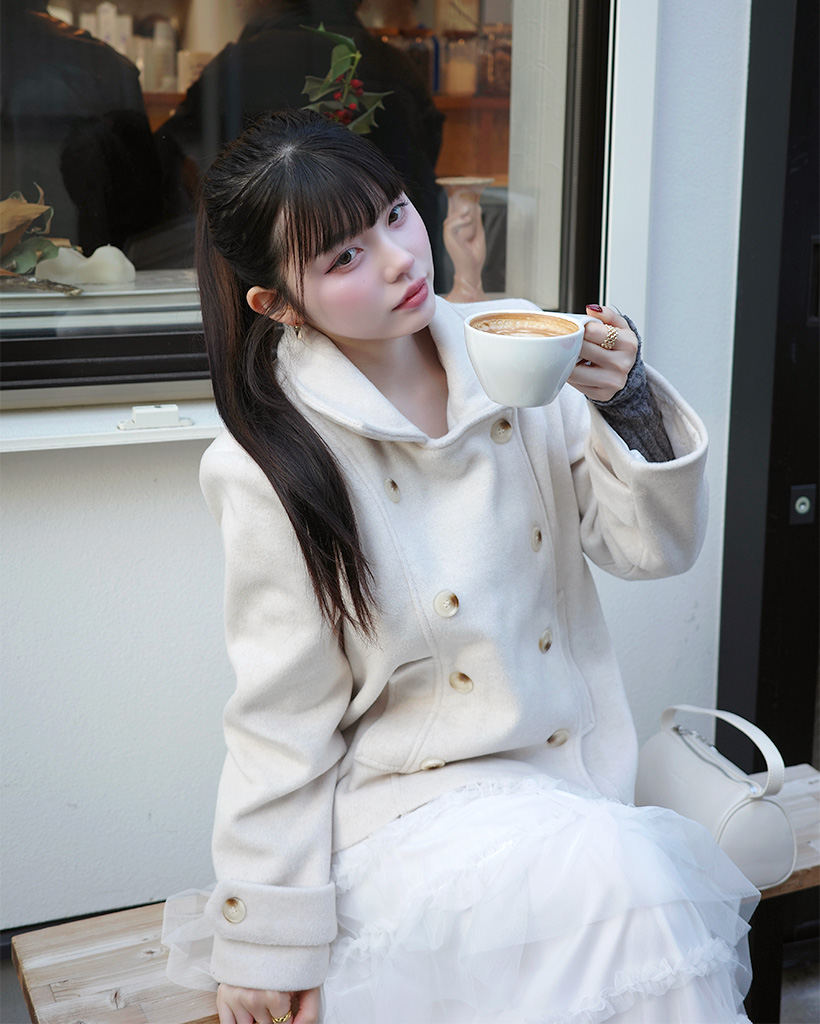 ダブルボタンショートコート