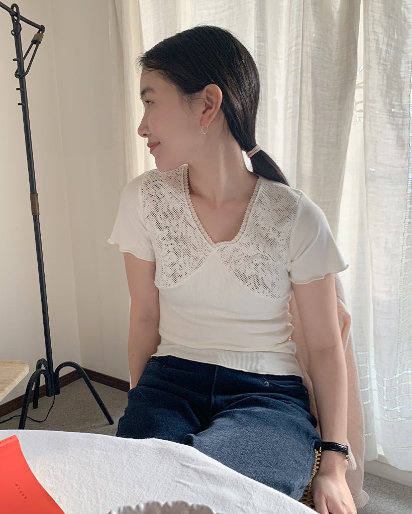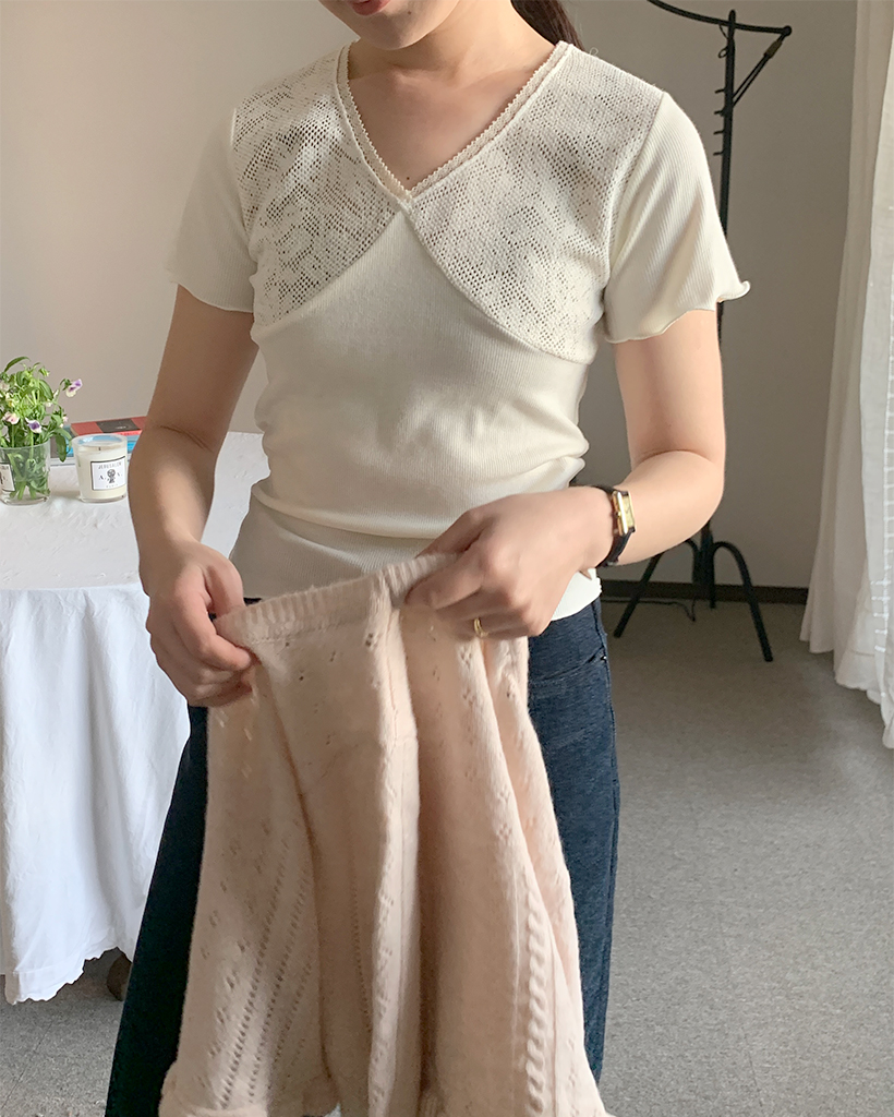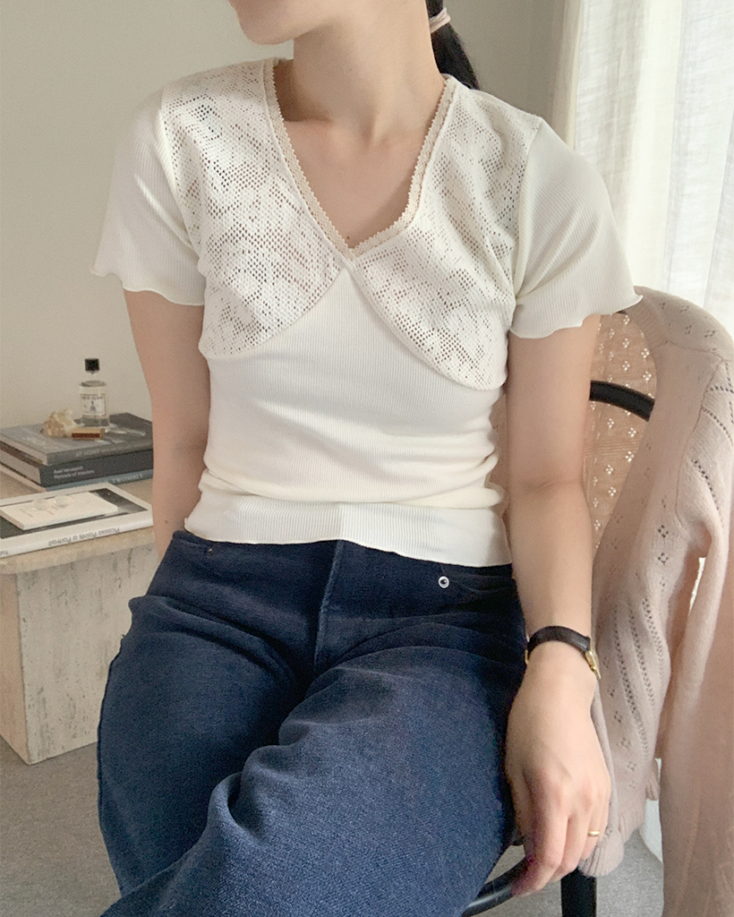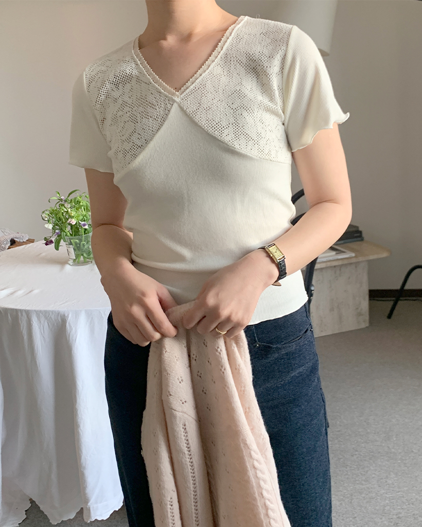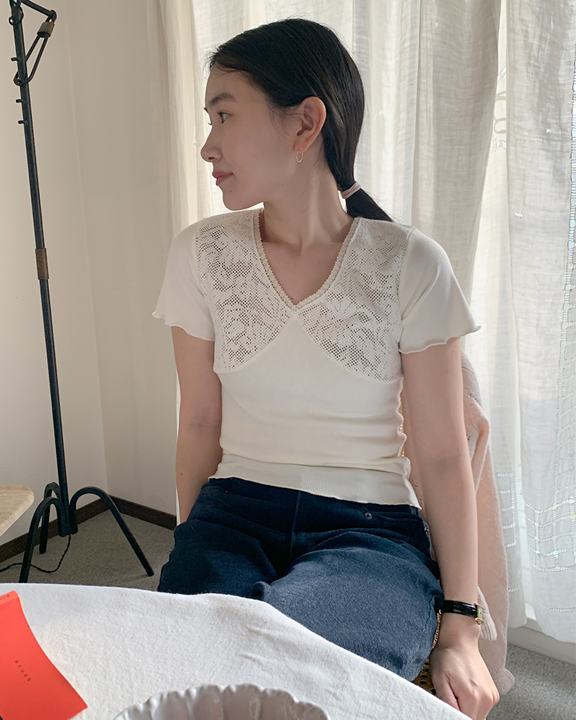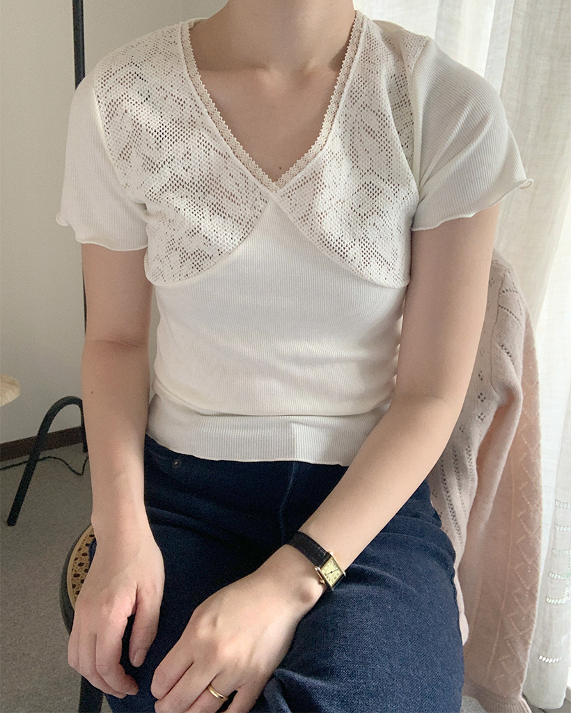ヴィンテージレース半袖ニット