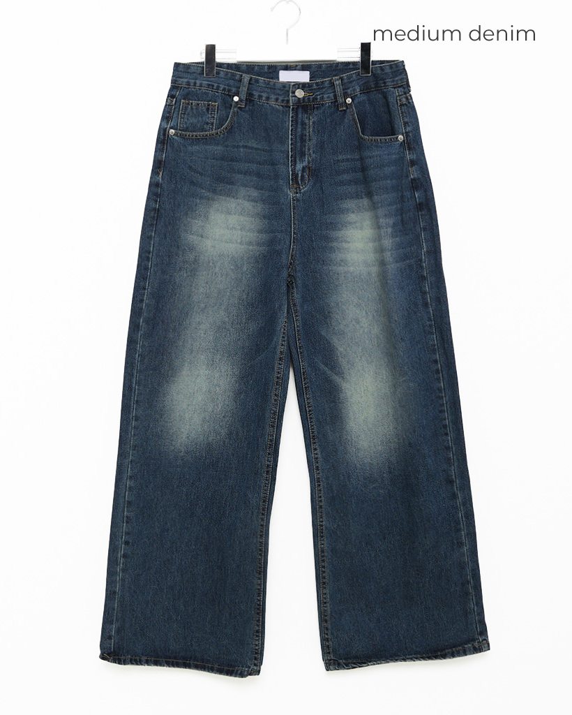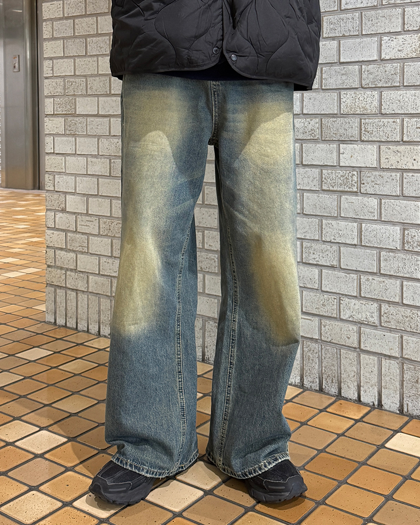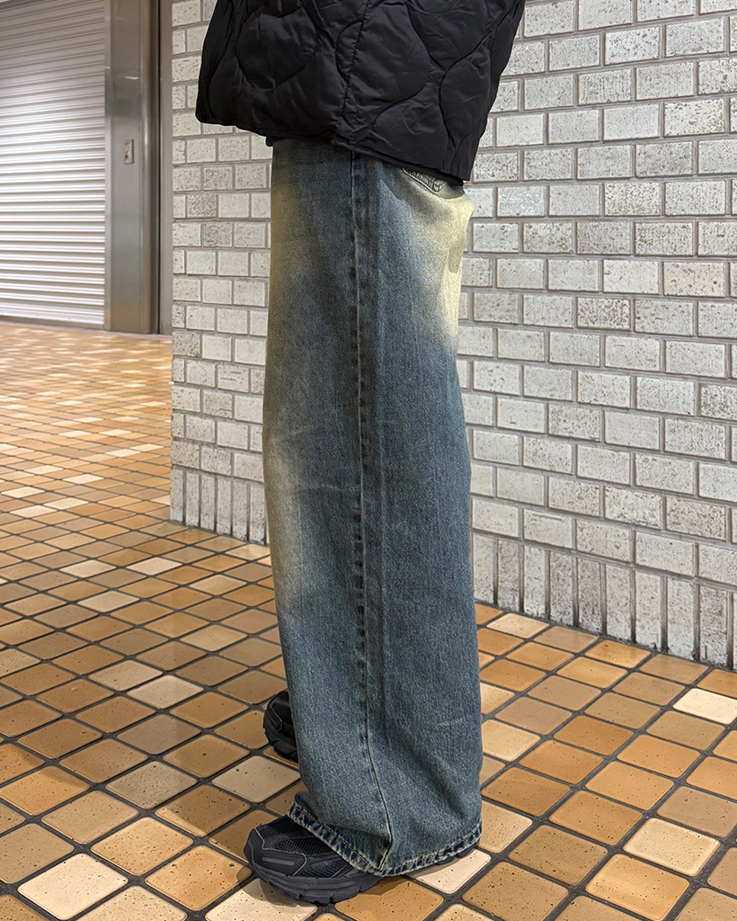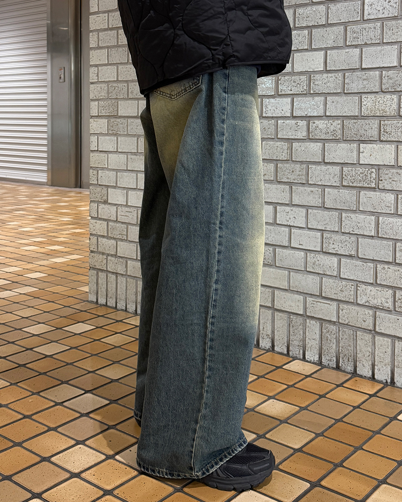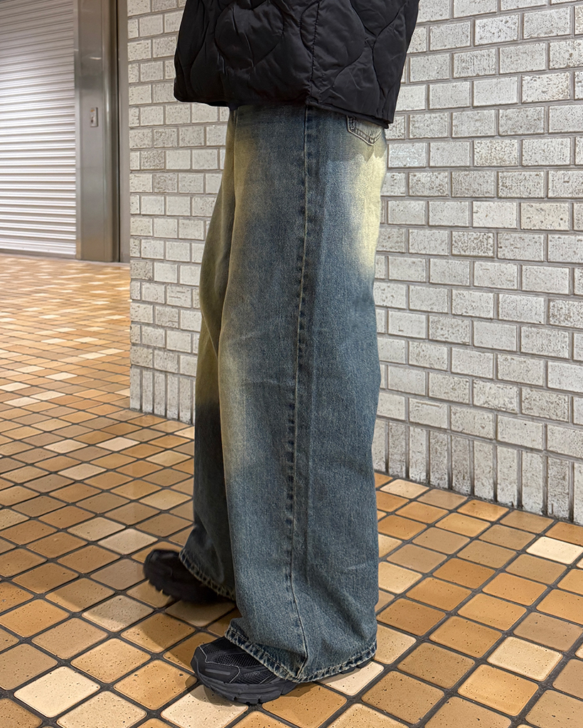 (ユニセックス)グラデヒゲウォッシュワイドジーンズ