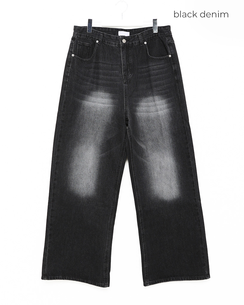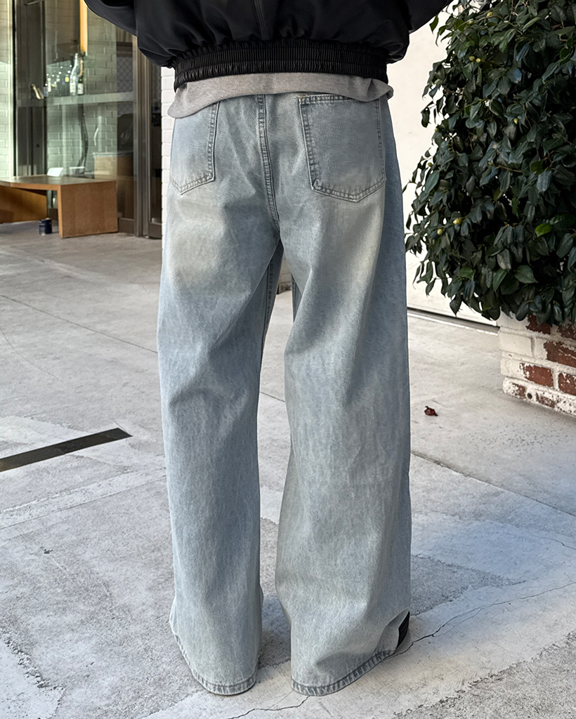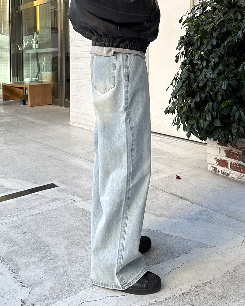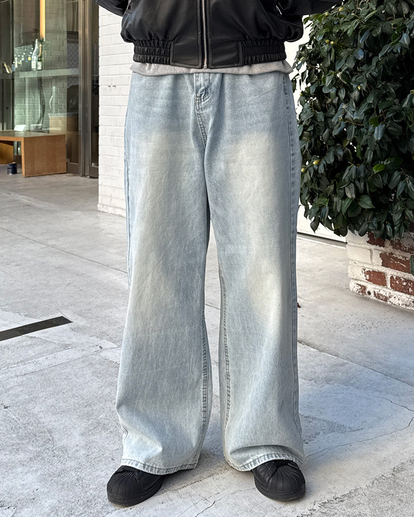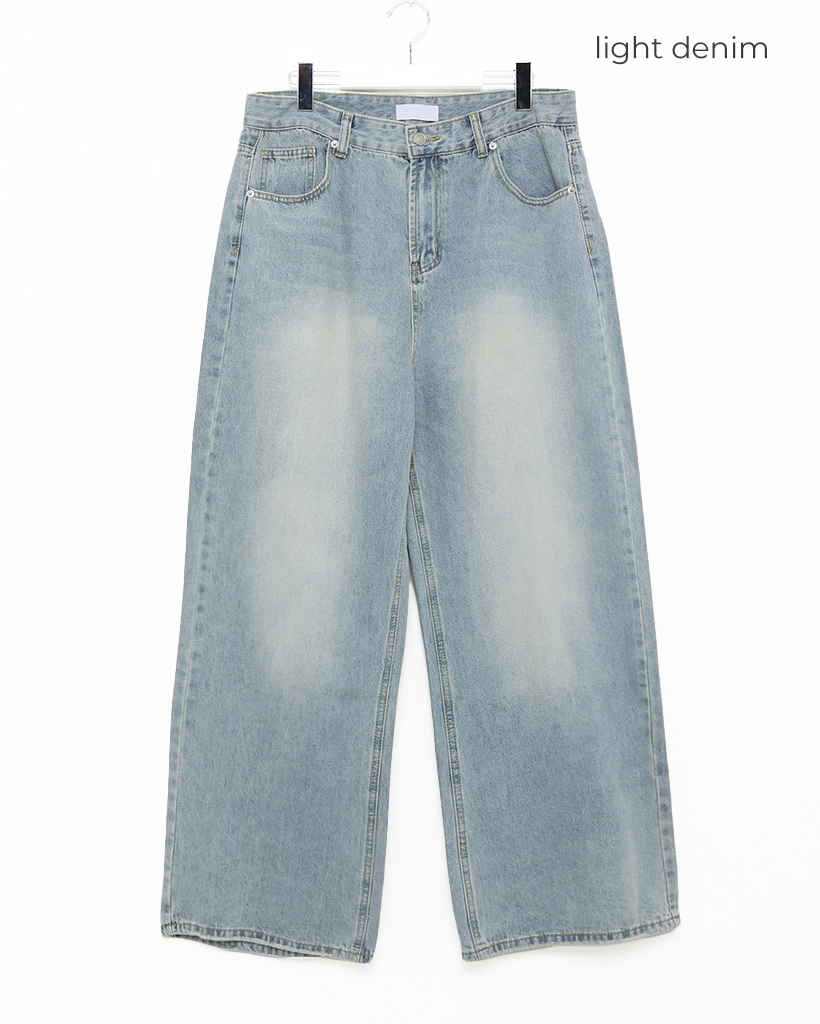 (ユニセックス)グラデヒゲウォッシュワイドジーンズ