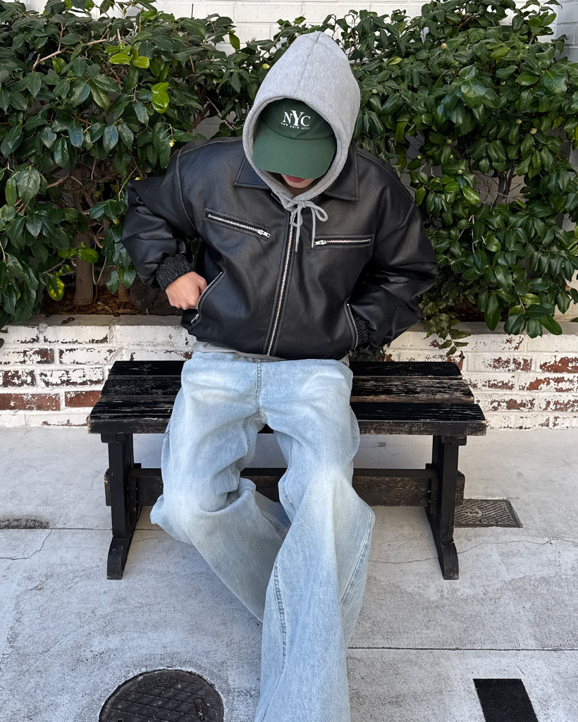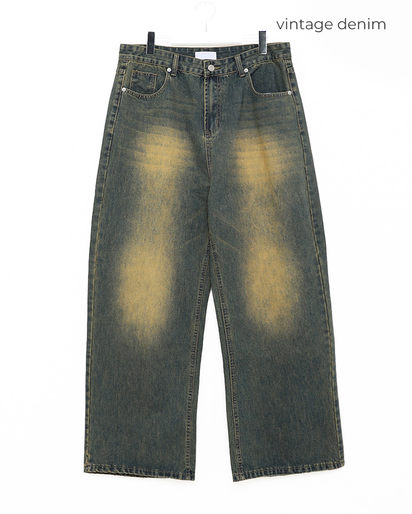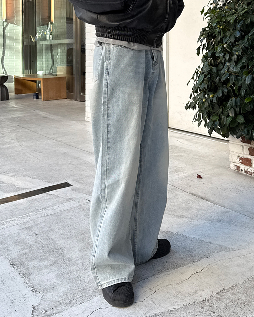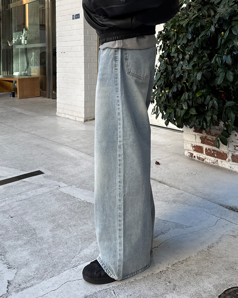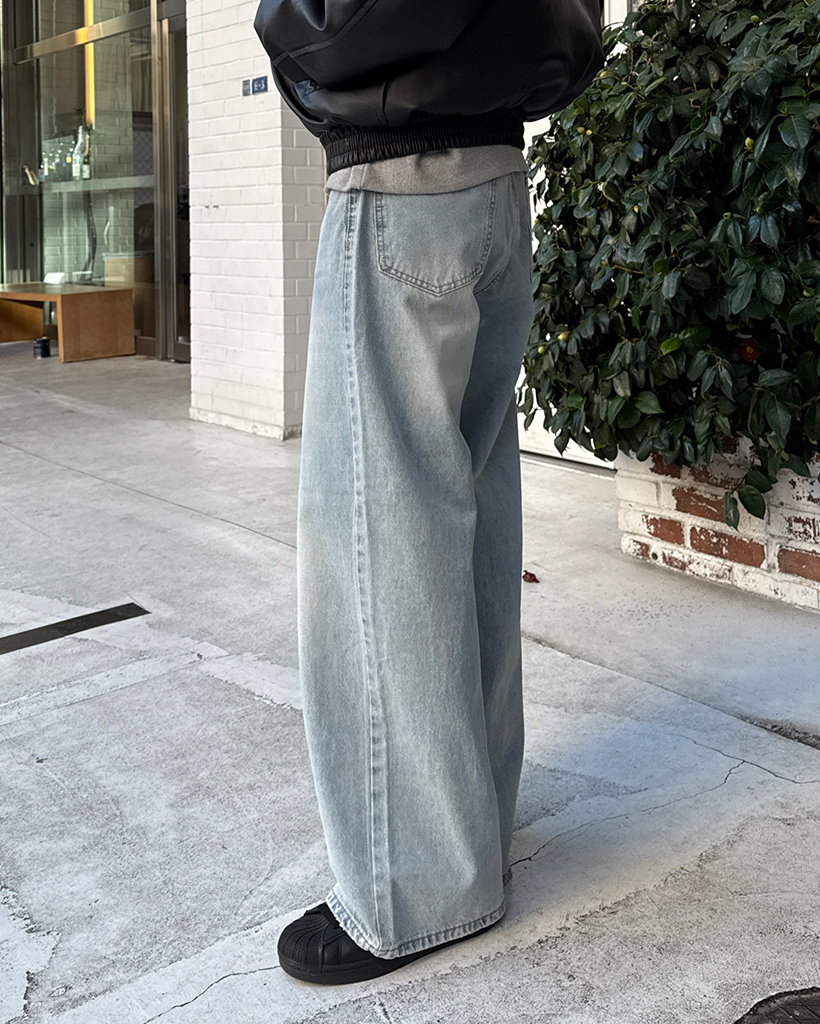 (ユニセックス)グラデヒゲウォッシュワイドジーンズ