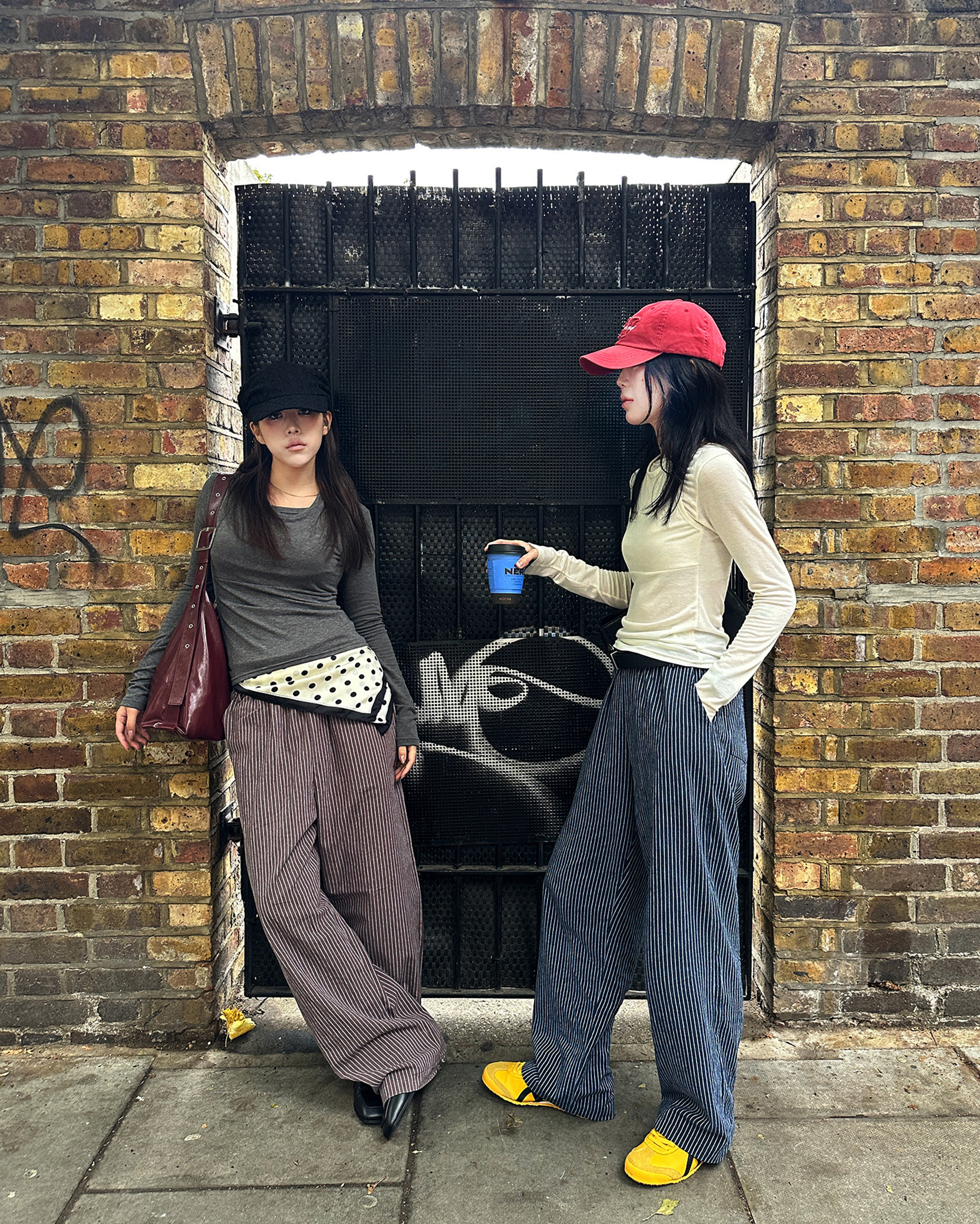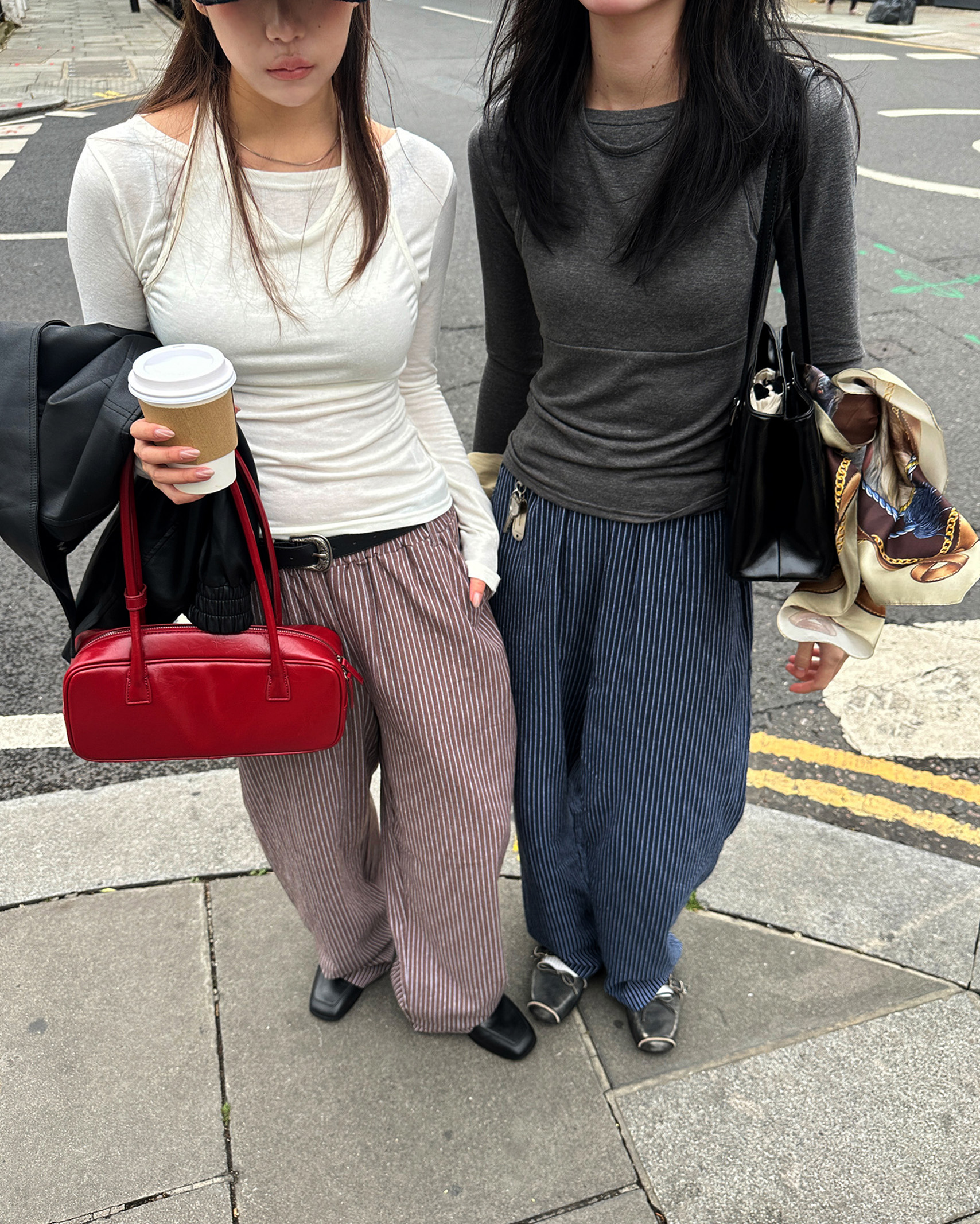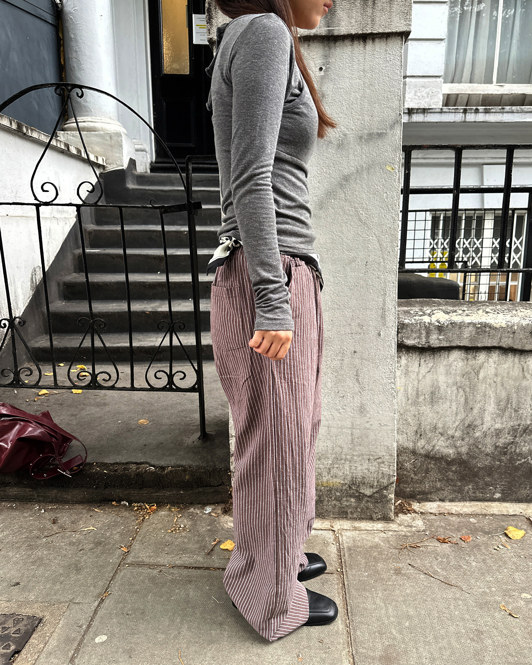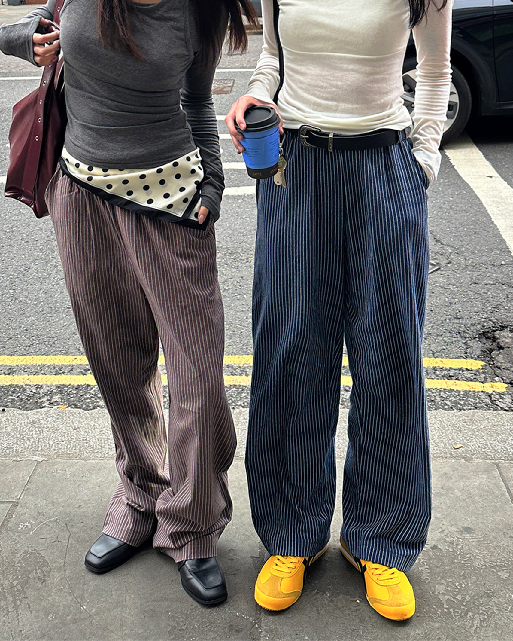 [2回再販](ORIGINAL) コットンストライプバルーンパンツ