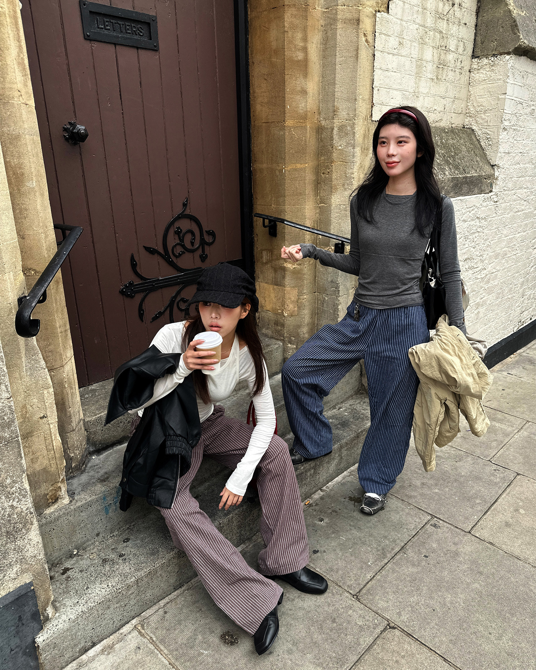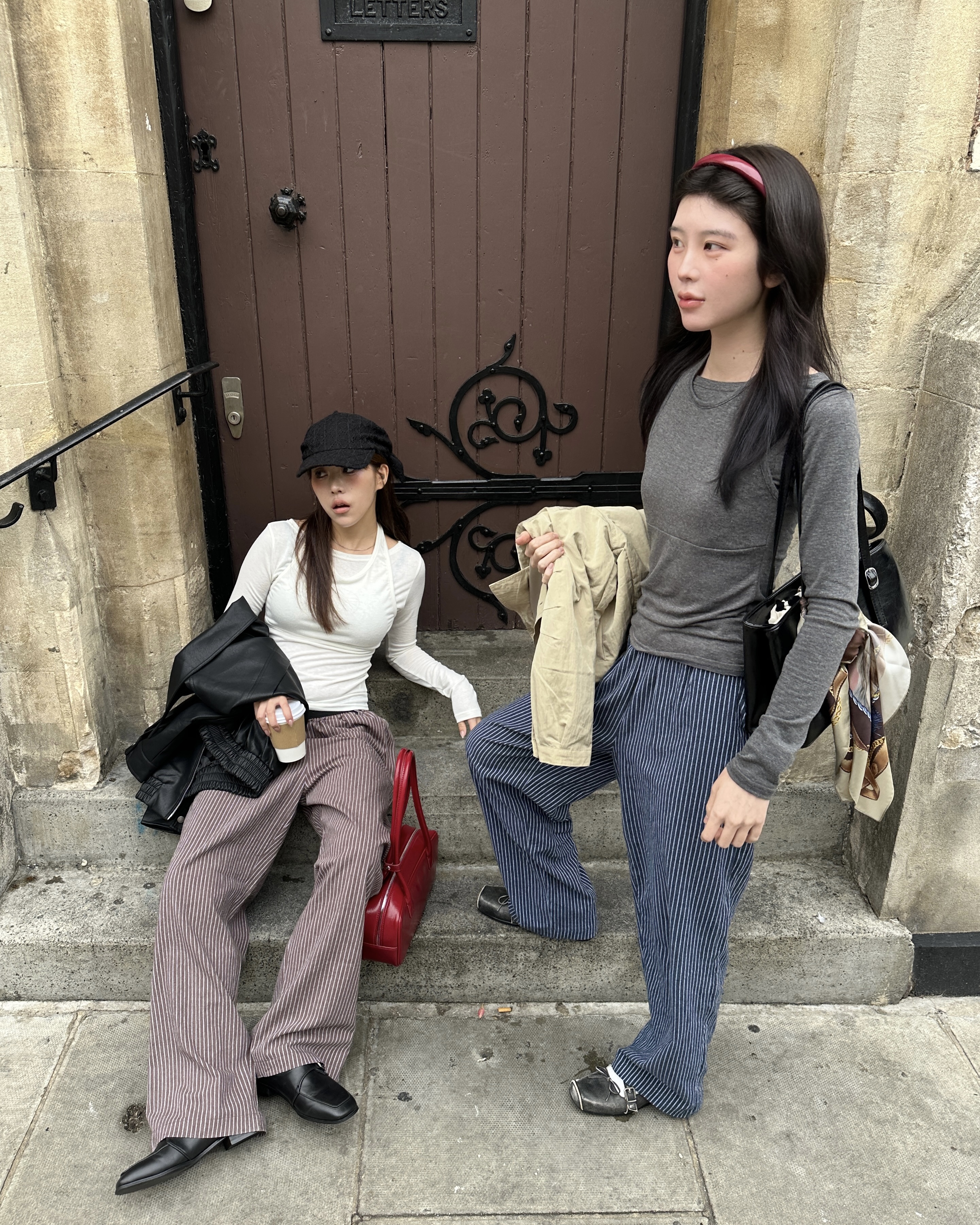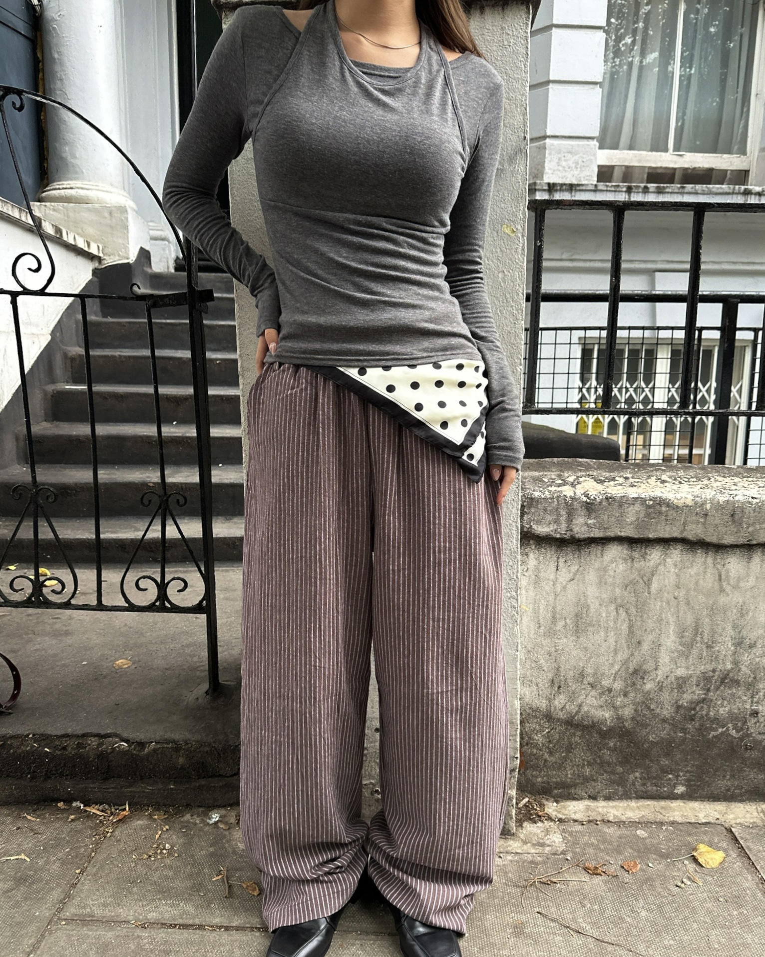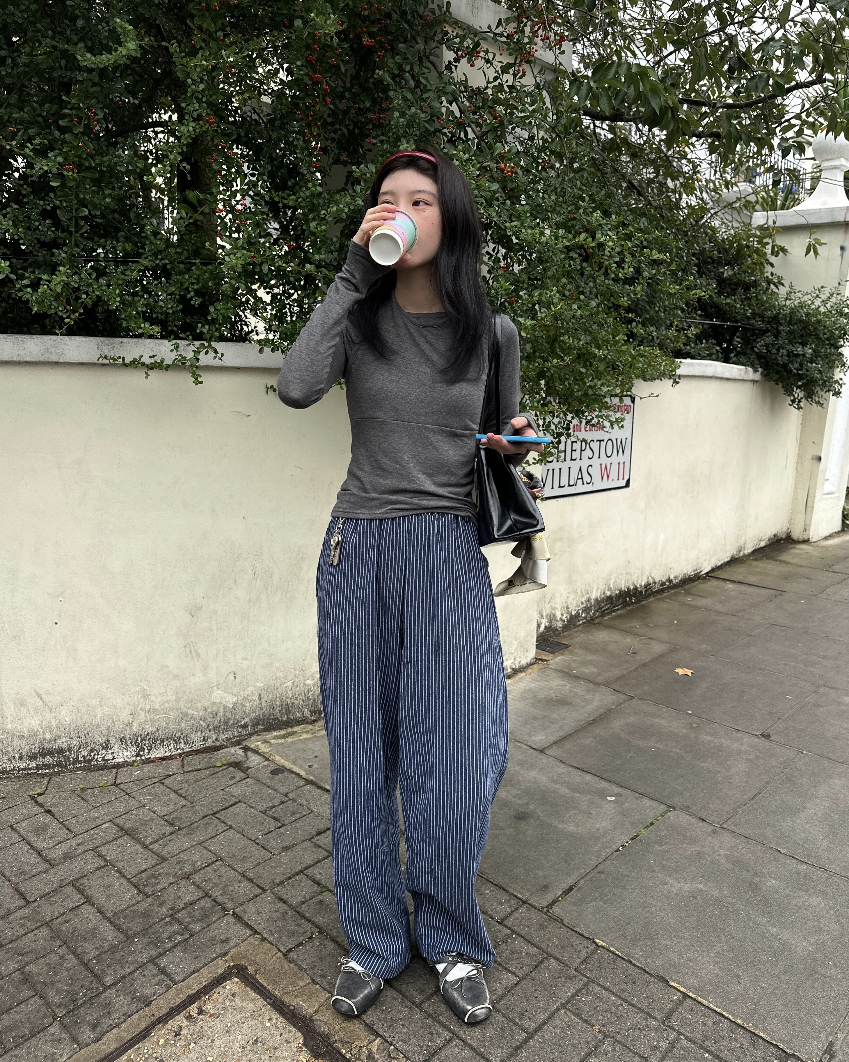 [2回再販](ORIGINAL) コットンストライプバルーンパンツ