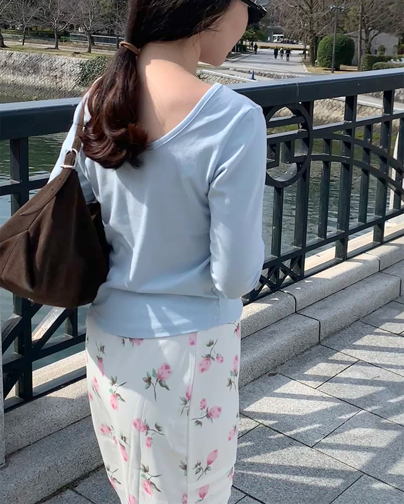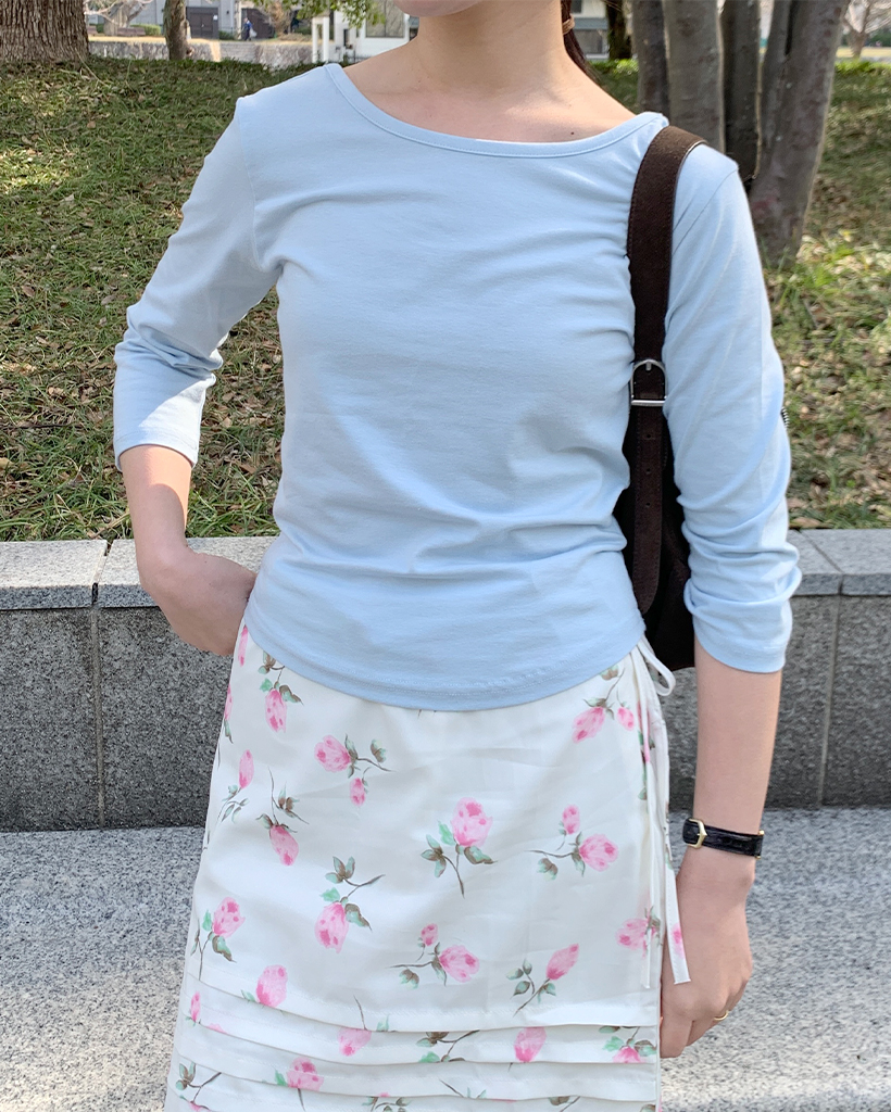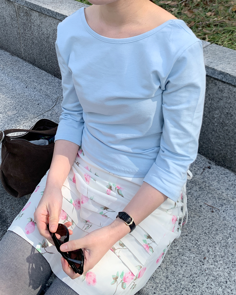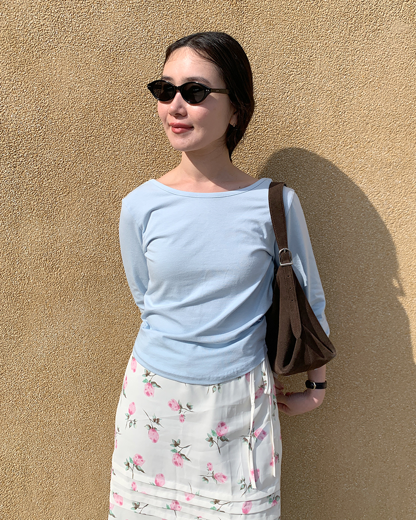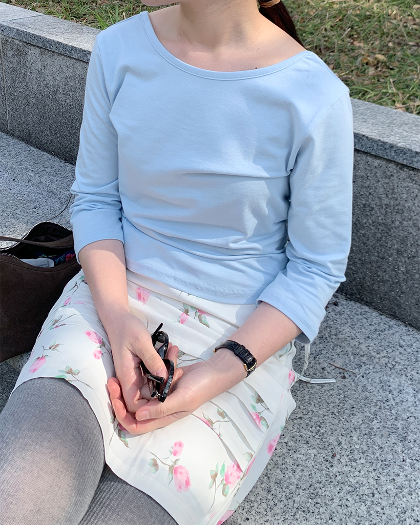 ボートネッククロップドスリーブTシャツ