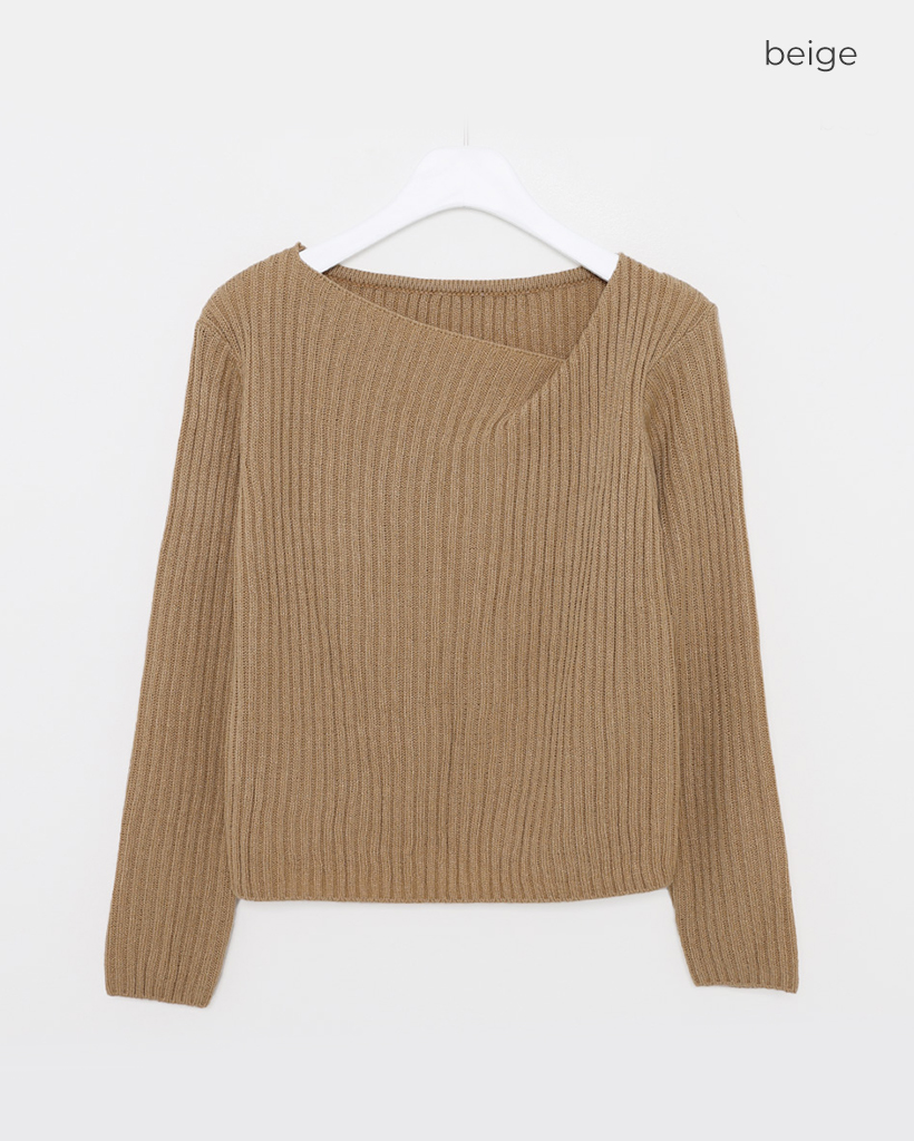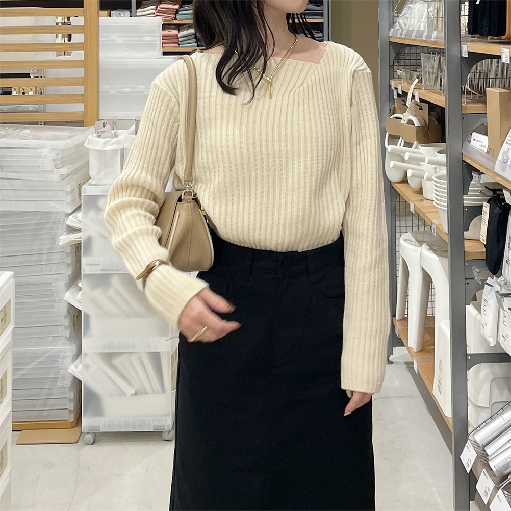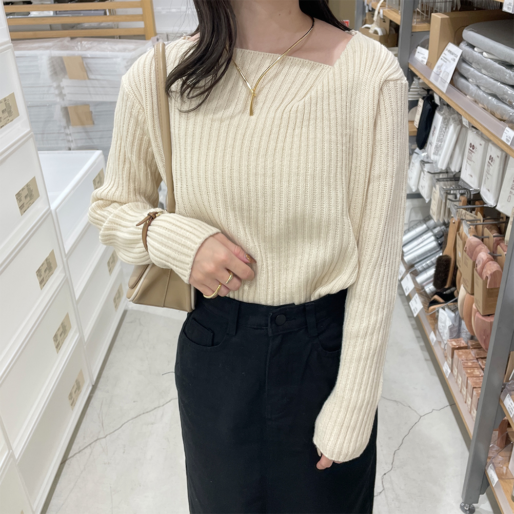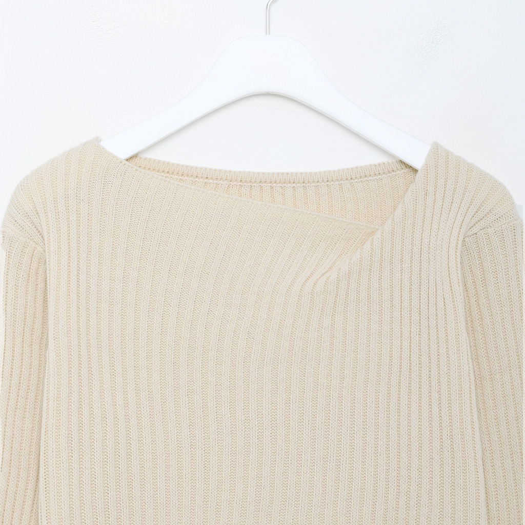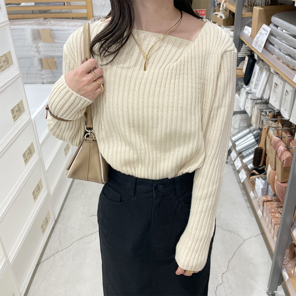 リブアンバランスネックニット
