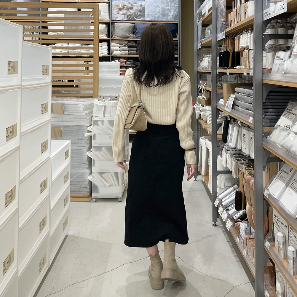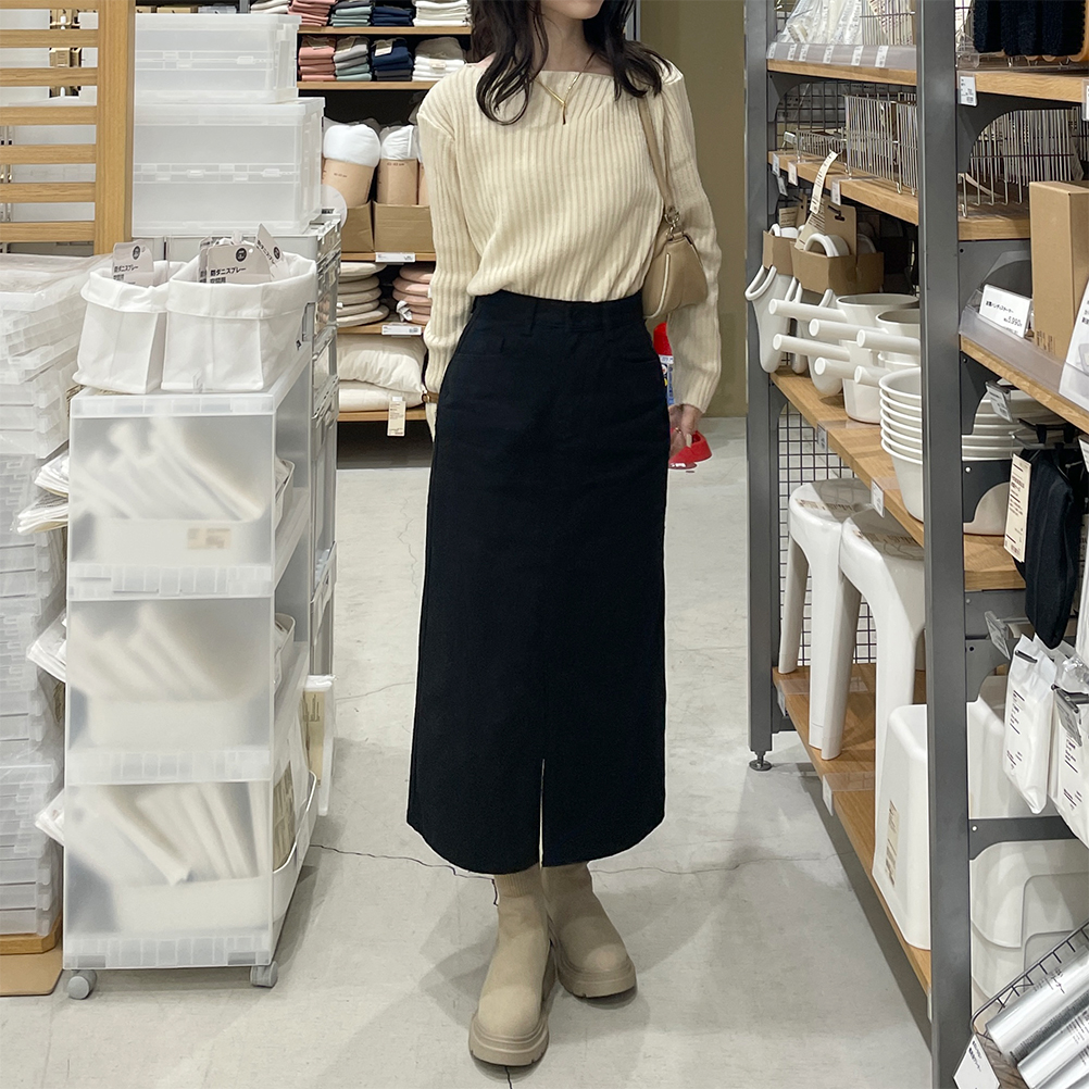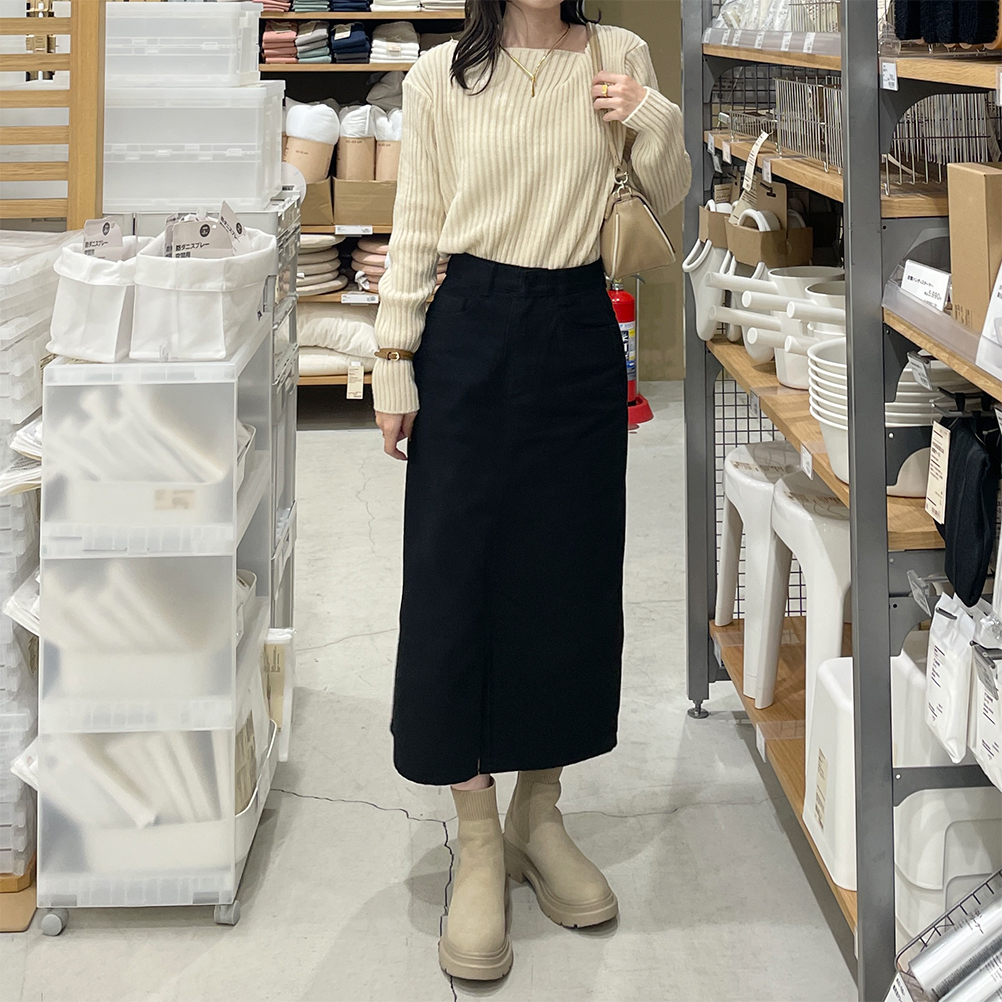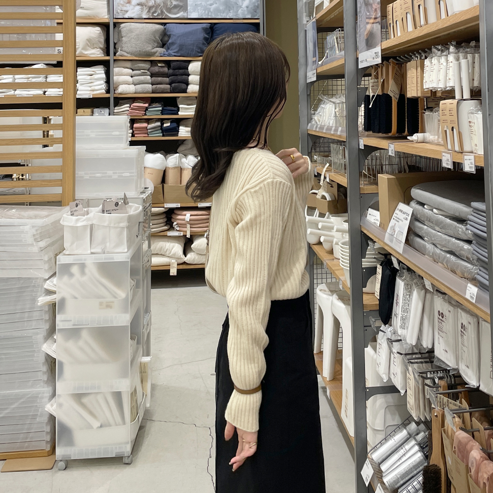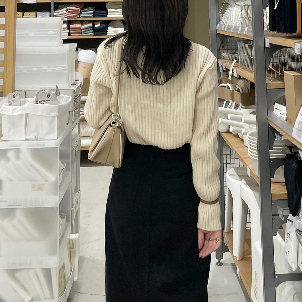 リブアンバランスネックニット