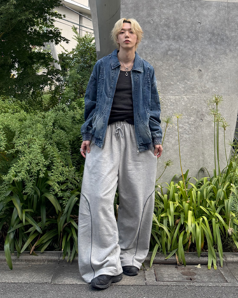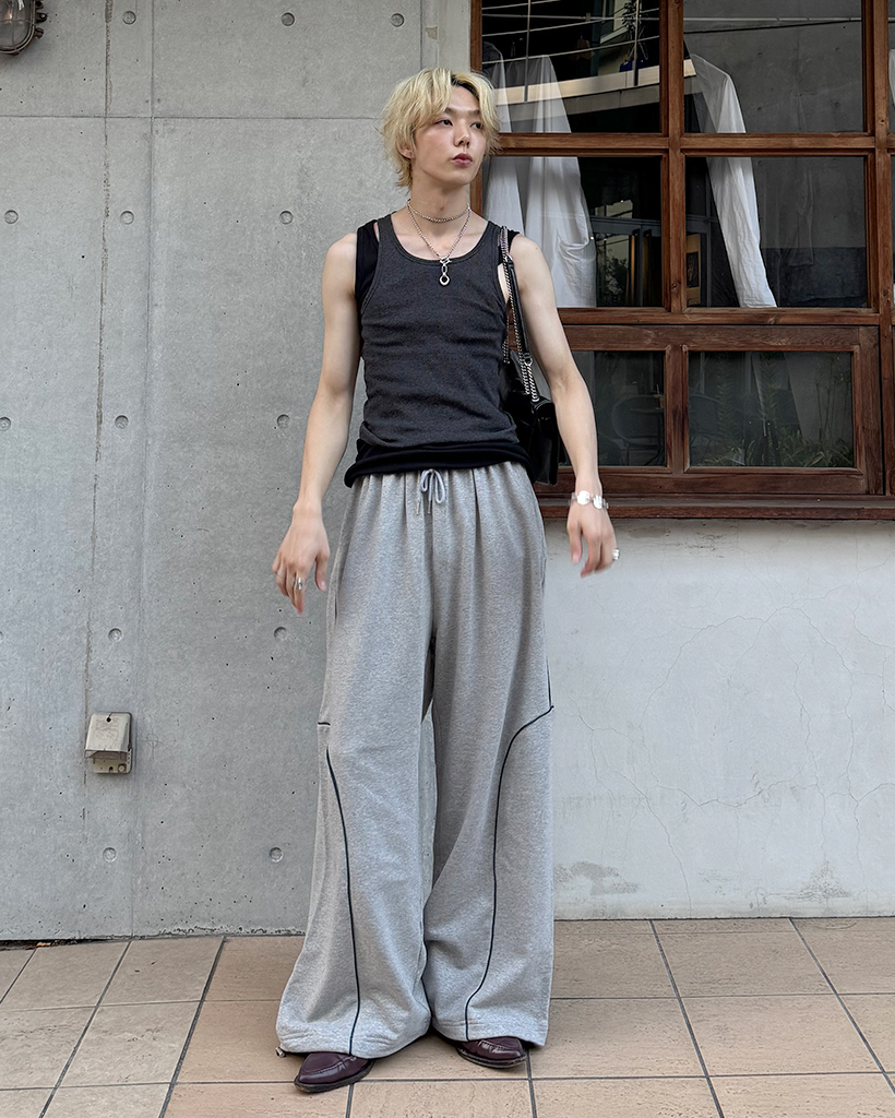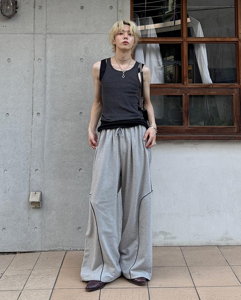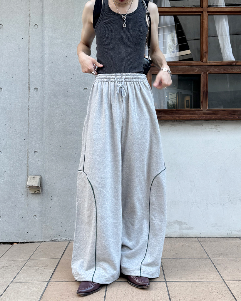 パイピングワイドスウェットパンツ