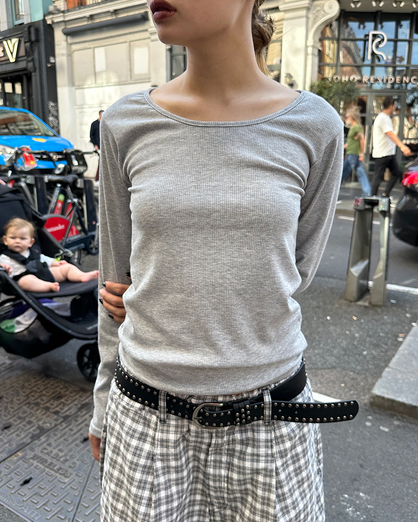 ジュエルネックレーヨンロングTシャツ