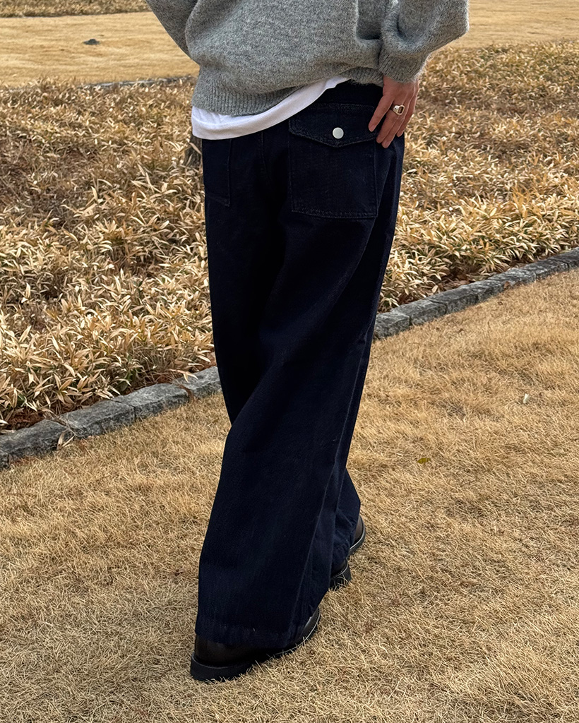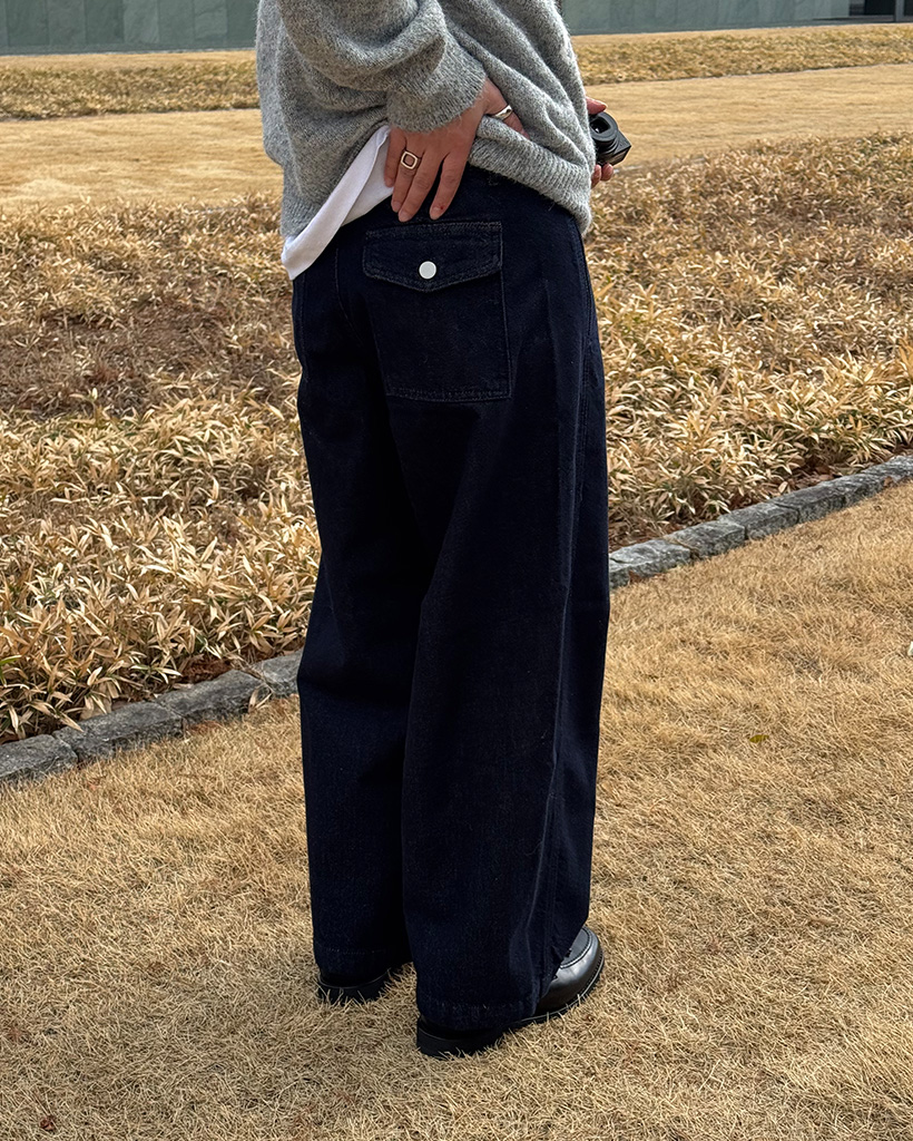 (ユニセックス)インディゴワイドパンツ